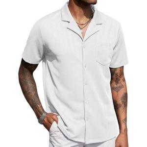 COOFANDY Mens 2025 Fashion Textured Shirts Short Sleeve Summer Beach Shirt Casual Button Down Shirts(White)