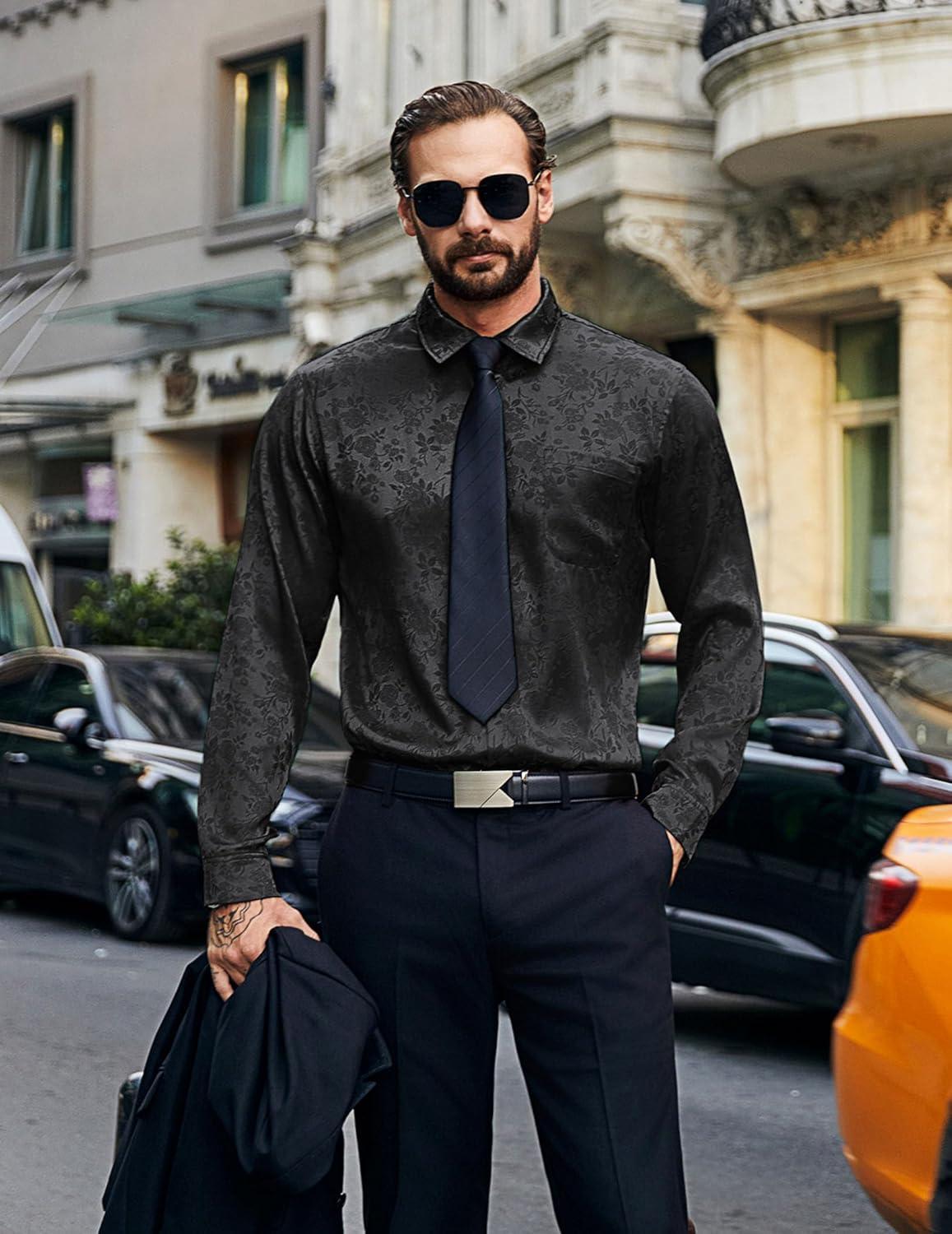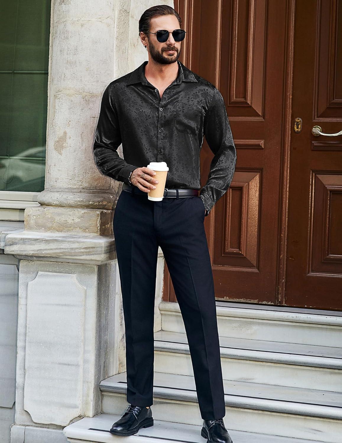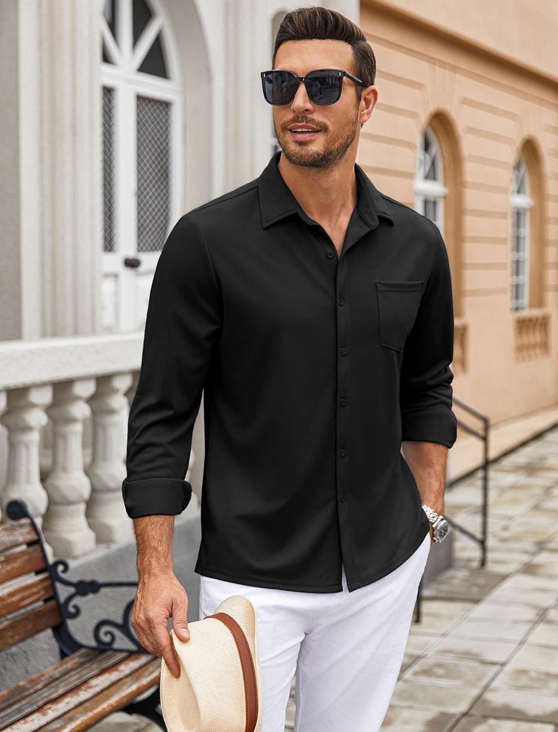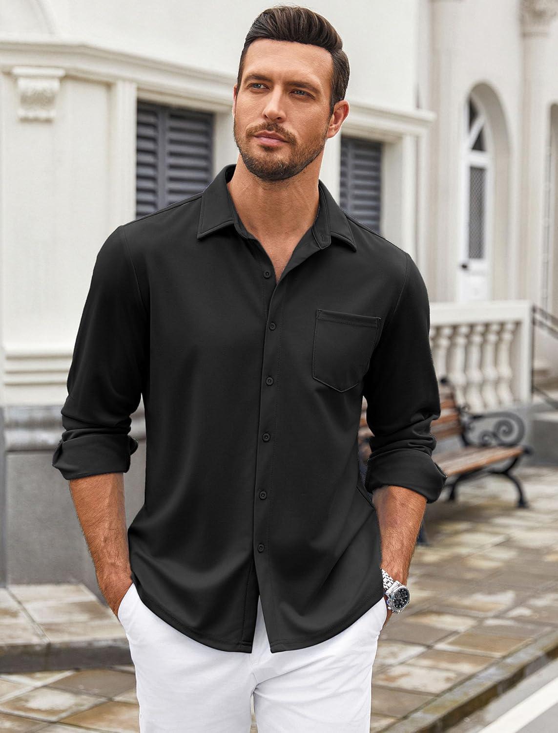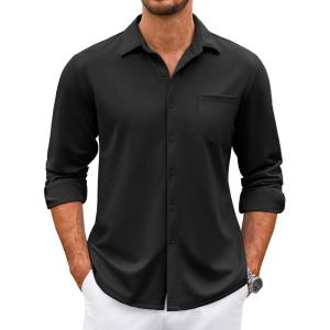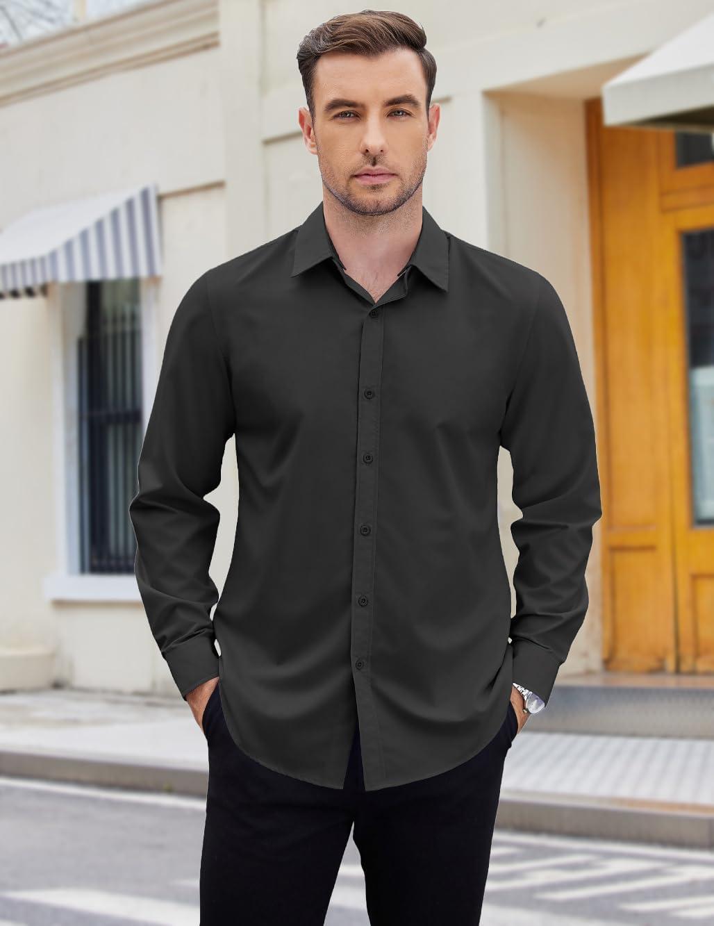COOFANDY Mens Wrinkle Free Dress Shirts Long Sleeve Untucked Shirts Casual Button Down Shirts(Black)