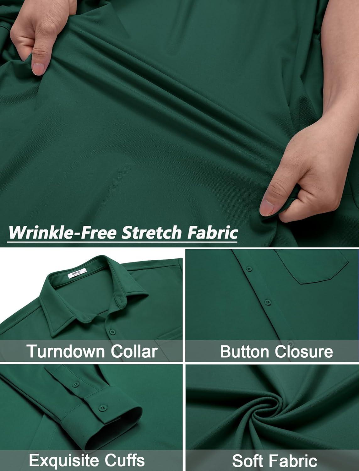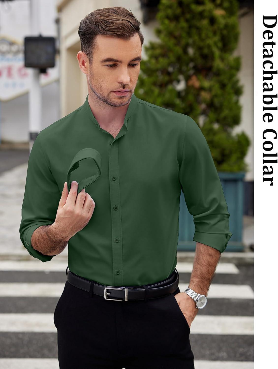 COOFANDY Mens 2-in-1 Dress Shirts Detachable Collar Long Sleeve Wrinkle Free Shirt Business Casual Button Down Shirt(Green)