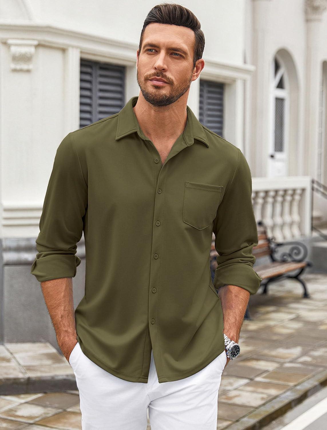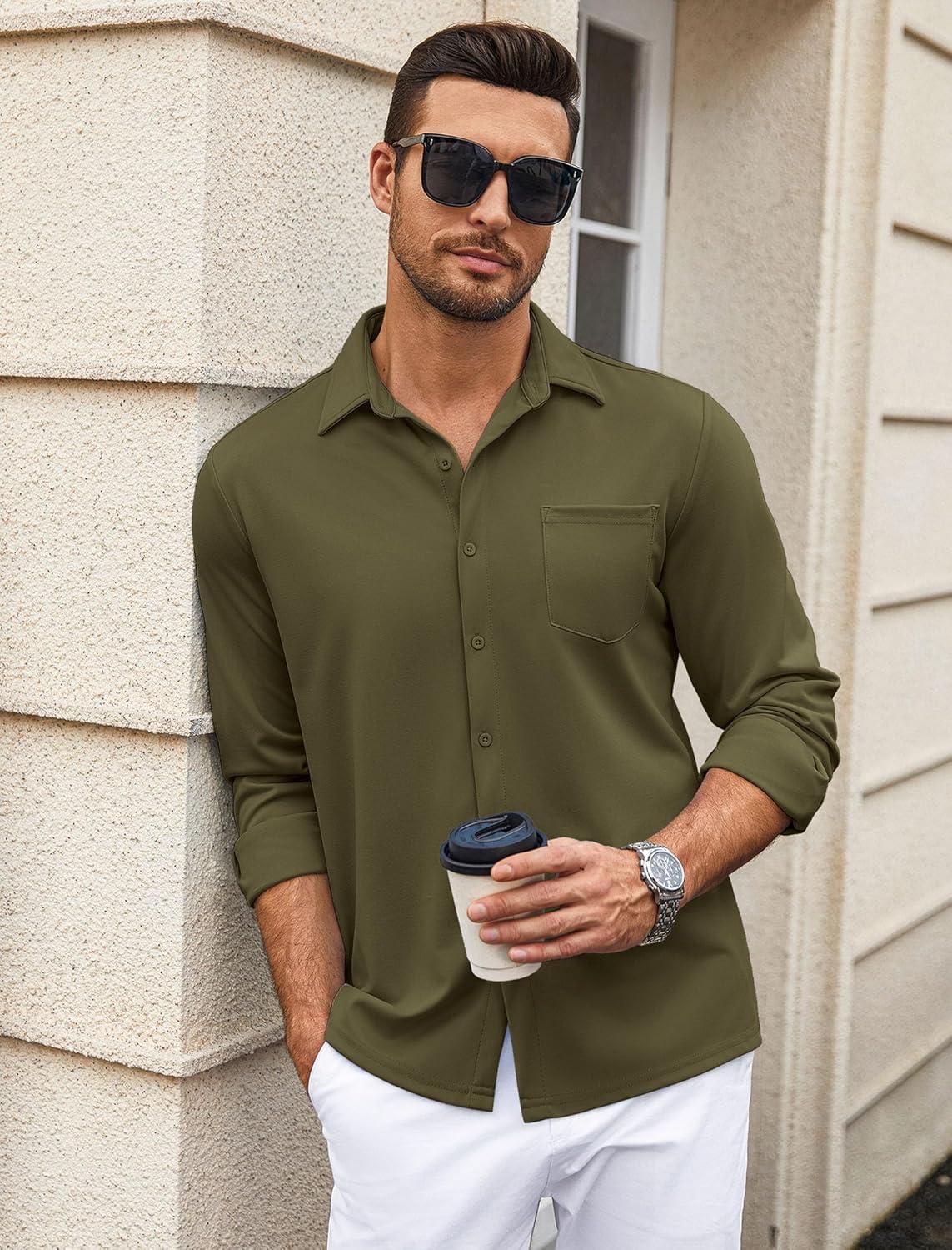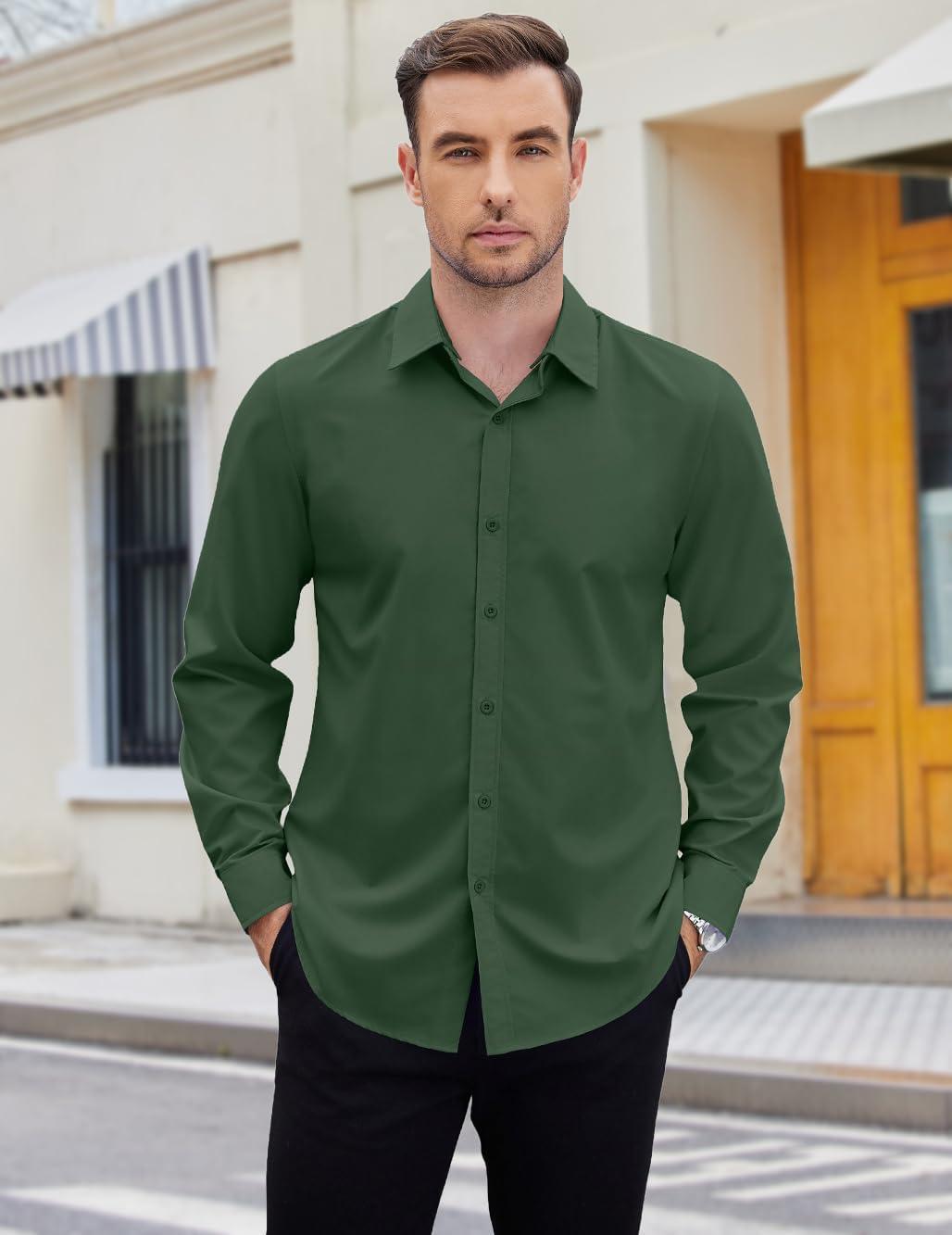 COOFANDY Men’s Casual Dress Shirt Long Sleeve Casual Shirt for Men Button Down Office Shirt(Army Green)