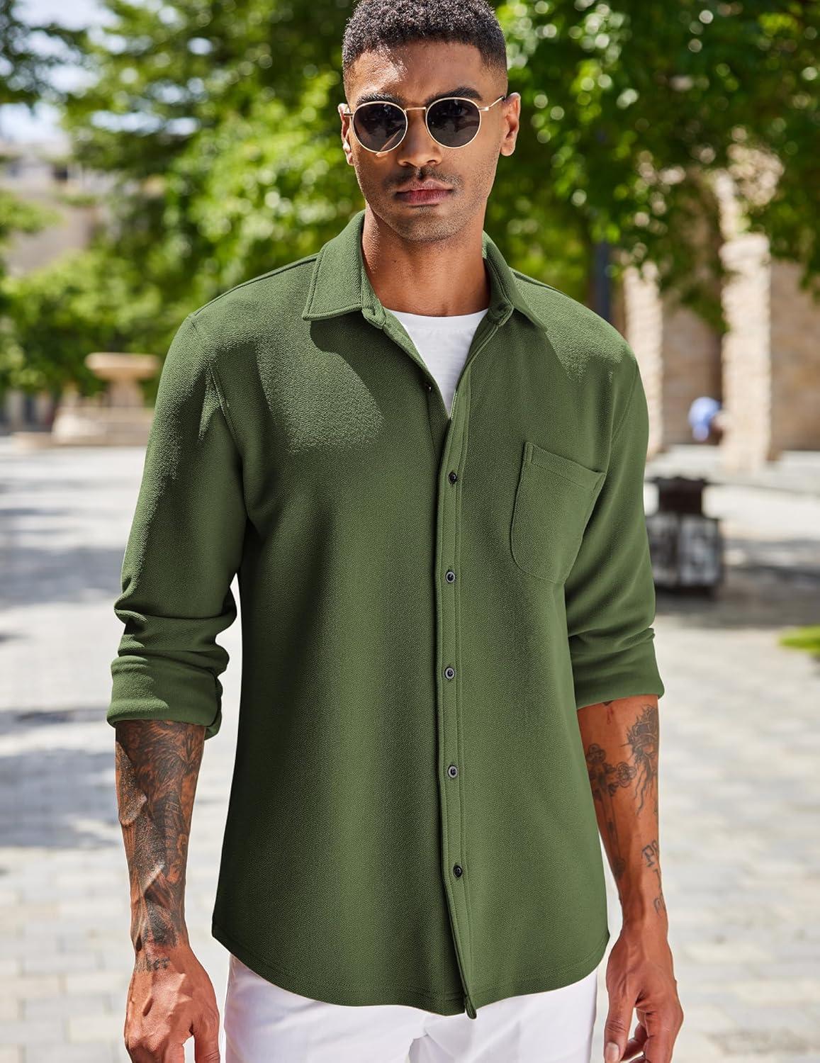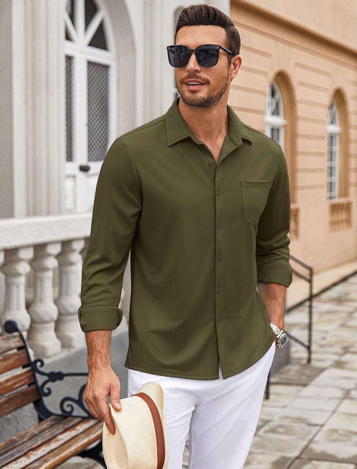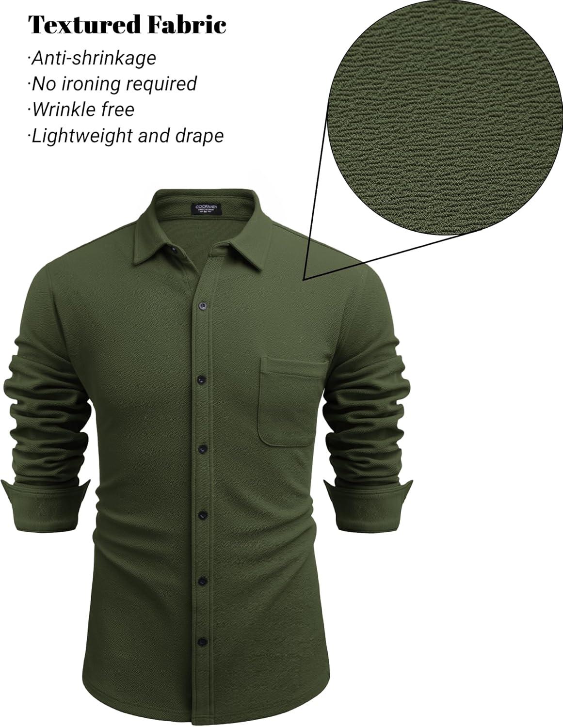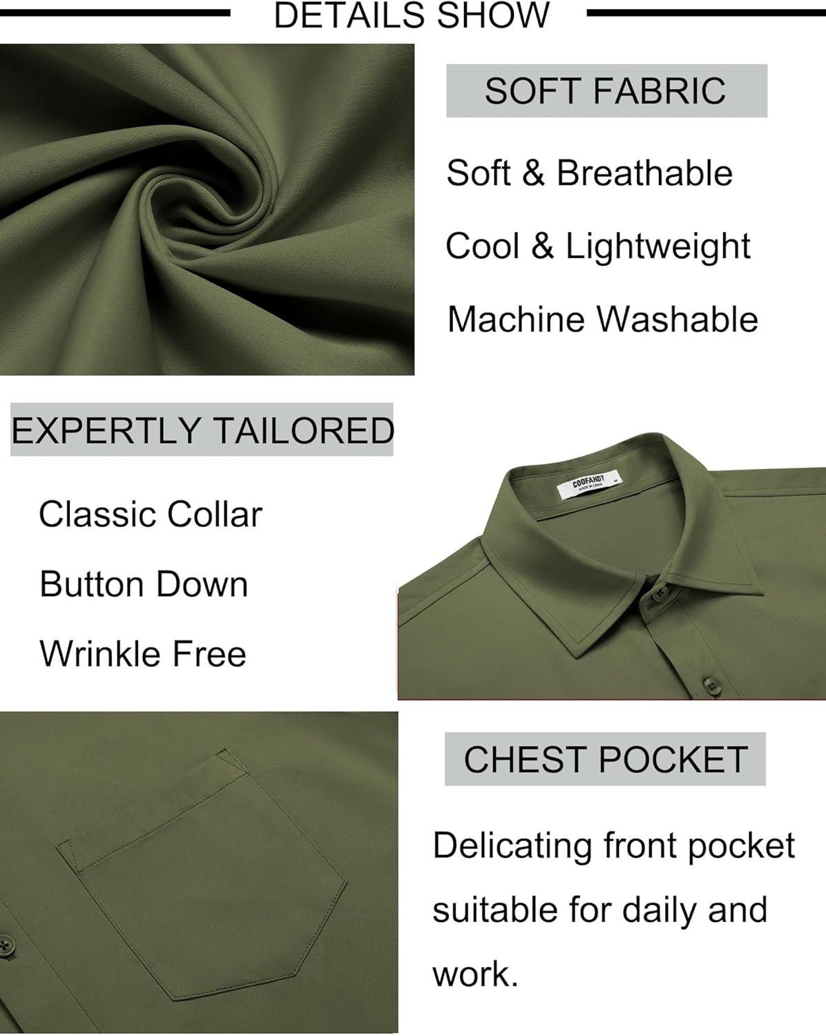 COOFANDY Men’s Casual Dress Shirt Long Sleeve Casual Shirt for Men Button Down Office Shirt(Army Green)