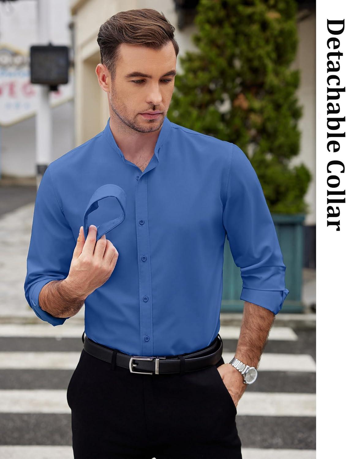 COOFANDY Mens 2-in-1 Dress Shirts Detachable Collar Long Sleeve Wrinkle Free Shirt Business Casual Button Down Shirt(Navy Blue)