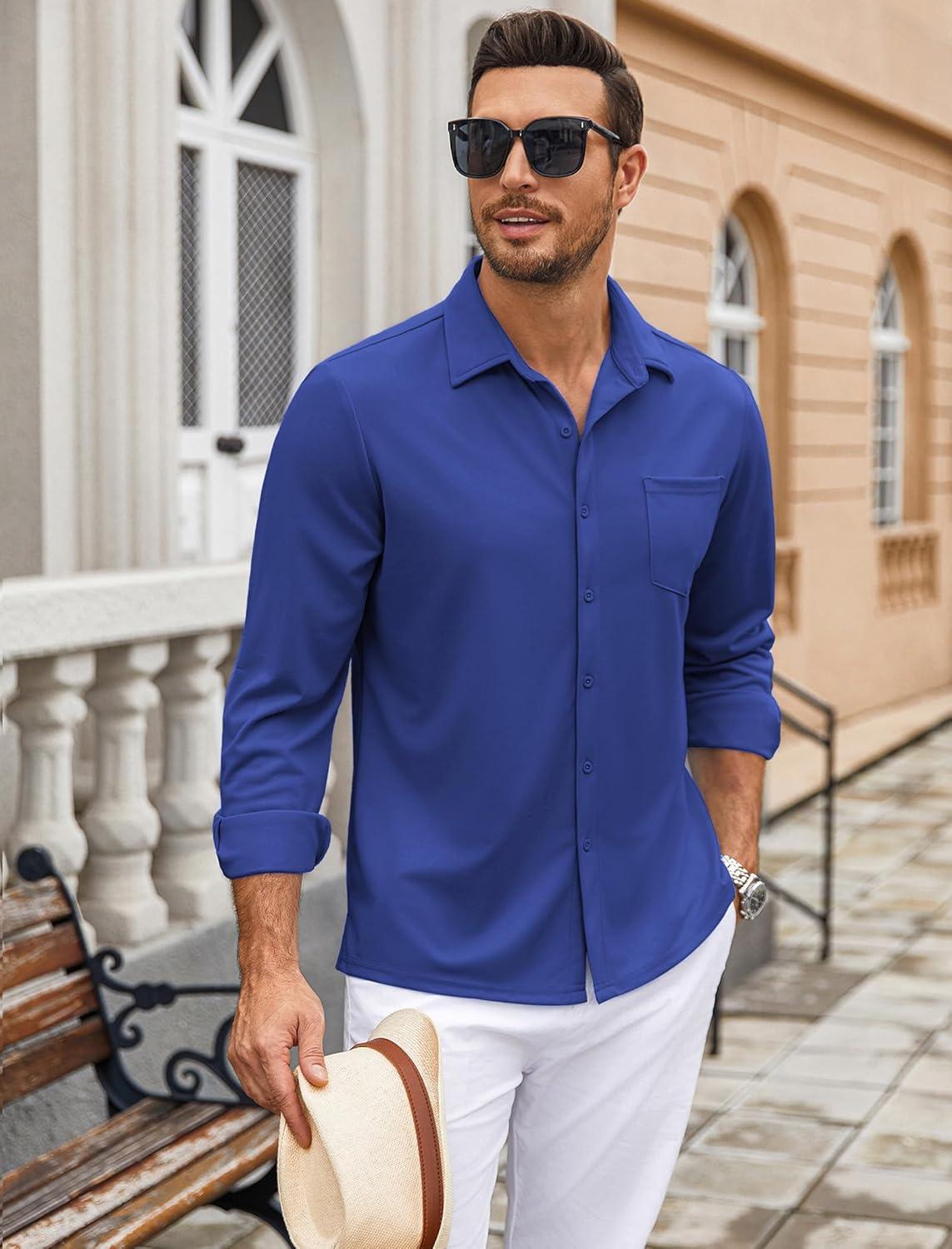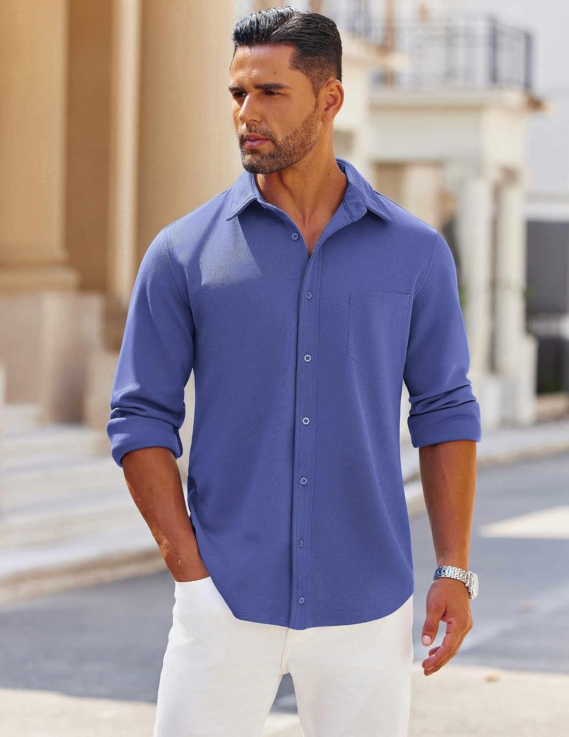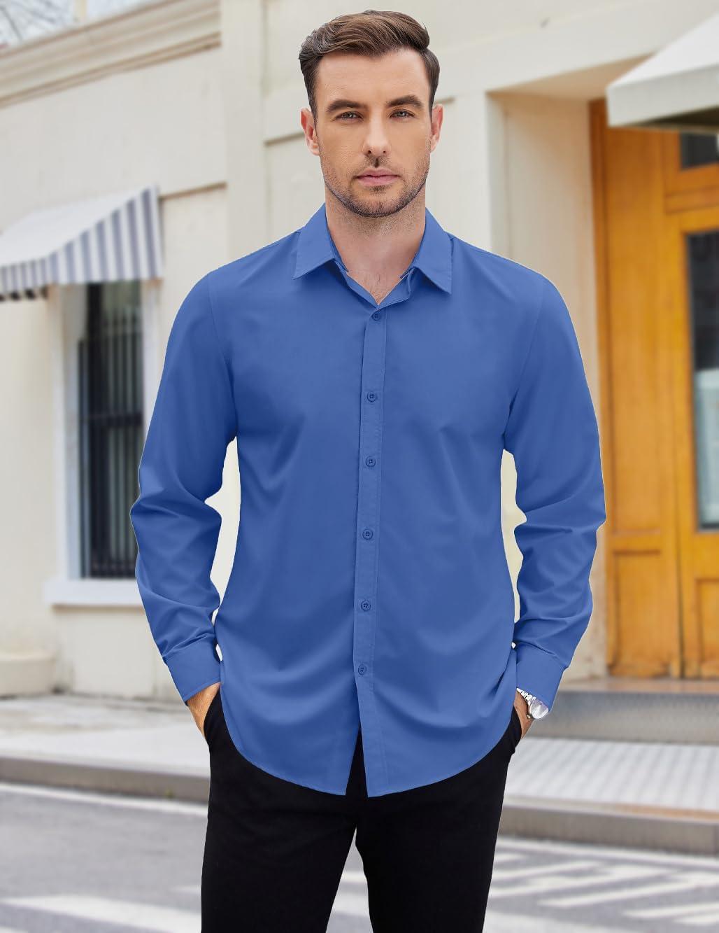 COOFANDY Men’s Casual Dress Shirt Long Sleeve Casual Shirt for Men Button Down Office Shirt(Blue)