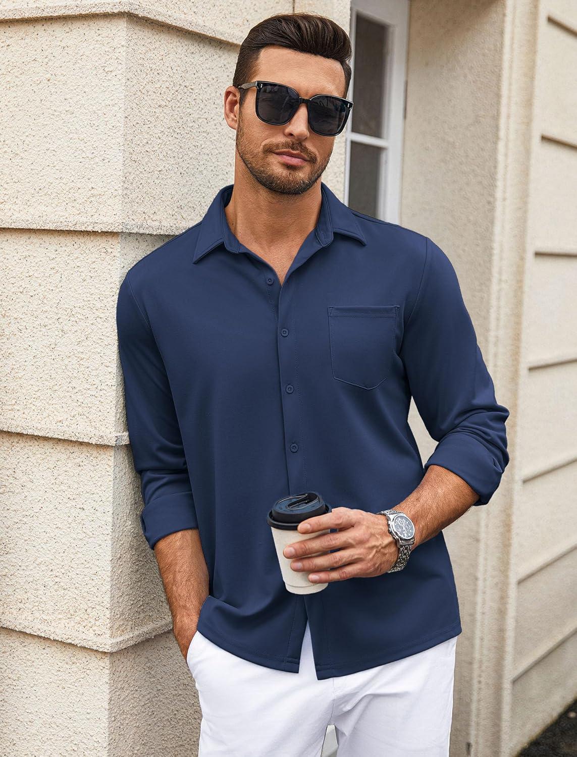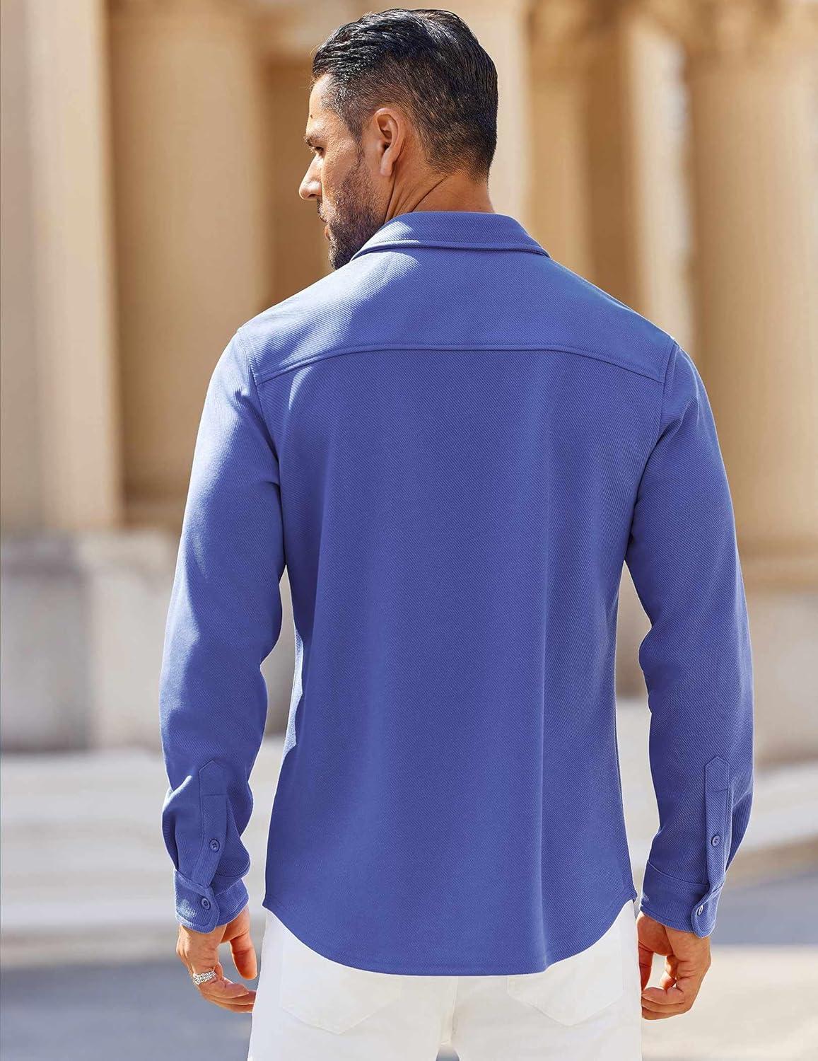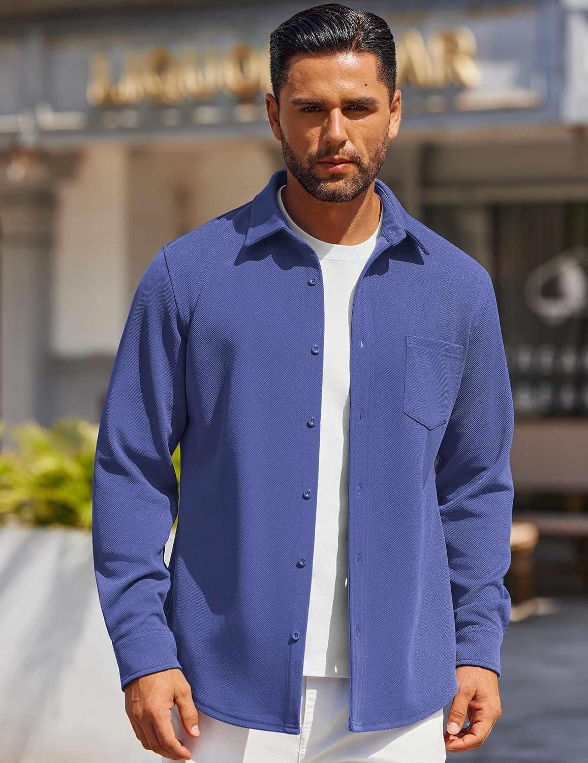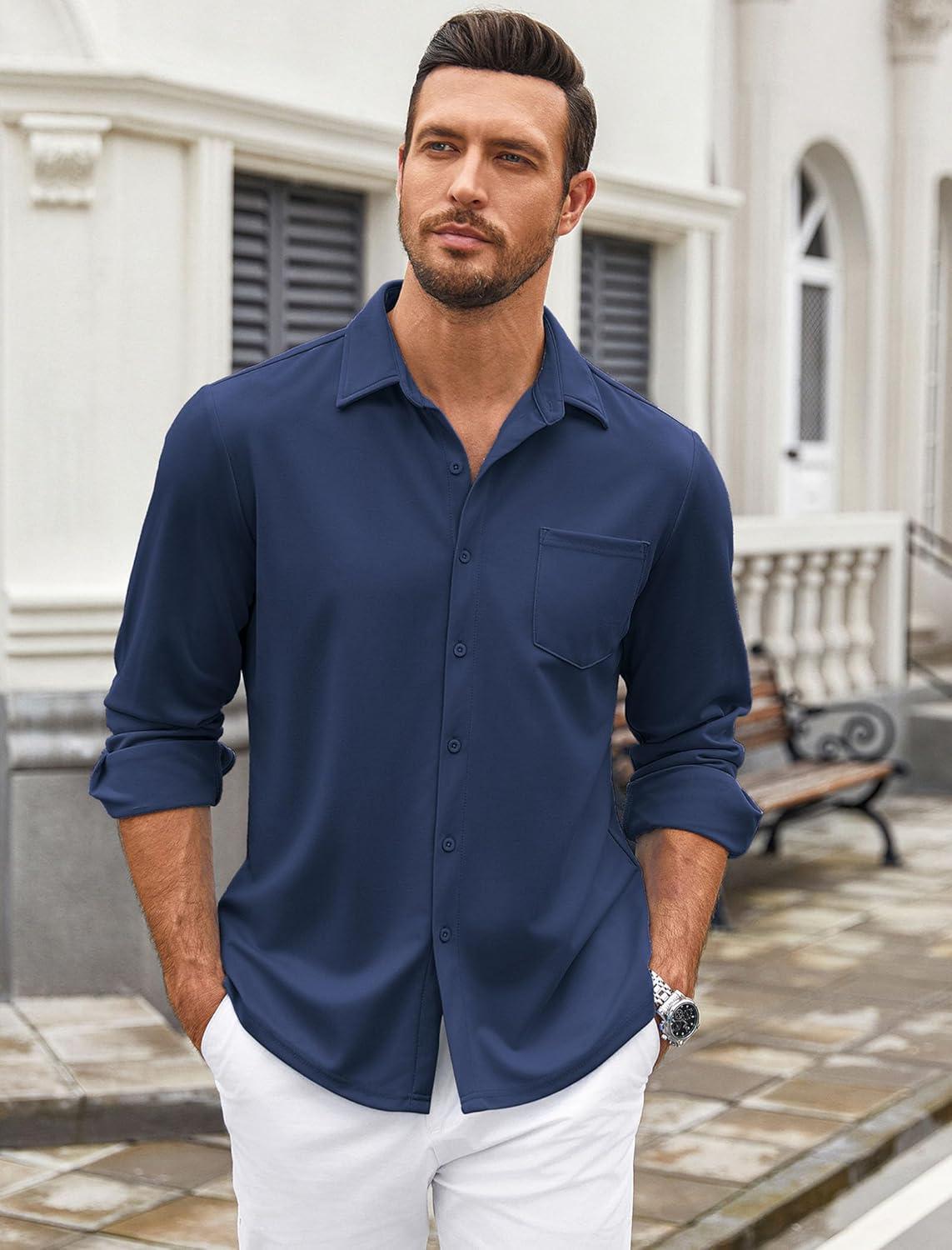 COOFANDY Men’s Casual Dress Shirt Long Sleeve Casual Shirt for Men Button Down Office Shirt(Blue)