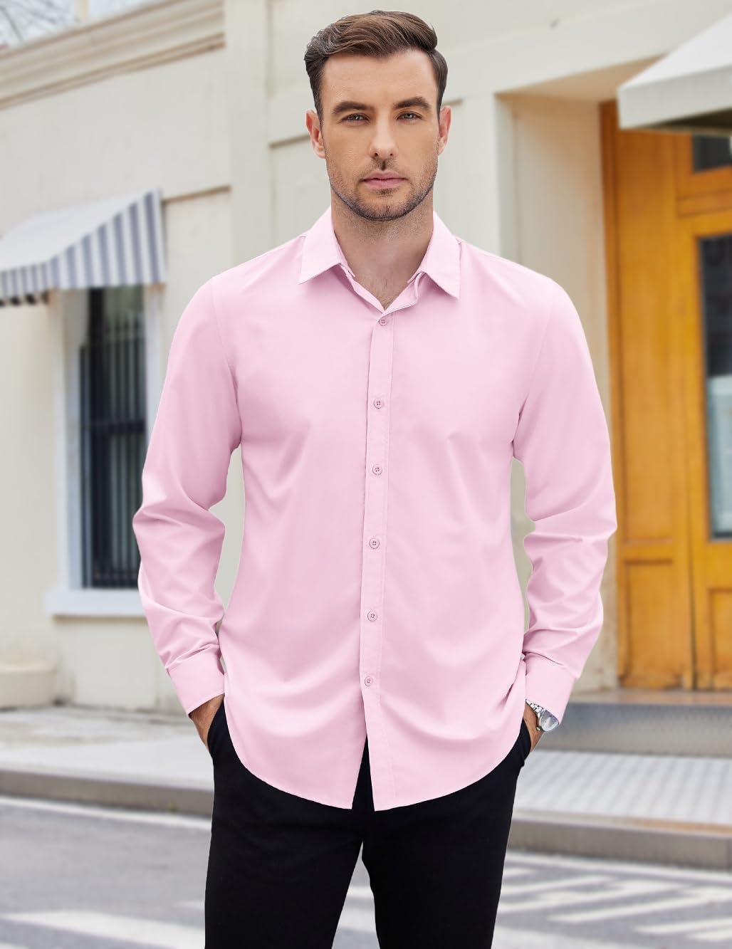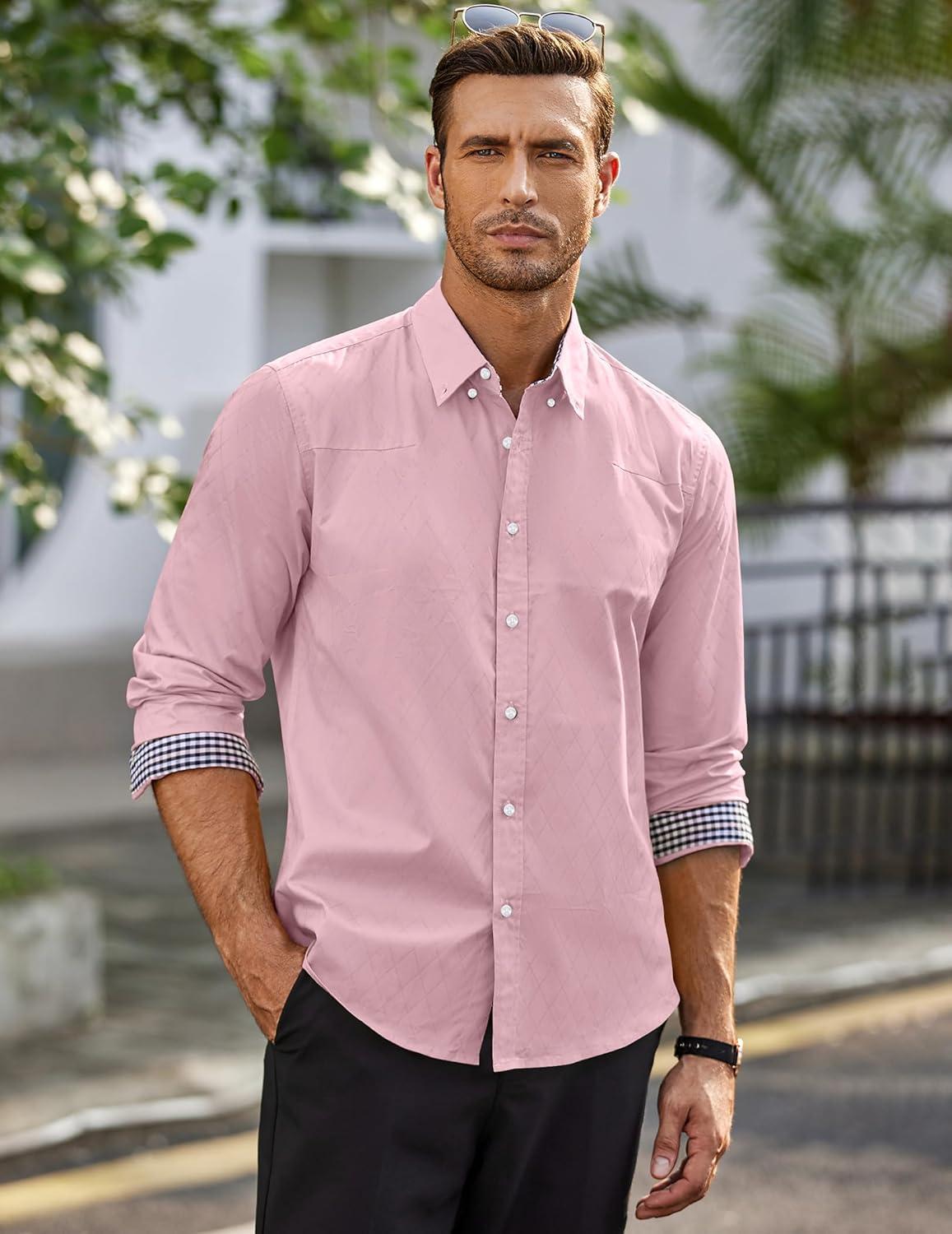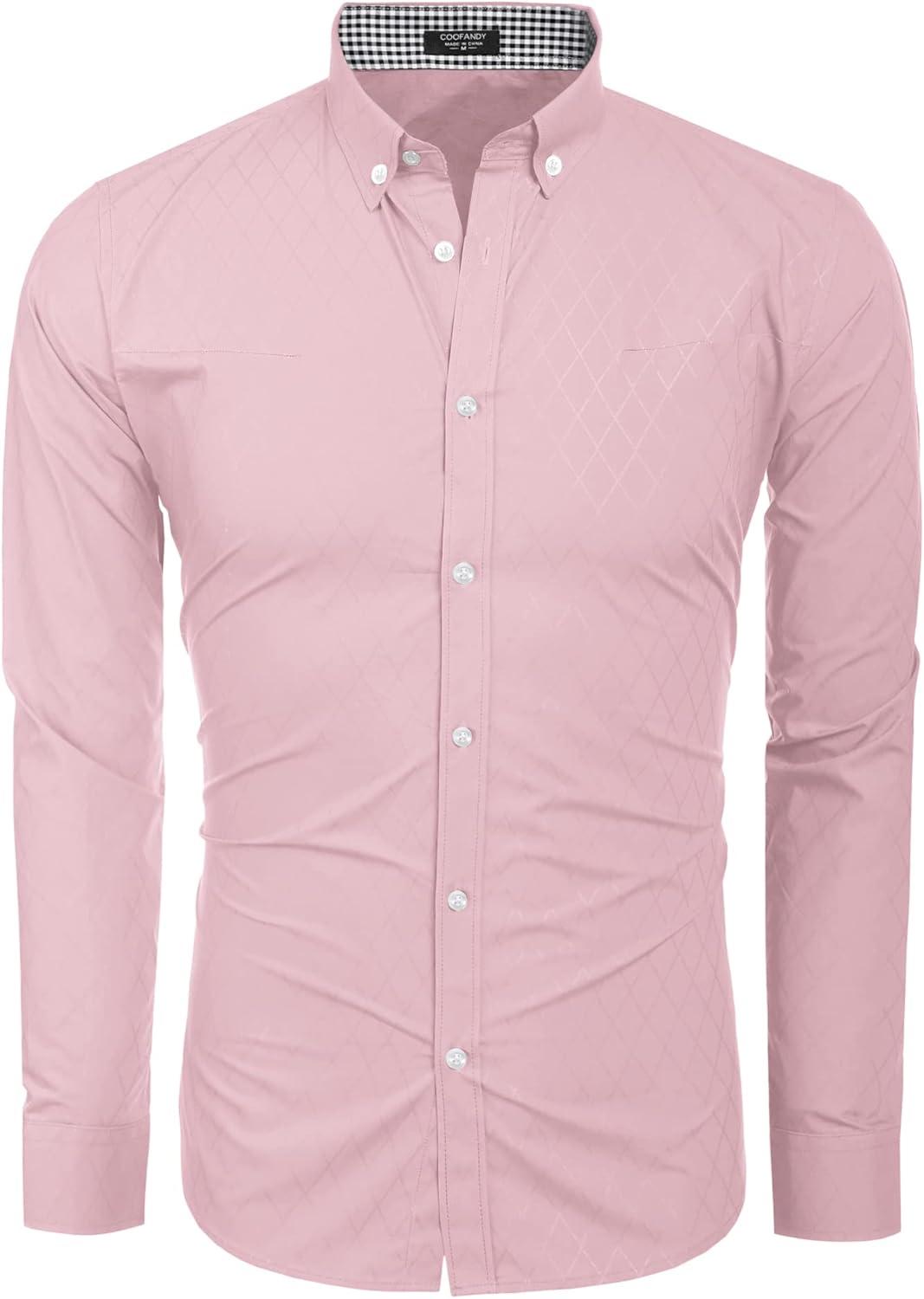 COOFANDY Men’s Casual Dress Shirt Long Sleeve Casual Shirt for Men Button Down Office Shirt(Pink)