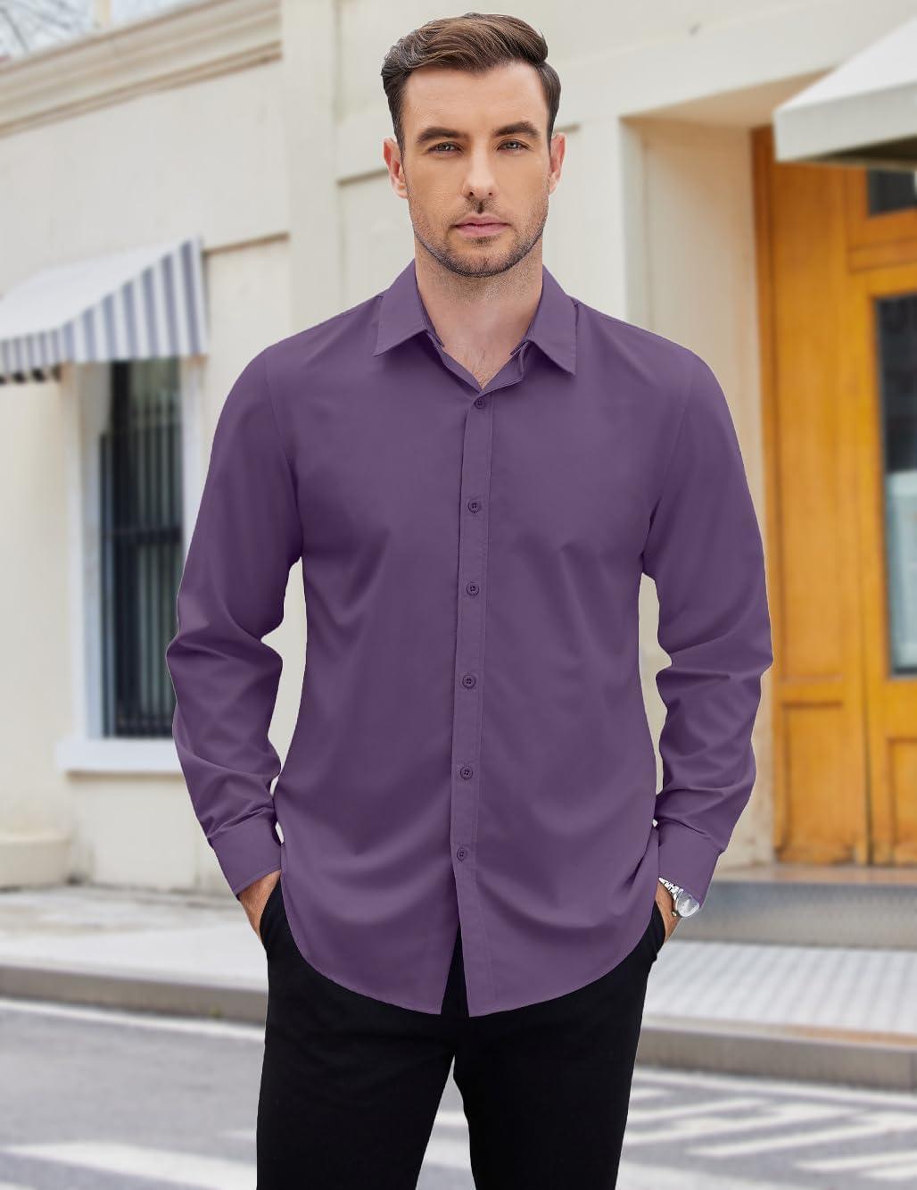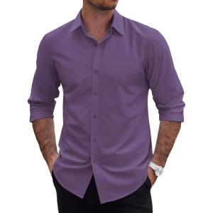 COOFANDY Men’s Casual Dress Shirt Long Sleeve Casual Shirt for Men Button Down Office Shirt(Purple)