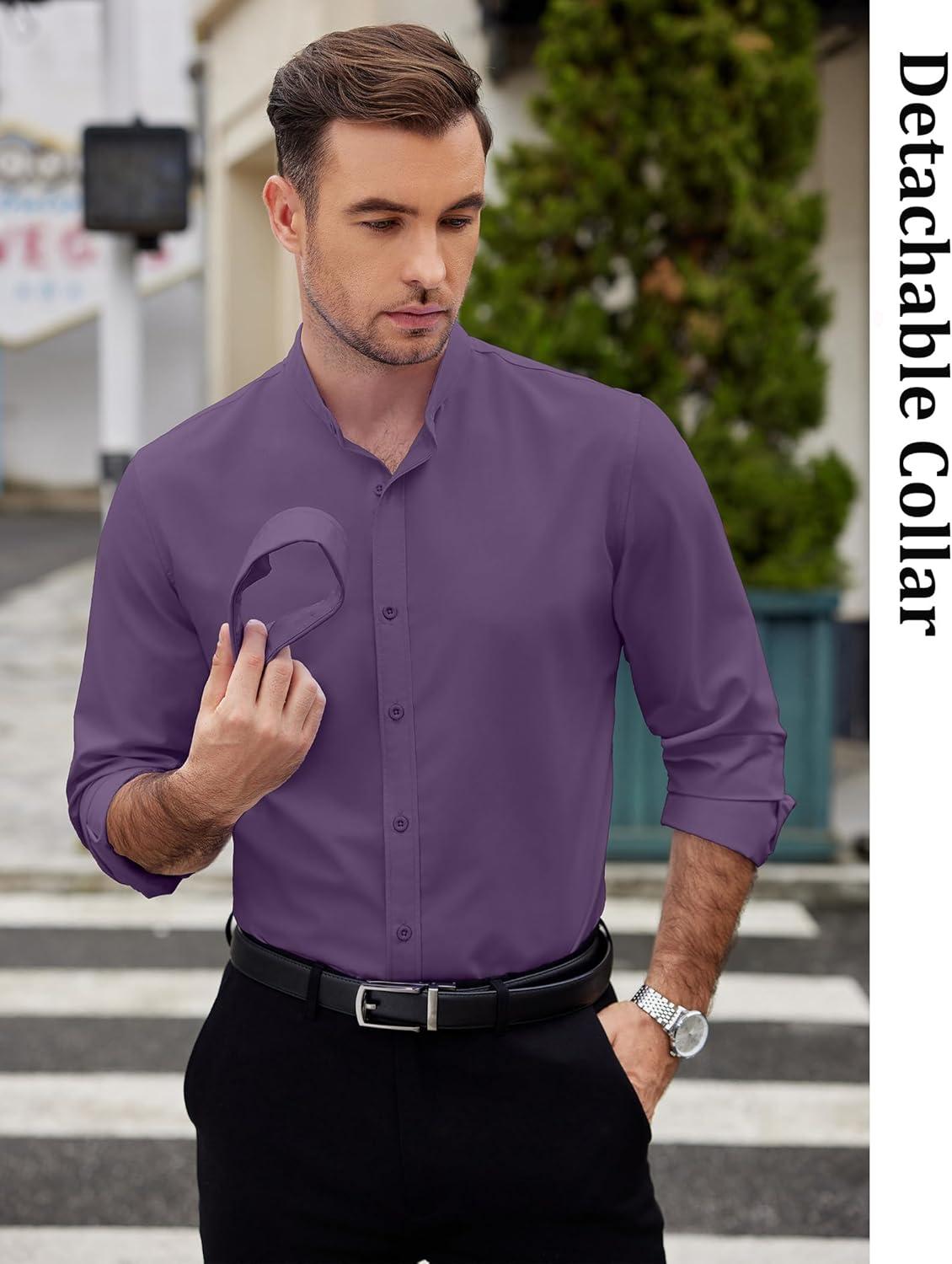 COOFANDY Mens 2-in-1 Dress Shirts Detachable Collar Long Sleeve Wrinkle Free Shirt Business Casual Button Down Shirt(Purple)