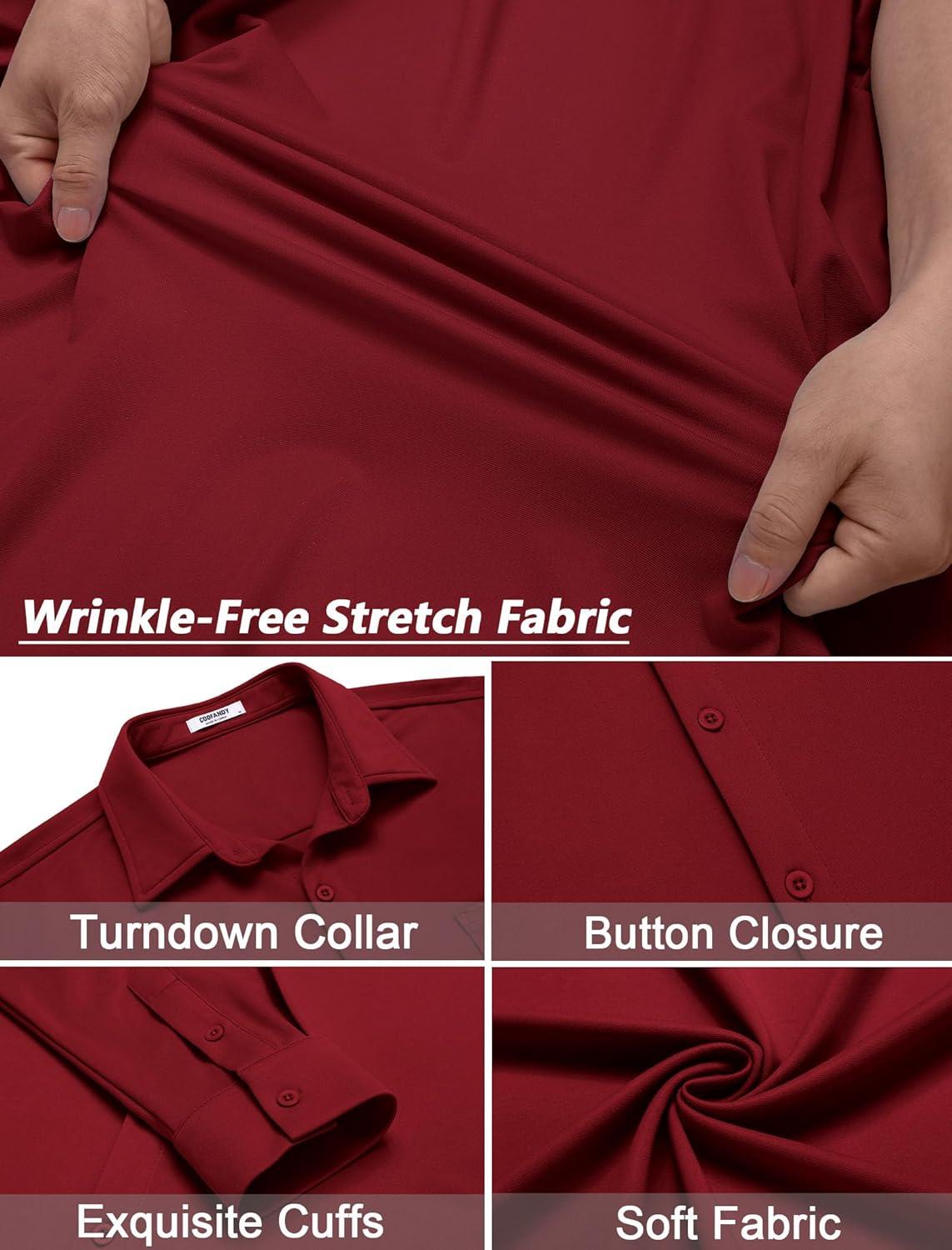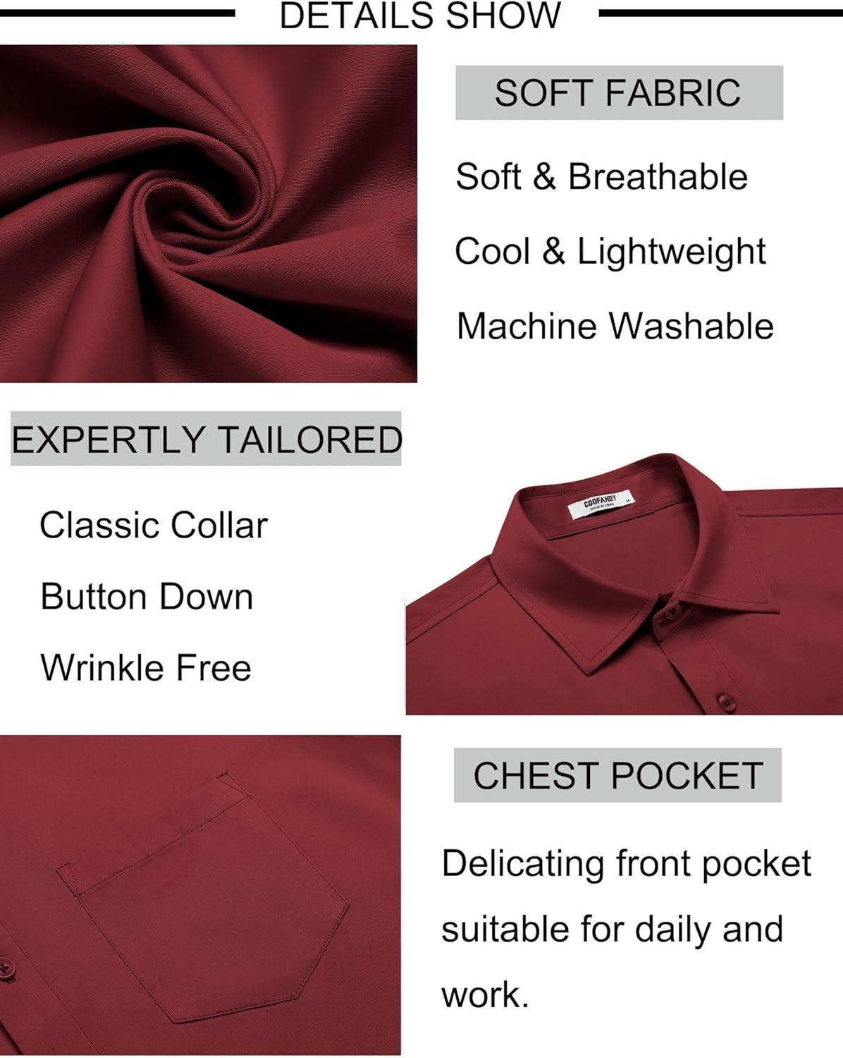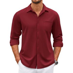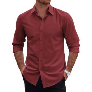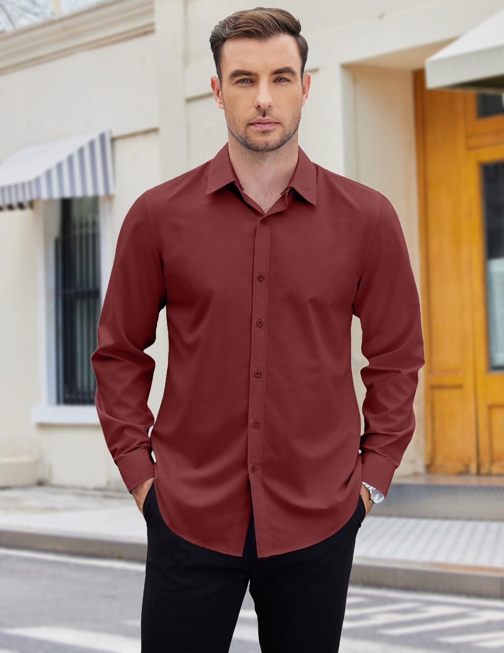 COOFANDY Mens Wrinkle Free Dress Shirts Long Sleeve Untucked Shirts Casual Button Down Shirts(Wine Red)