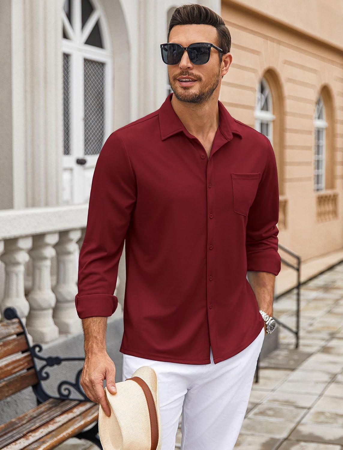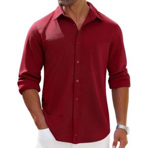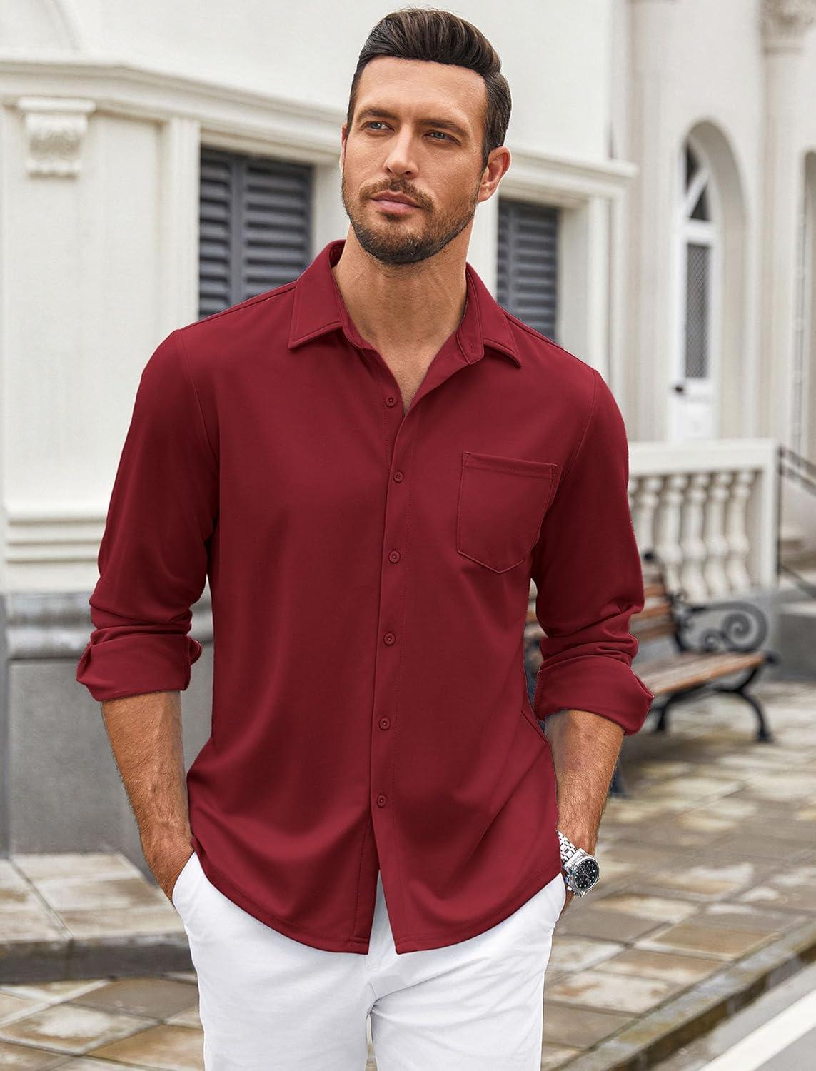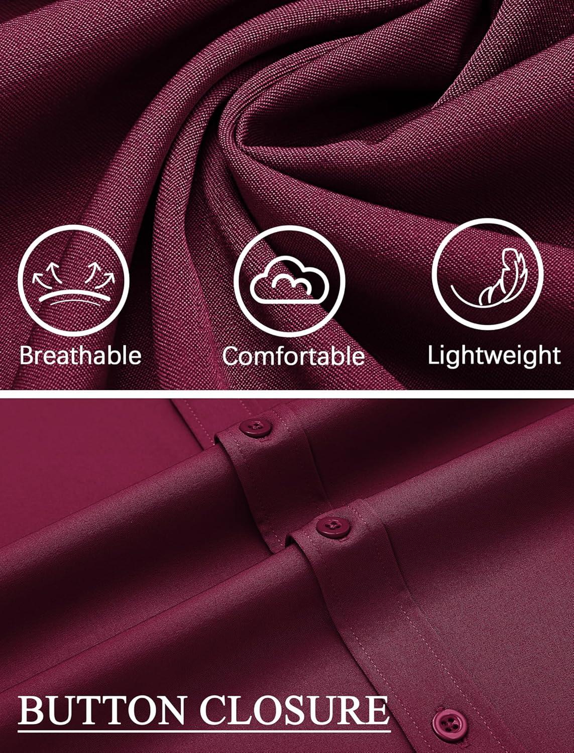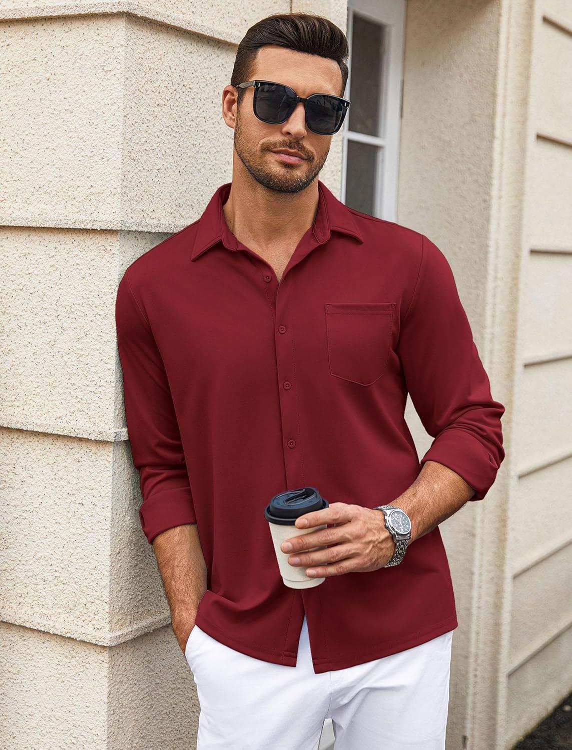 COOFANDY Mens Wrinkle Free Dress Shirts Long Sleeve Untucked Shirts Casual Button Down Shirts(Wine Red)