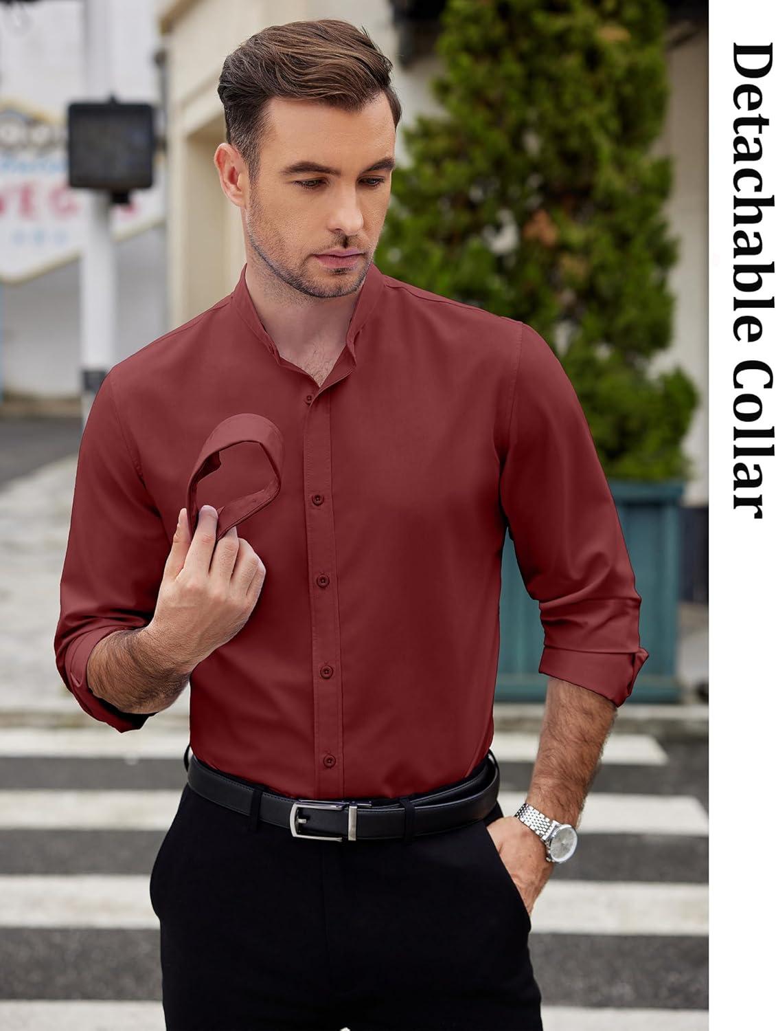 COOFANDY Mens 2-in-1 Dress Shirts Detachable Collar Long Sleeve Wrinkle Free Shirt Business Casual Button Down Shirt(Wine Red)