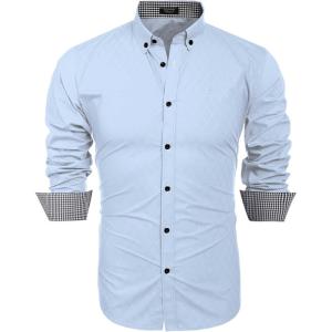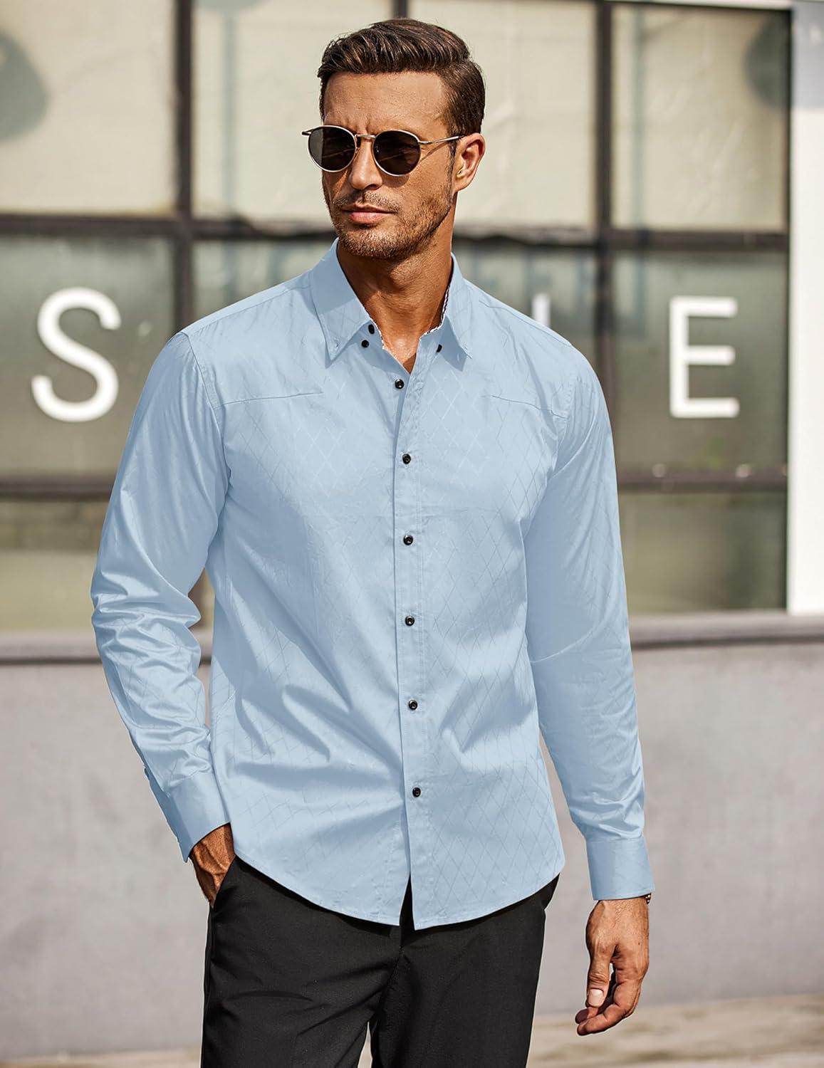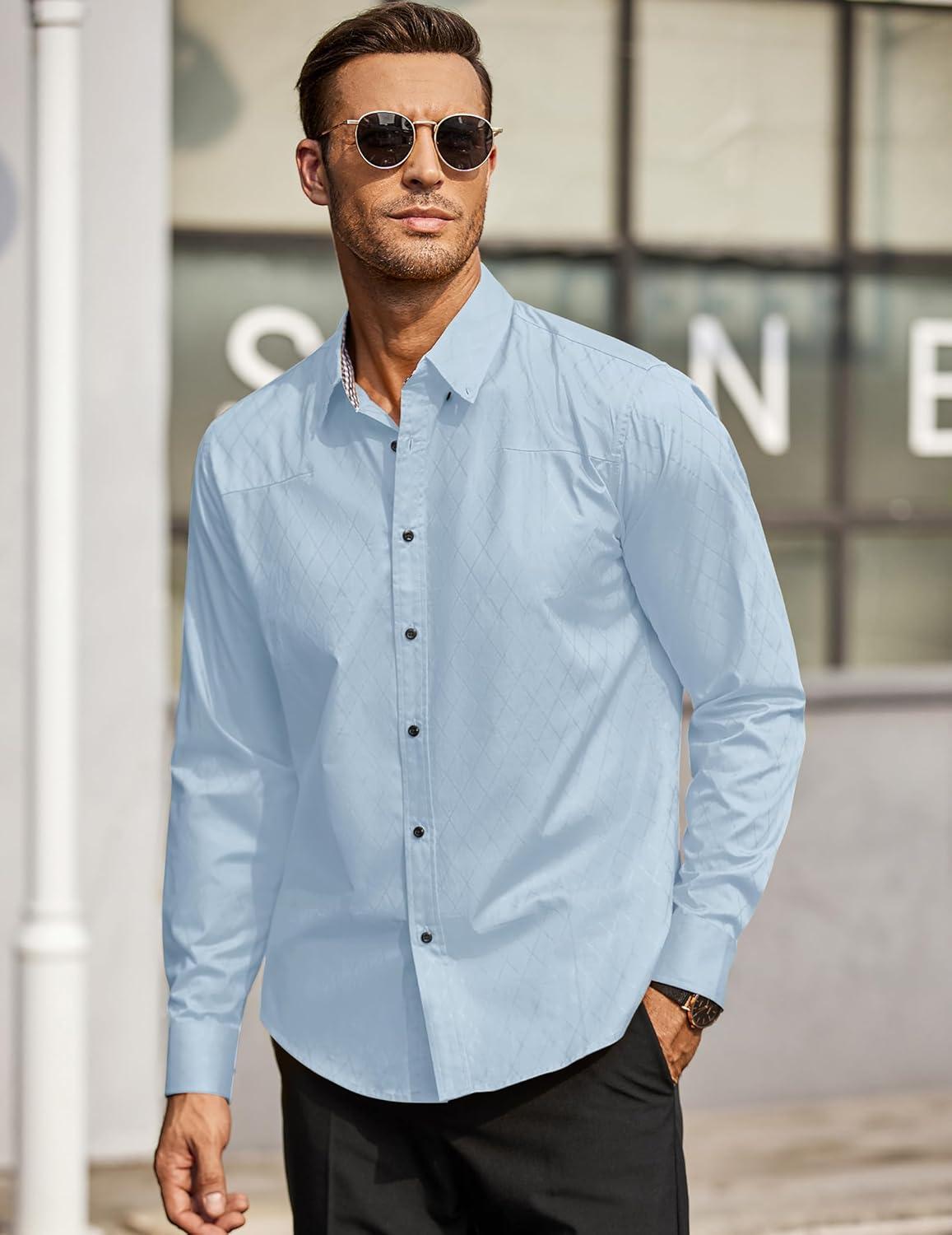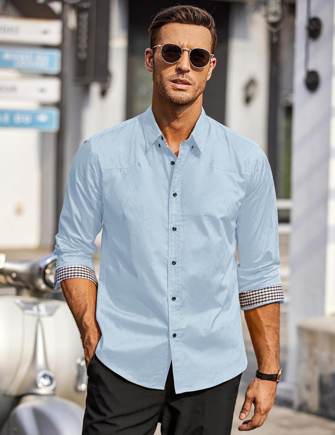 COOFANDY Men’s Casual Dress Shirt Long Sleeve Casual Shirt for Men Button Down Office Shirt(Light Blue)