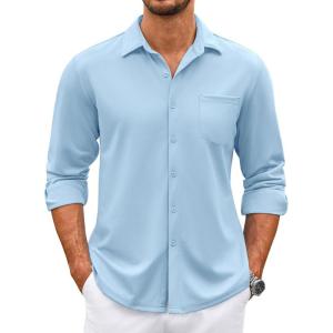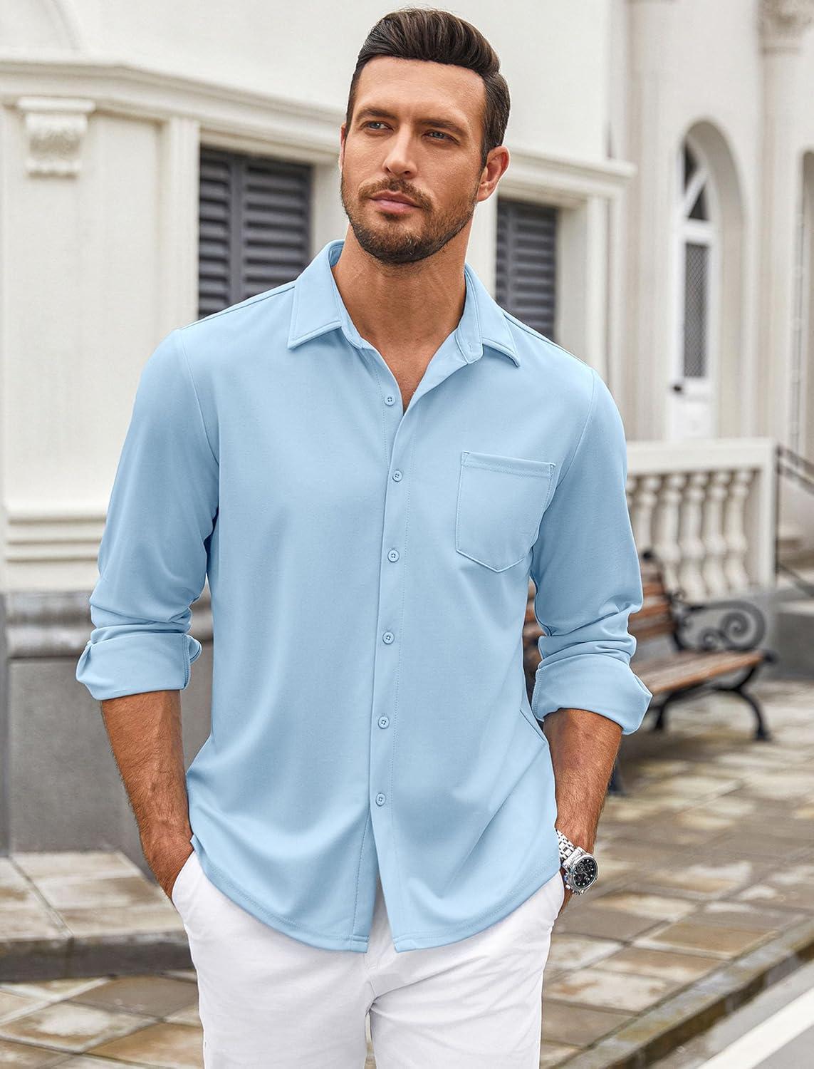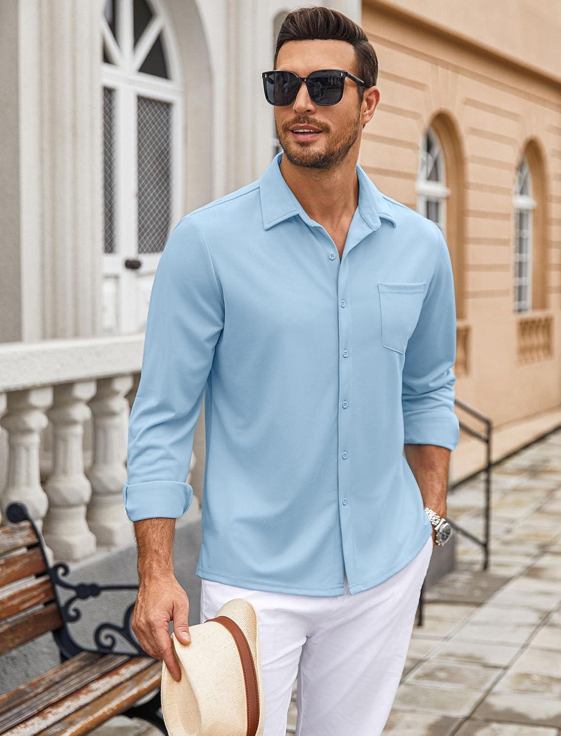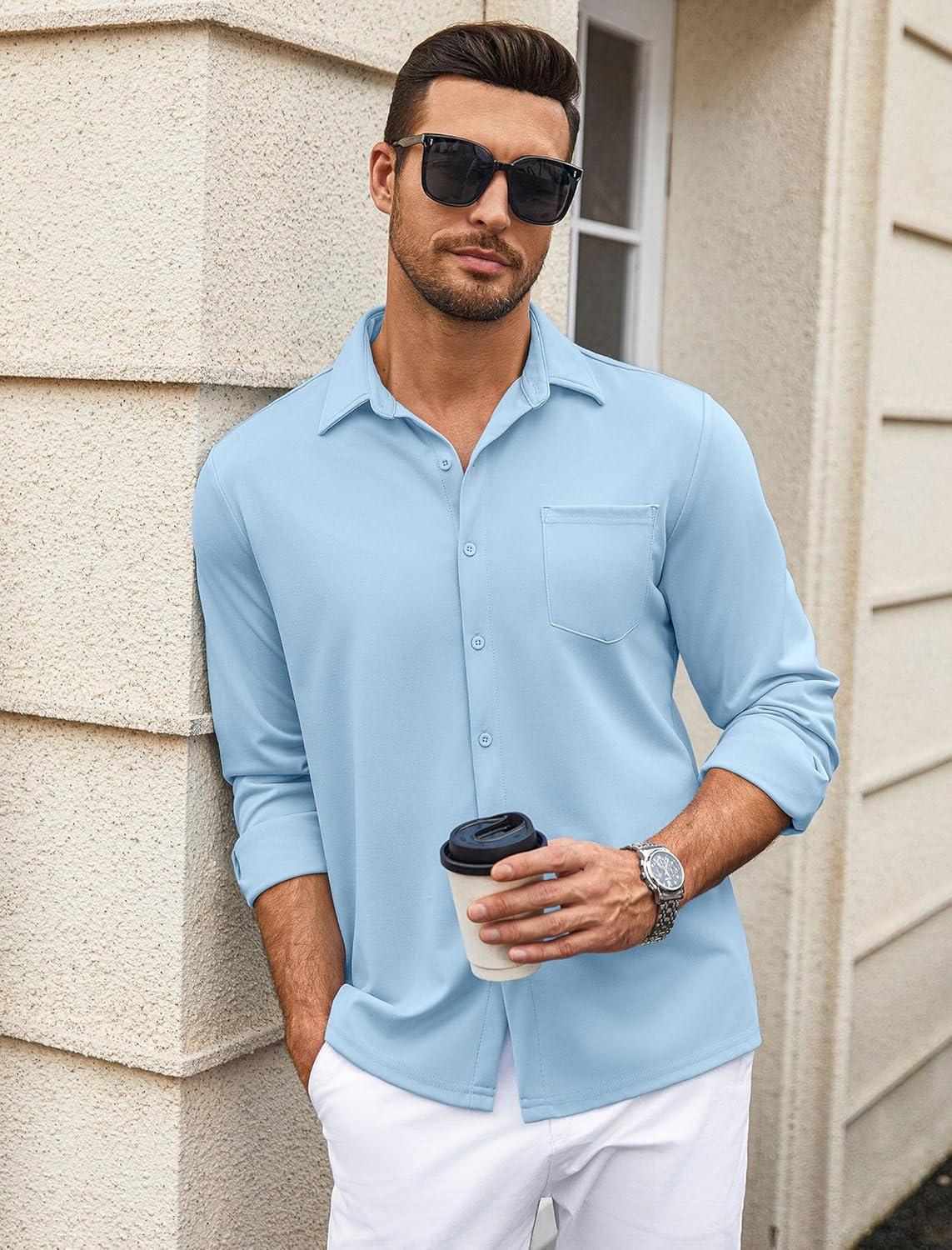 COOFANDY Men’s Casual Dress Shirt Long Sleeve Casual Shirt for Men Button Down Office Shirt(Light Blue)