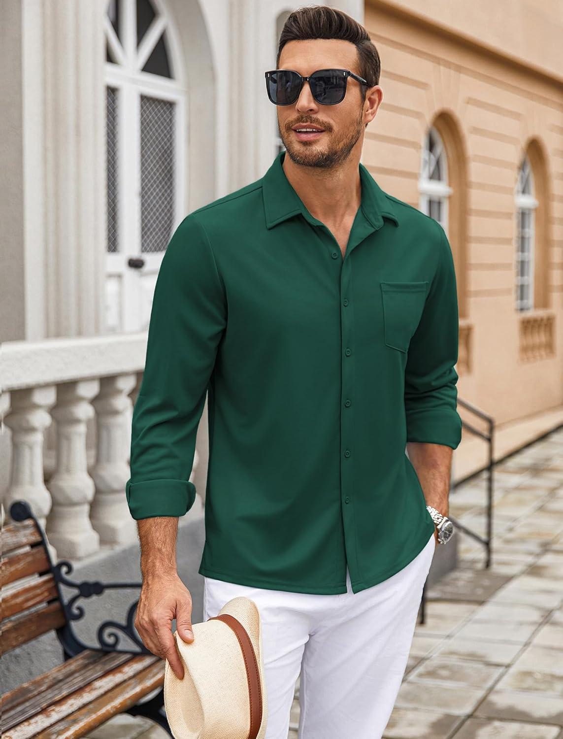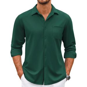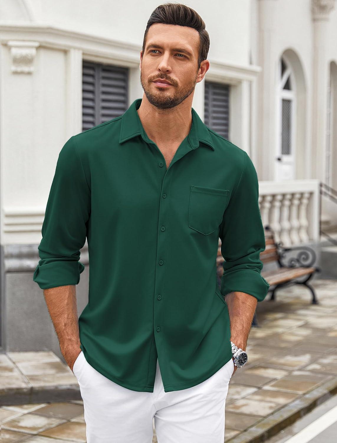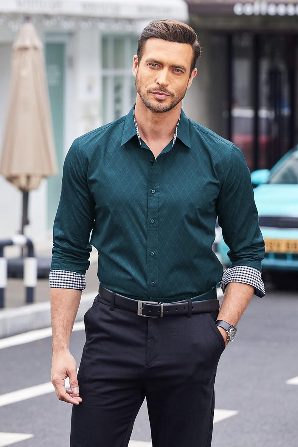 COOFANDY Mens Wrinkle Free Dress Shirts Long Sleeve Untucked Shirts Casual Button Down Shirts(Lake Green)