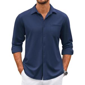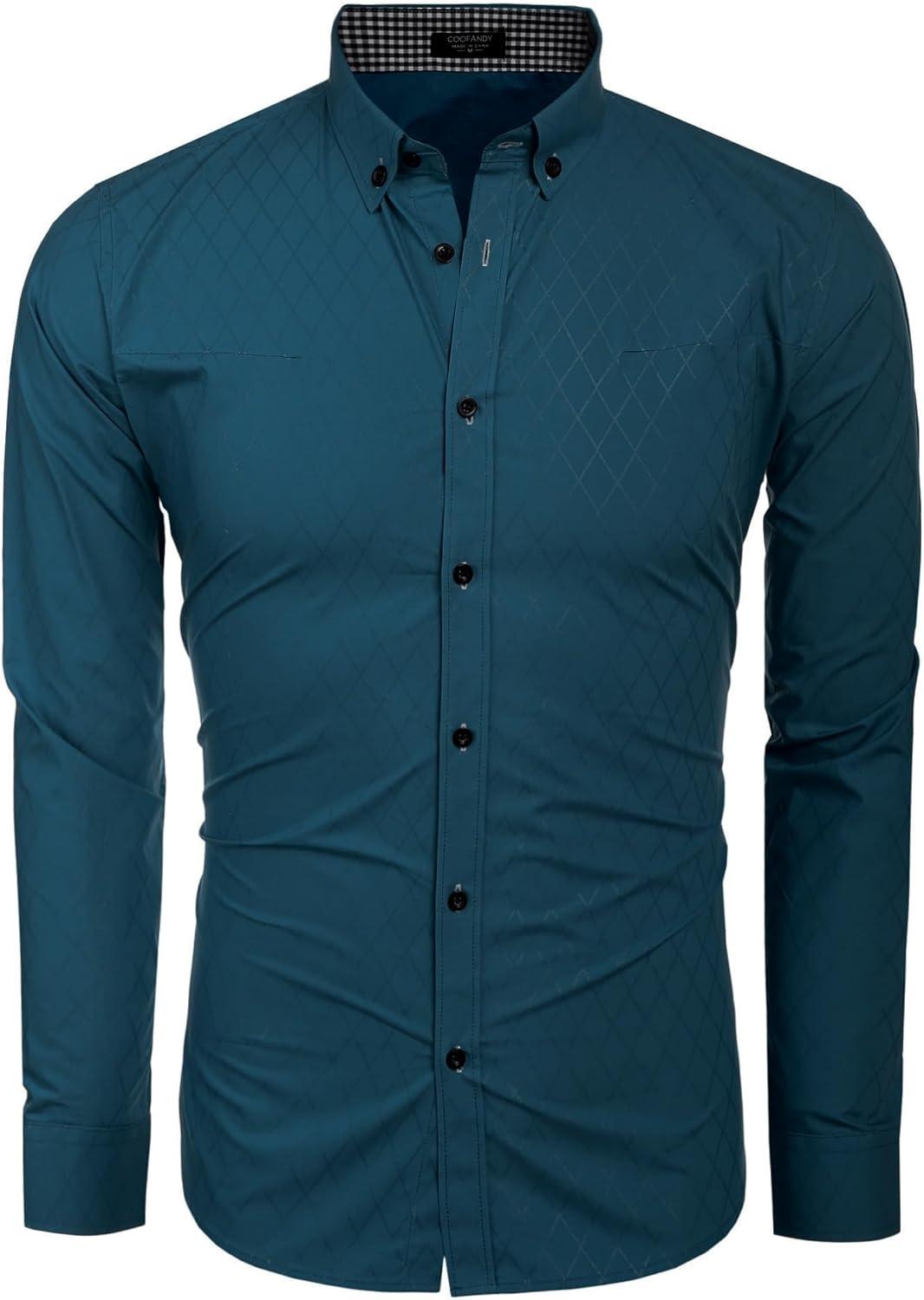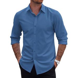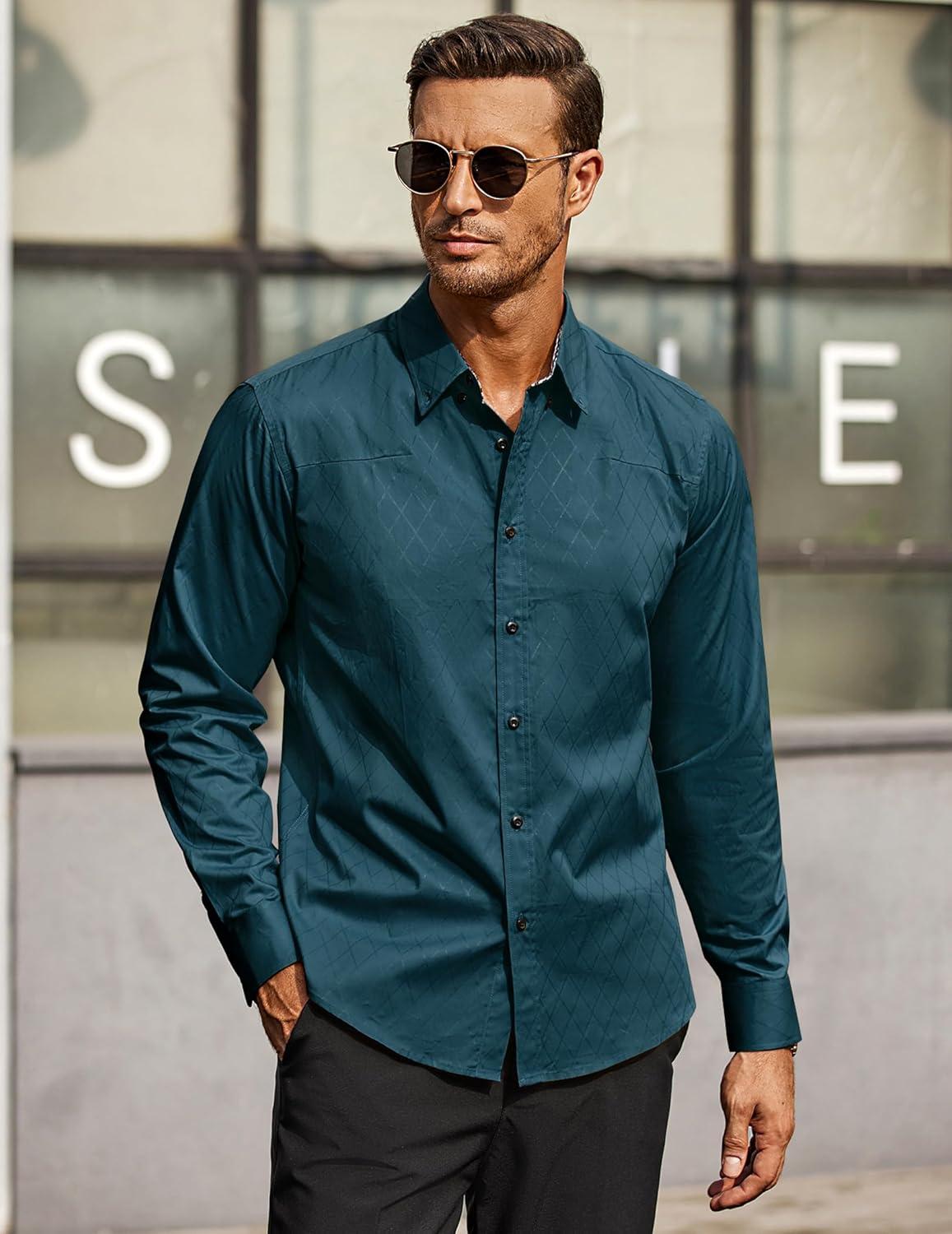 COOFANDY Men’s Casual Dress Shirt Long Sleeve Casual Shirt for Men Button Down Office Shirt(Ocean Blue)