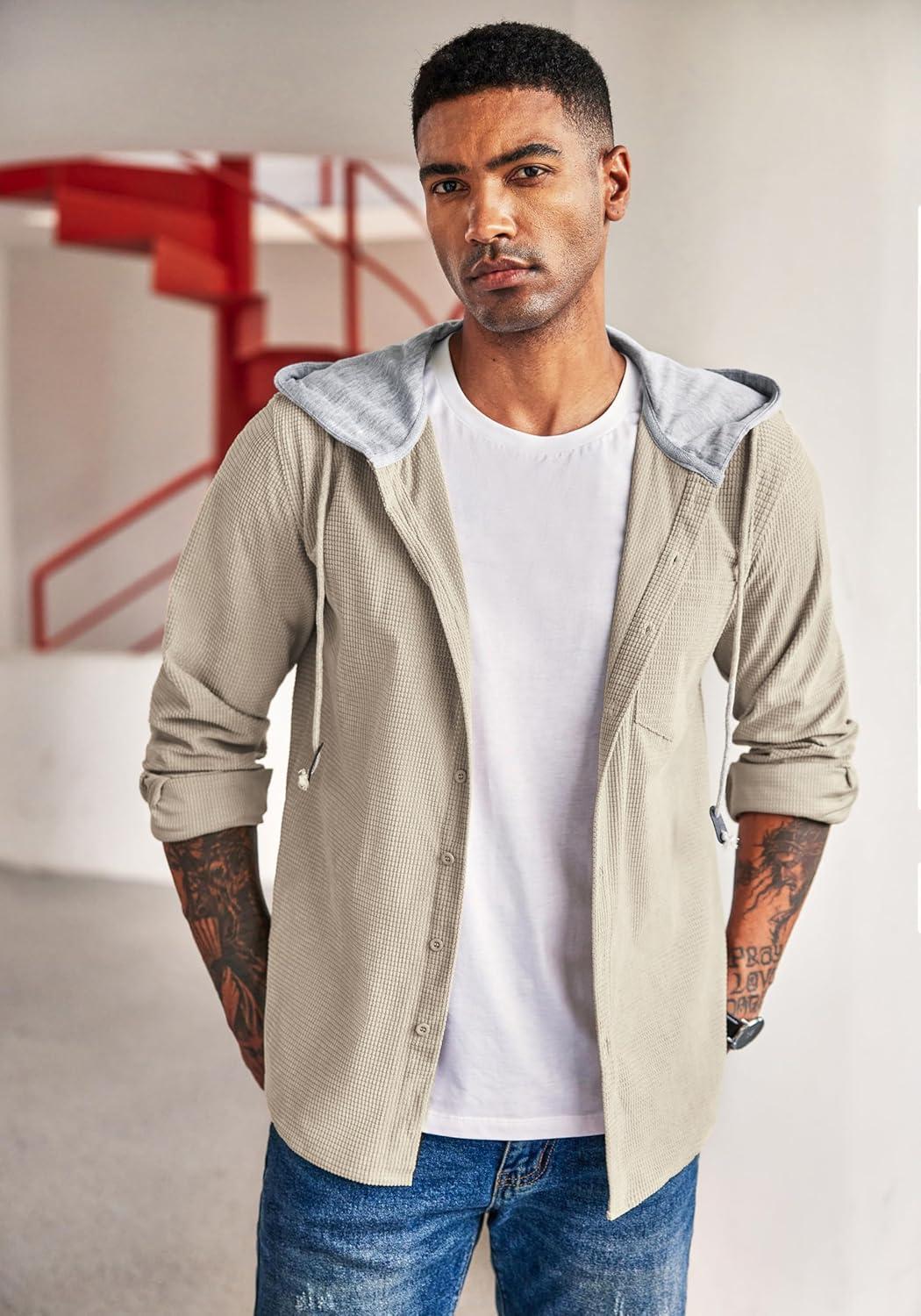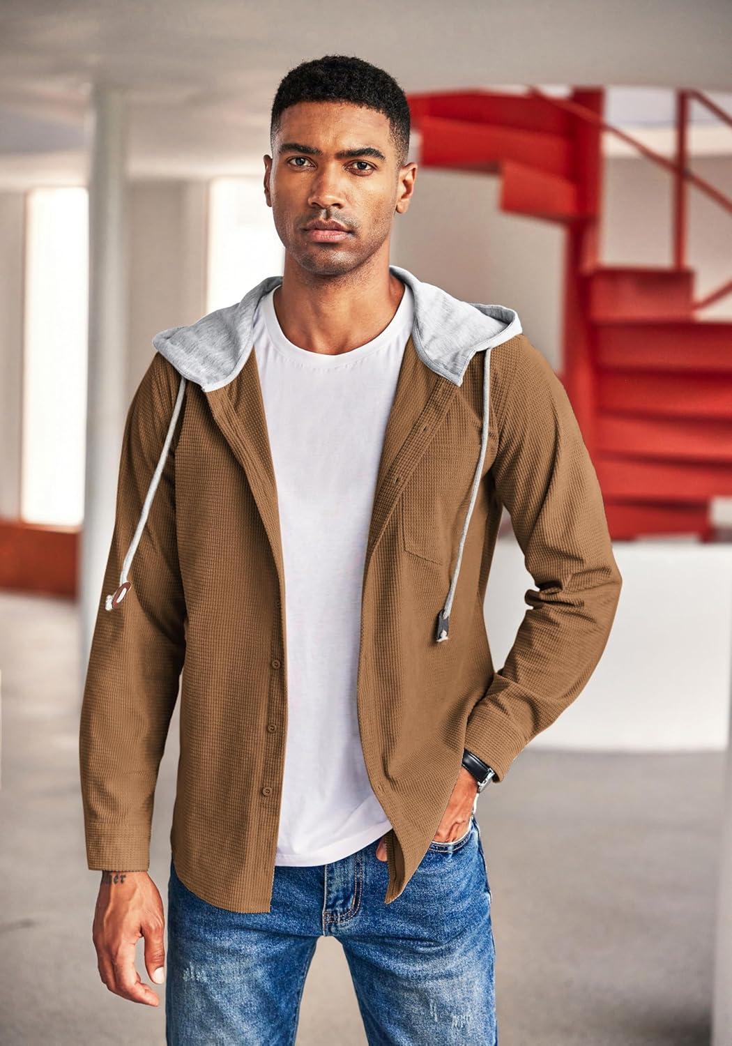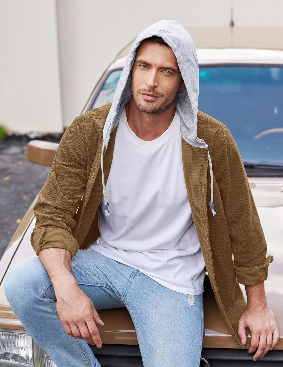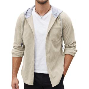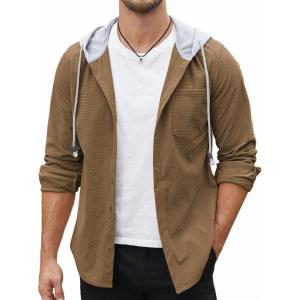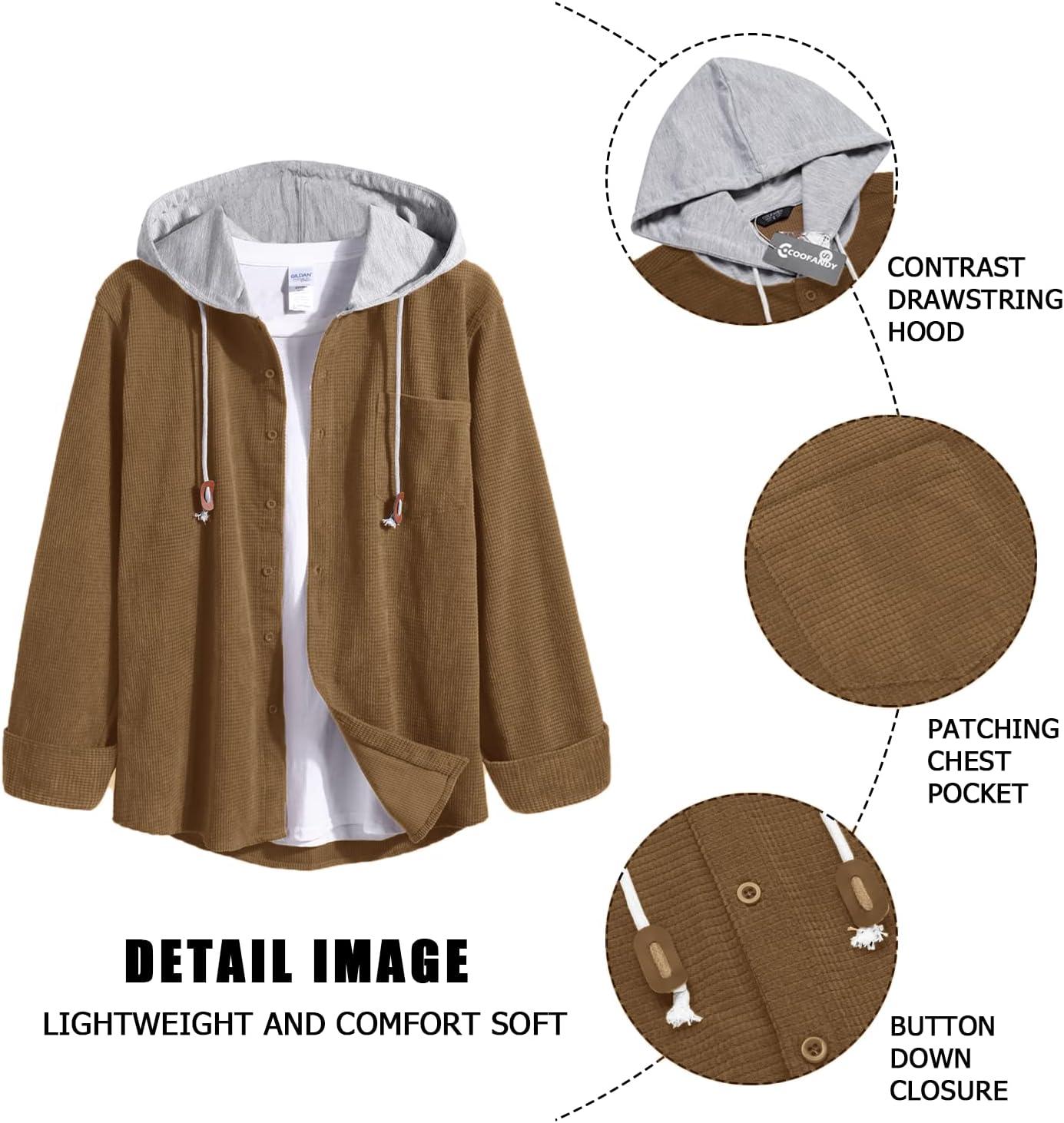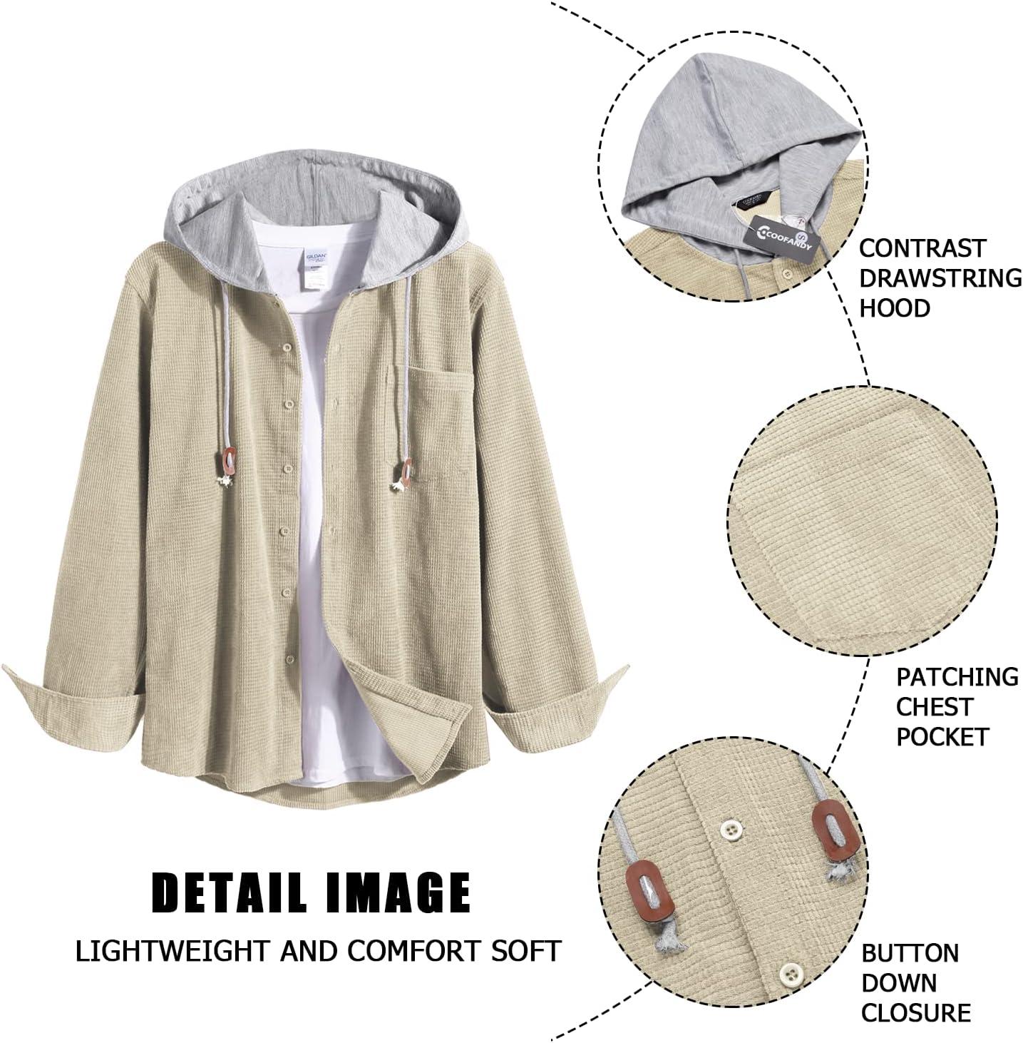 COOFANDY Men’s Corduroy Shirt Jackets Long Sleeve Button Down Casual Stylish Hooded Shacket Jacket with Pocket(Khaki)