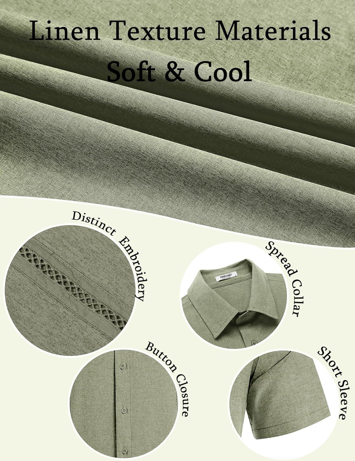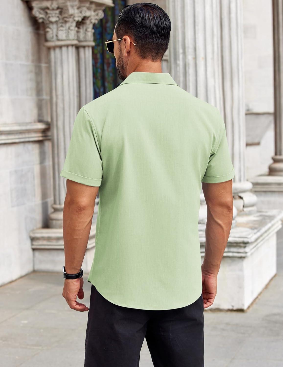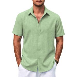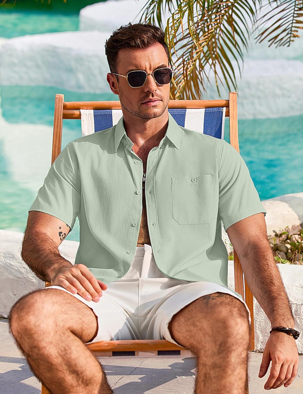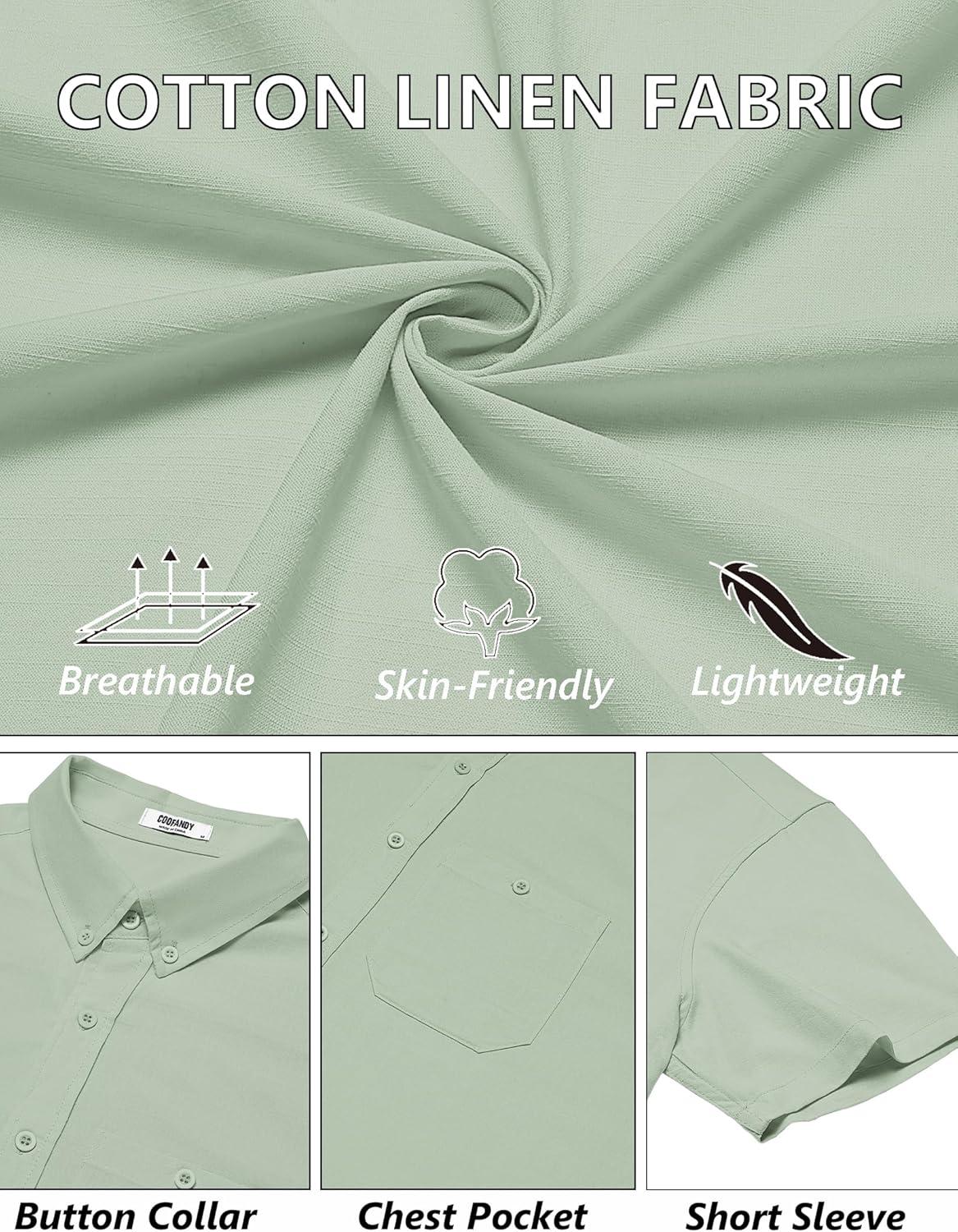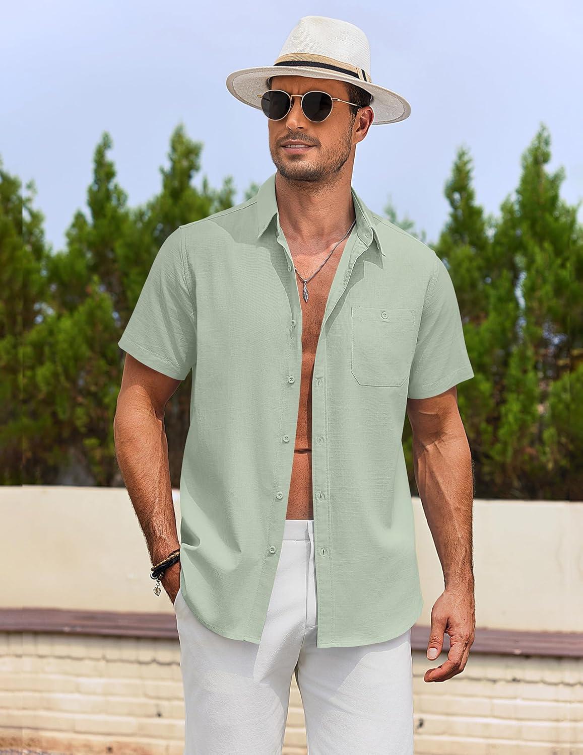 COOFANDY Men’s Cotton Linen Shirts Short Sleeve Casual Shirts Summer Button Down Shirt Linen Beach Vacation Shirt(Light Green)