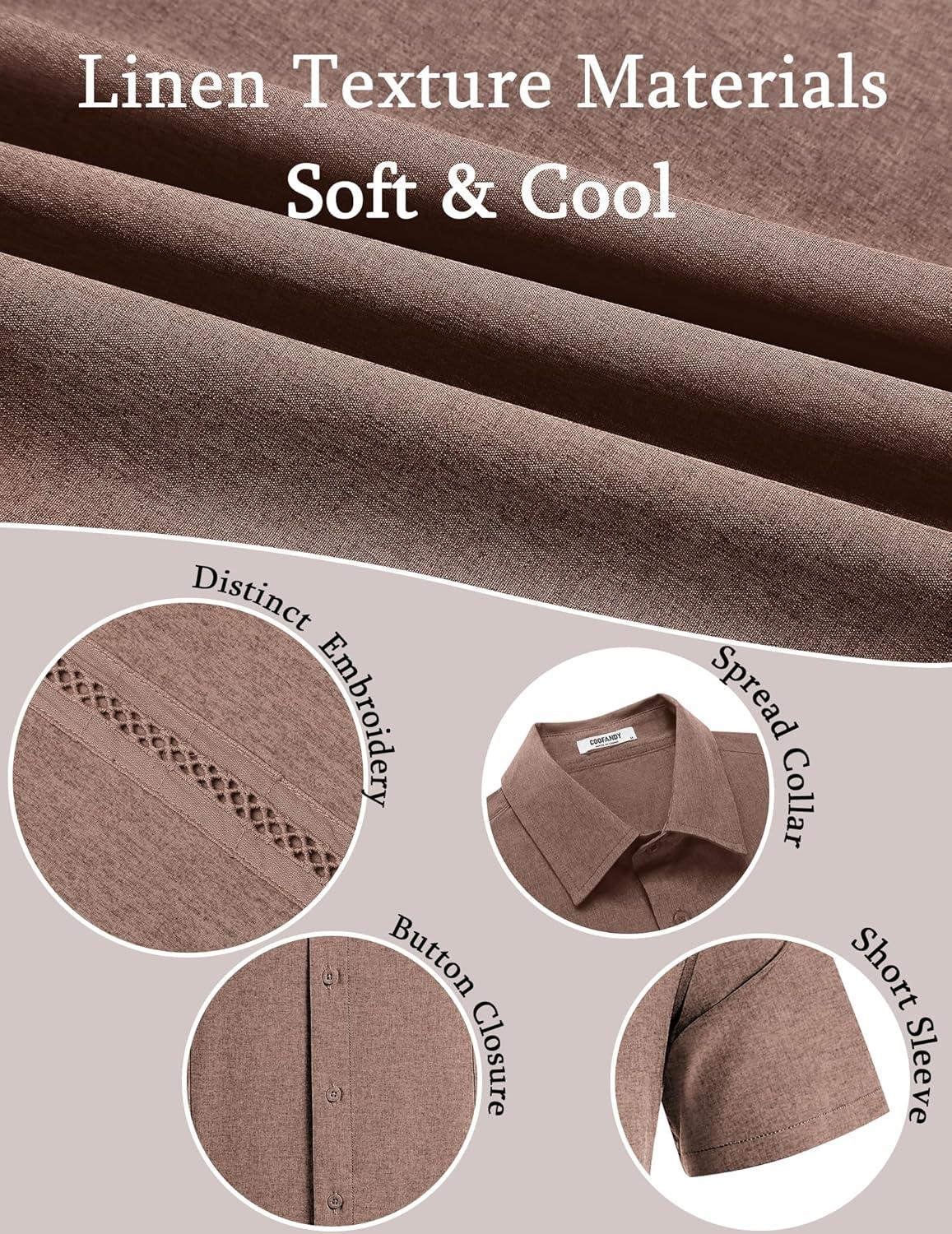 COOFANDY Men’s Linen Shirts Short Sleeve Casual Shirts Summer Beach Button Down Shirts with Pocket(Light Brown)