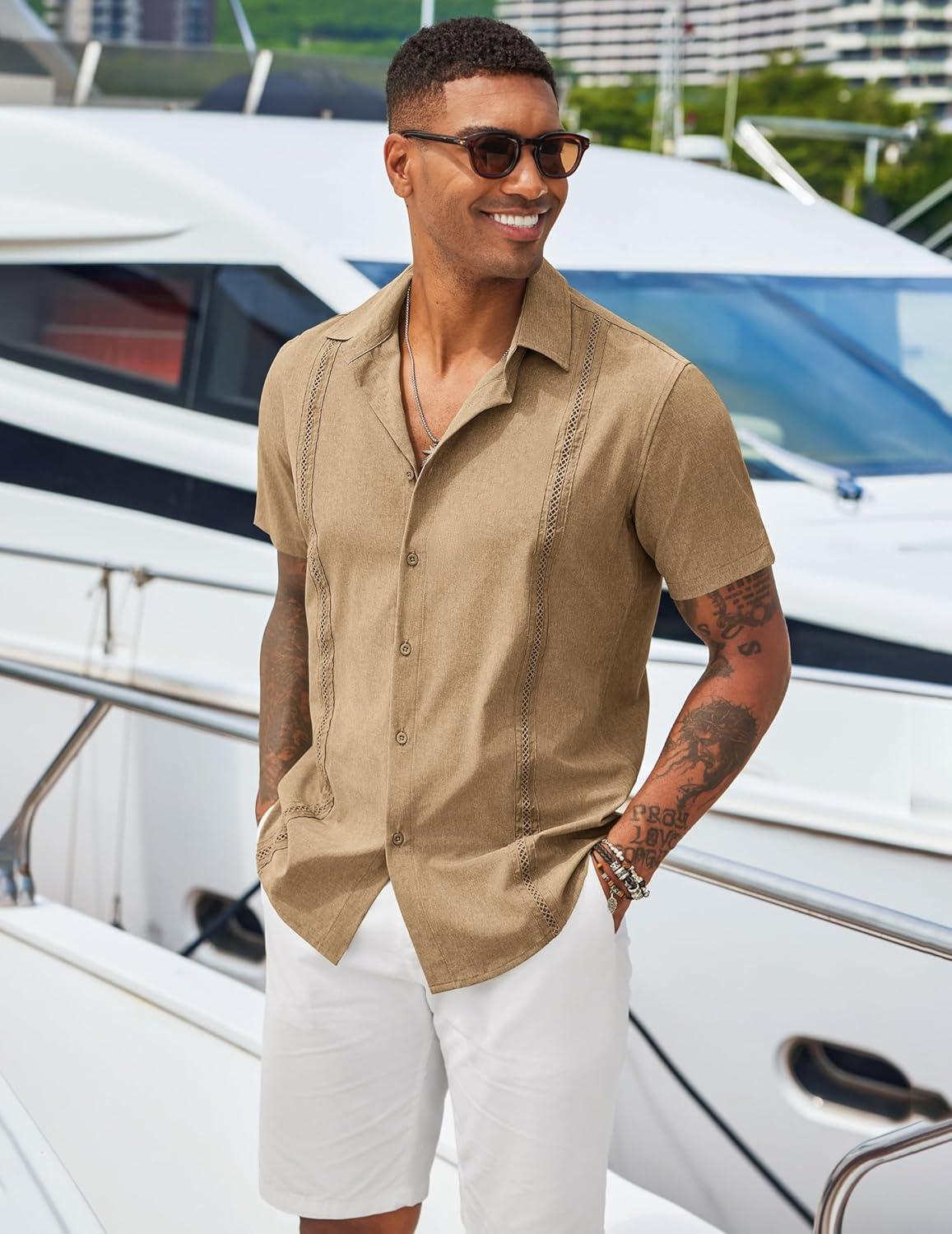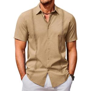 COOFANDY Men’s Cuban Guayabera Shirts Casual Short Sleeve Button Down Shirt Summer Beach Vacation Shirt(Camel)