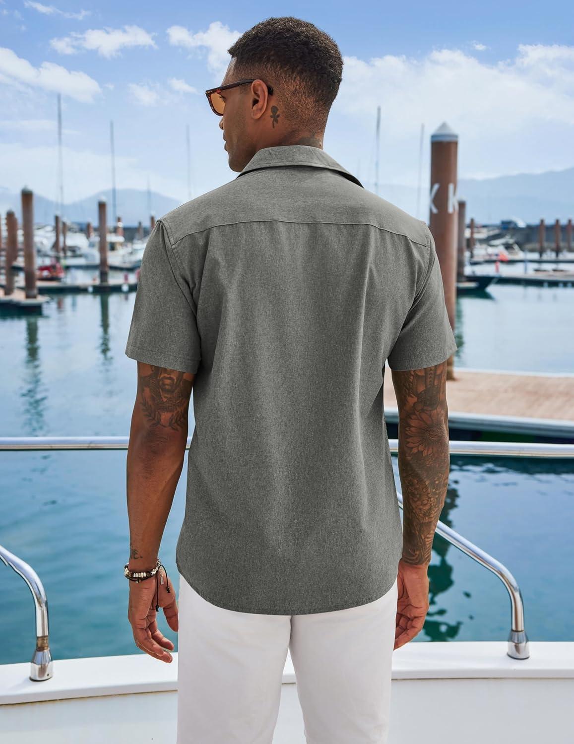 COOFANDY Button Down Shirt for Men Short Sleeve Casual Shirt Summer Beach Vacation Shirt with Pocket(Light Grey)