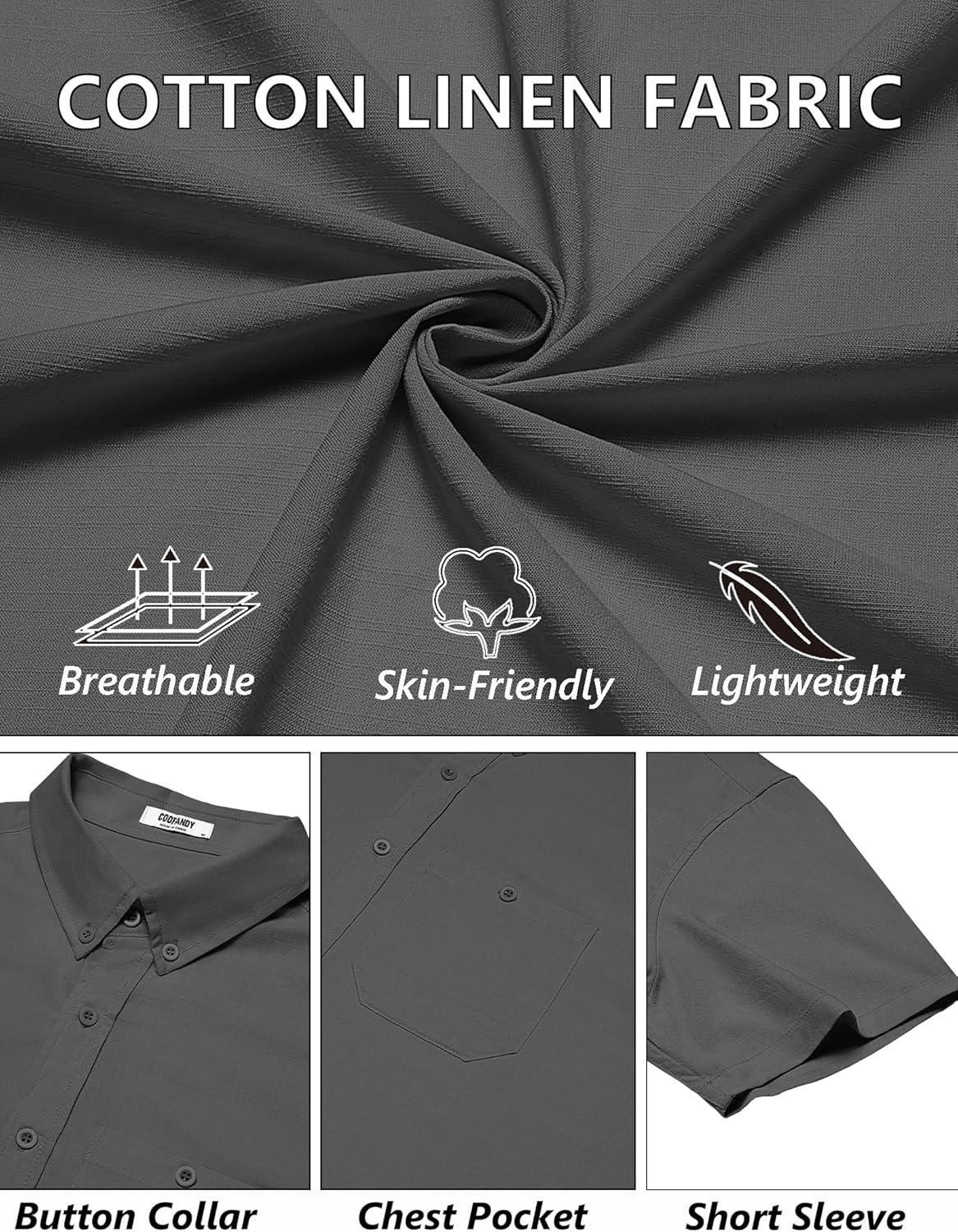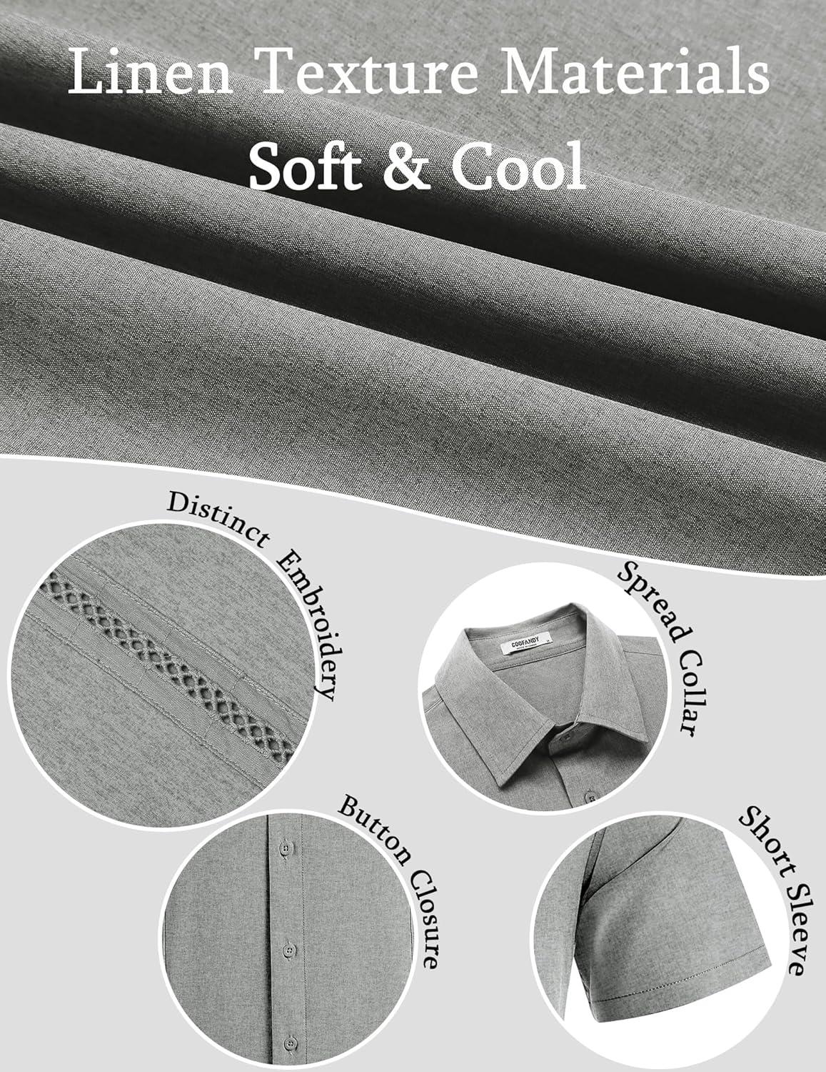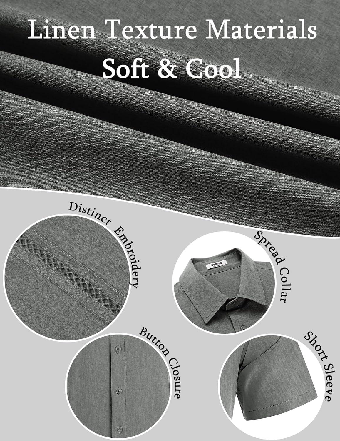 COOFANDY Men’s Cotton Linen Shirts Short Sleeve Casual Shirts Summer Button Down Shirt Linen Beach Vacation Shirt(Dark Gray)
