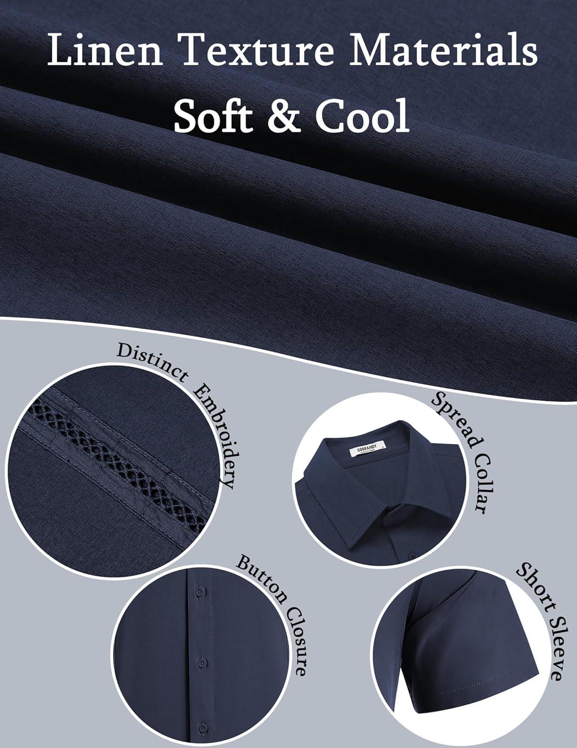 COOFANDY Mens Short Sleeve Button Down Shirts Casual Summer Beach Shirt Wedding Dress Shirts with Pocket(Navy Blue)