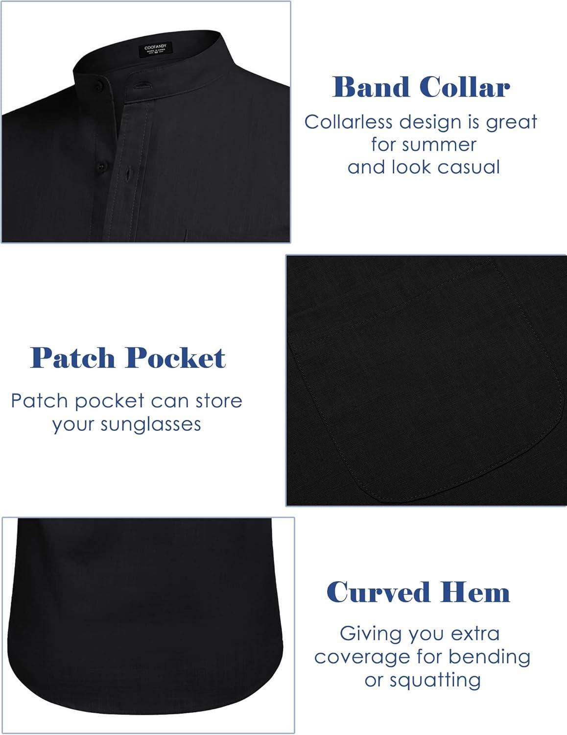 COOFANDY Men’s Linen Shirts Short Sleeve Casual Shirts Summer Beach Button Down Shirts with Pocket(Black)