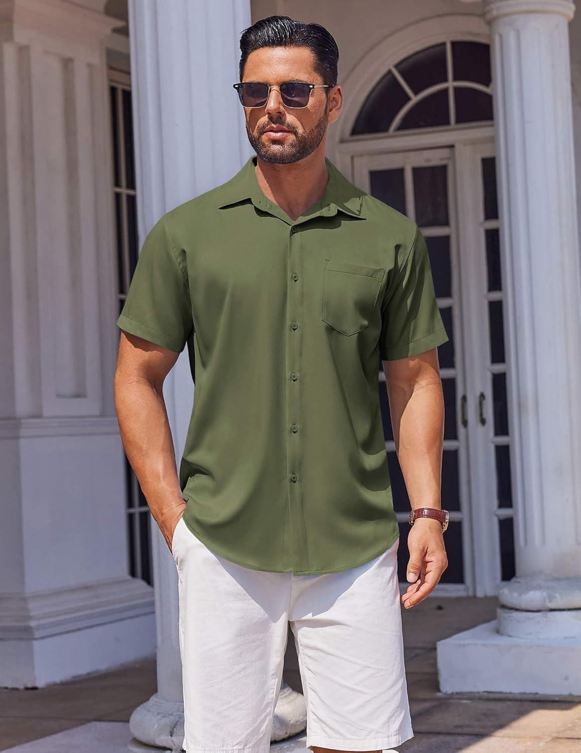COOFANDY Mens Short Sleeve Button Down Shirt Casual Untucked Summer Shirt with Pocket(Army Green)