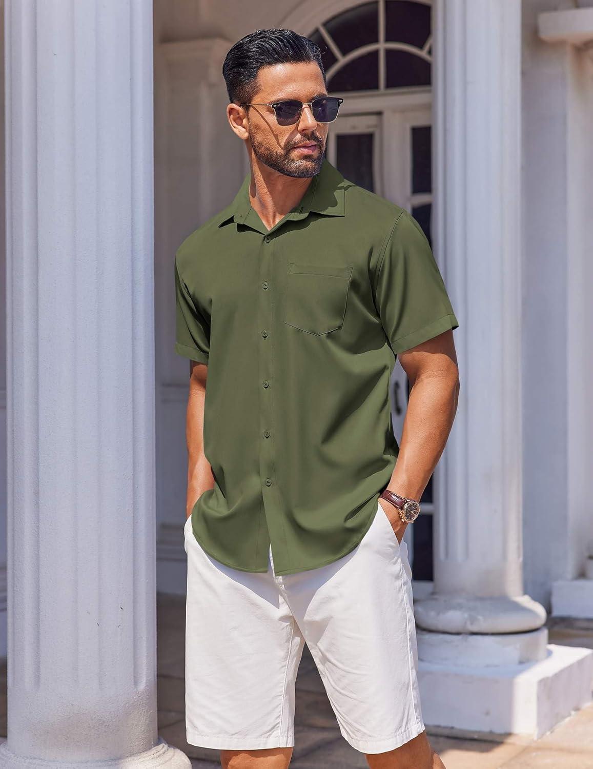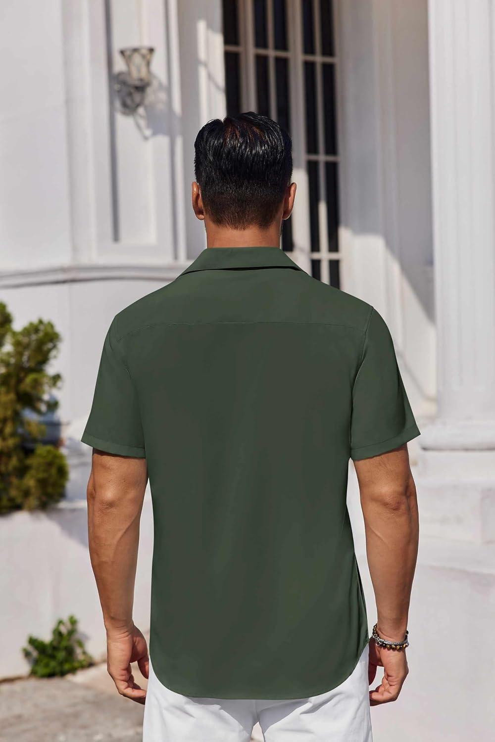 COOFANDY Button Down Shirt for Men Short Sleeve Casual Shirt Summer Beach Vacation Shirt with Pocket(Dark Army Green)
