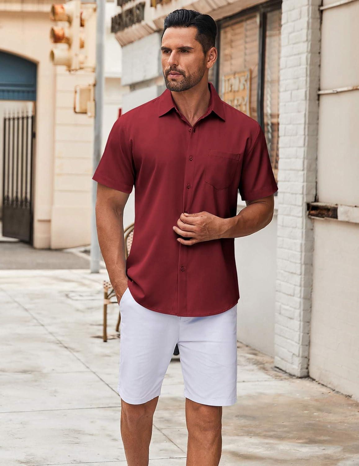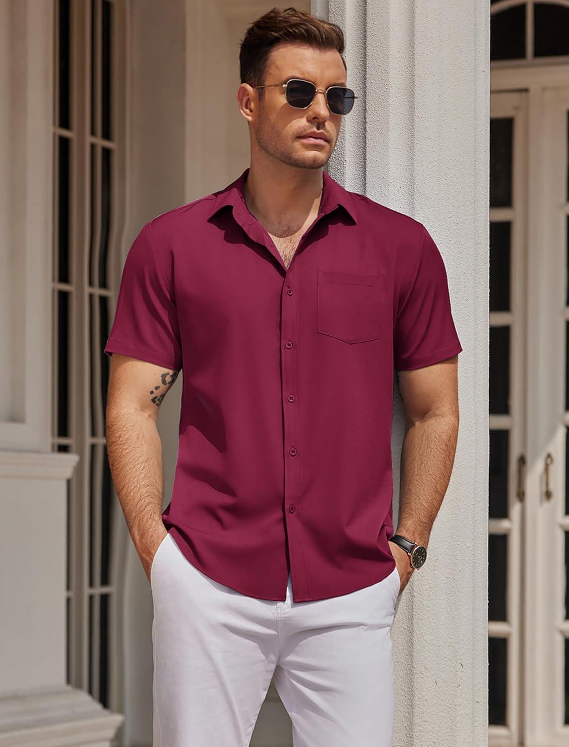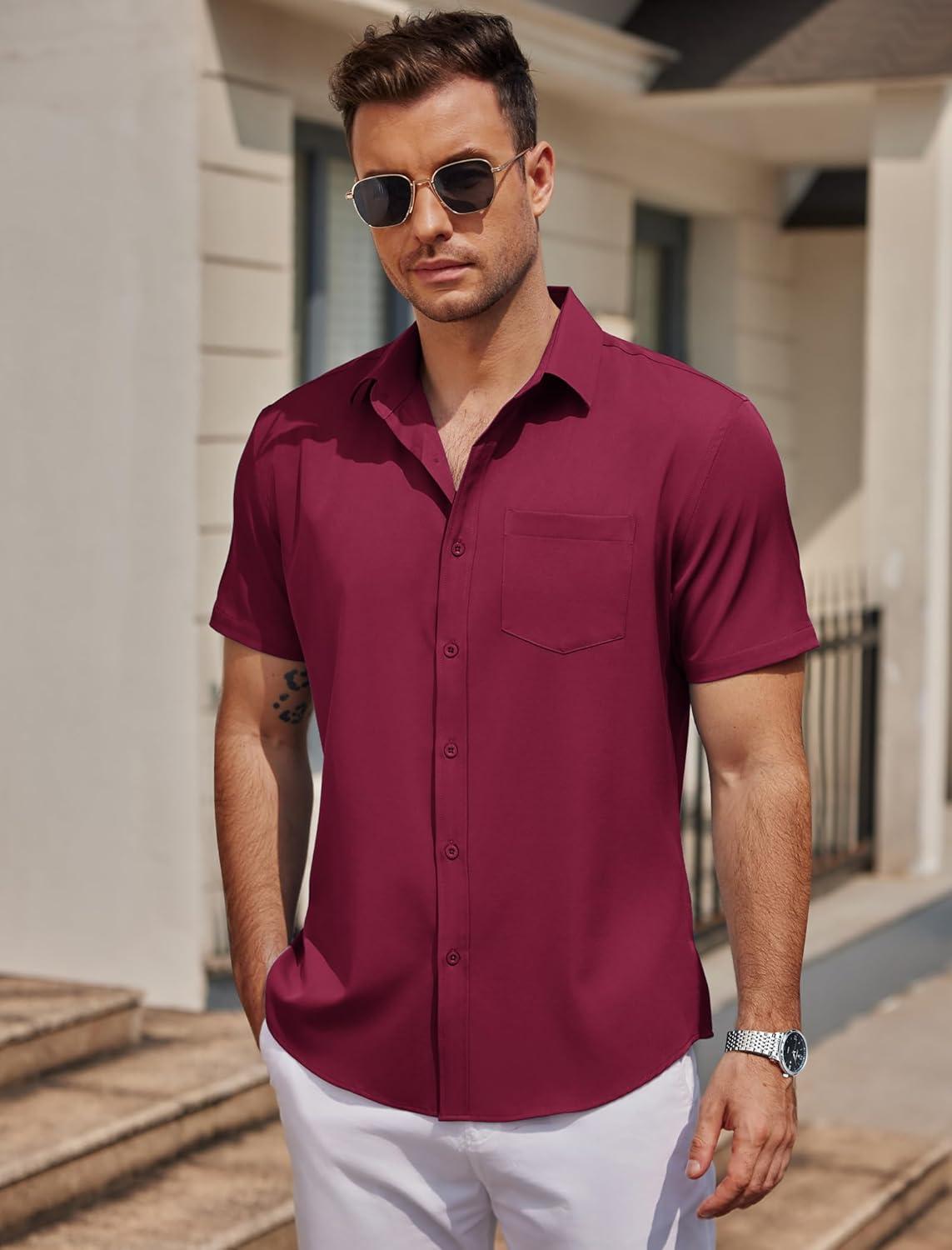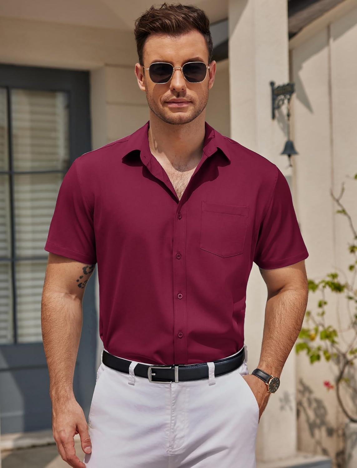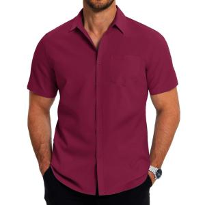 COOFANDY Men’s Dress Shirt Short Sleeve Button Down Shirts with Pocket(Wine Red)
