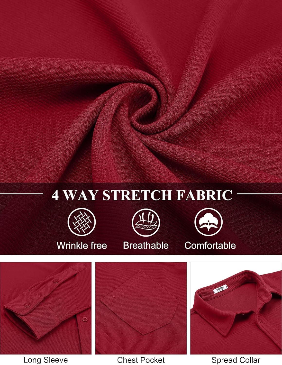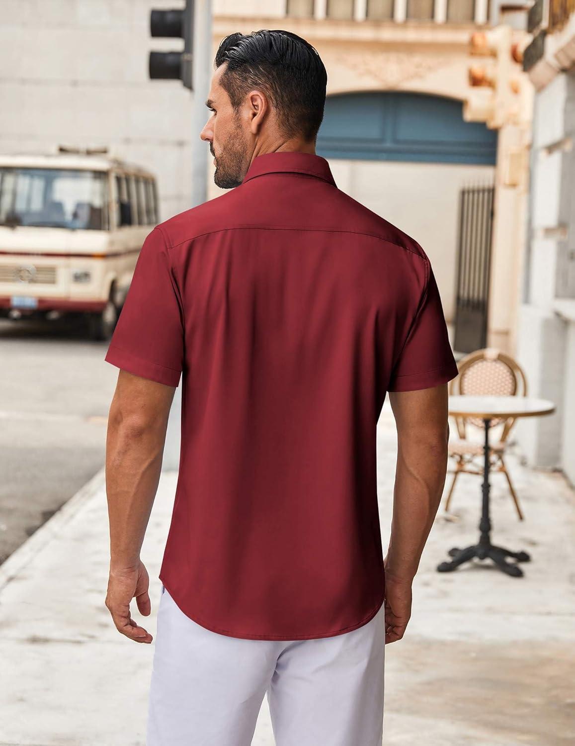 COOFANDY Men’s Casual Button Down Shirts Stretch Short Sleeve Business Dress Shirt with Pocket(Red)