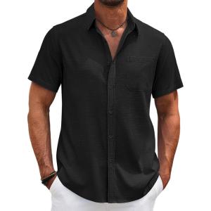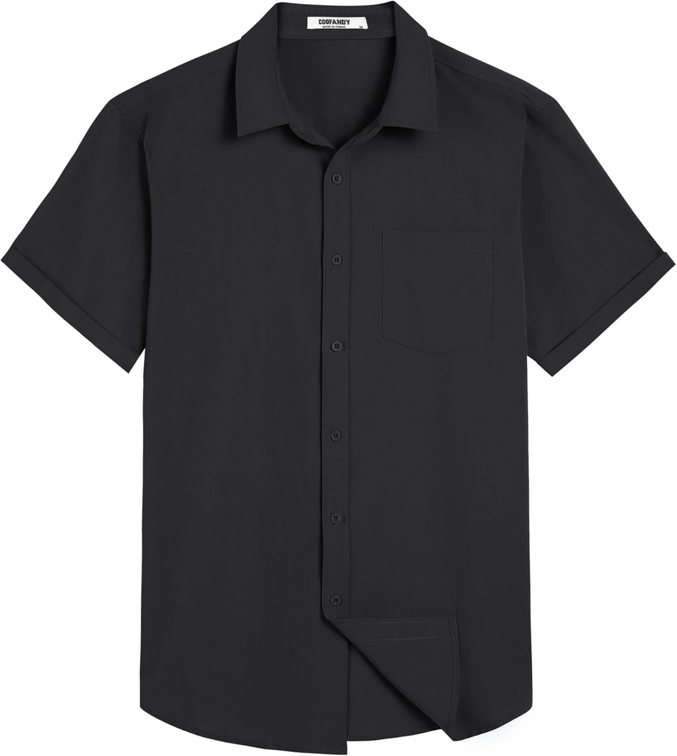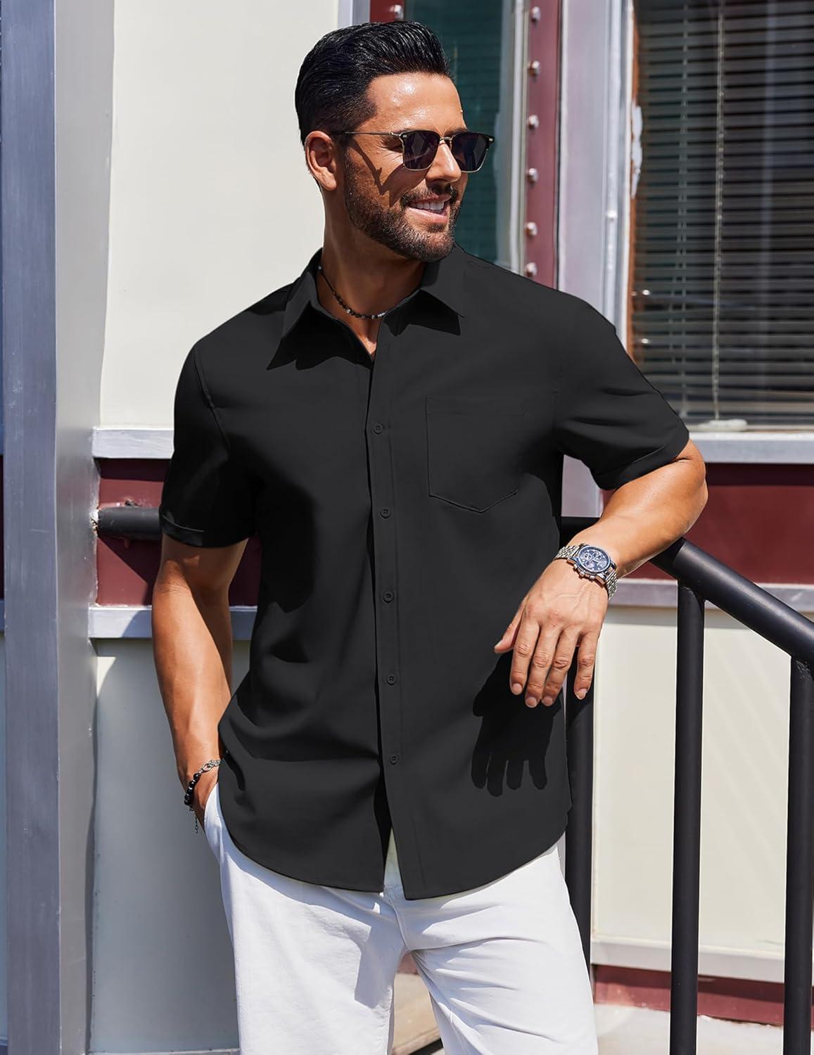 COOFANDY Mens Casual Button Down Shirts Lightweight Short Sleeve Shirts(Black)