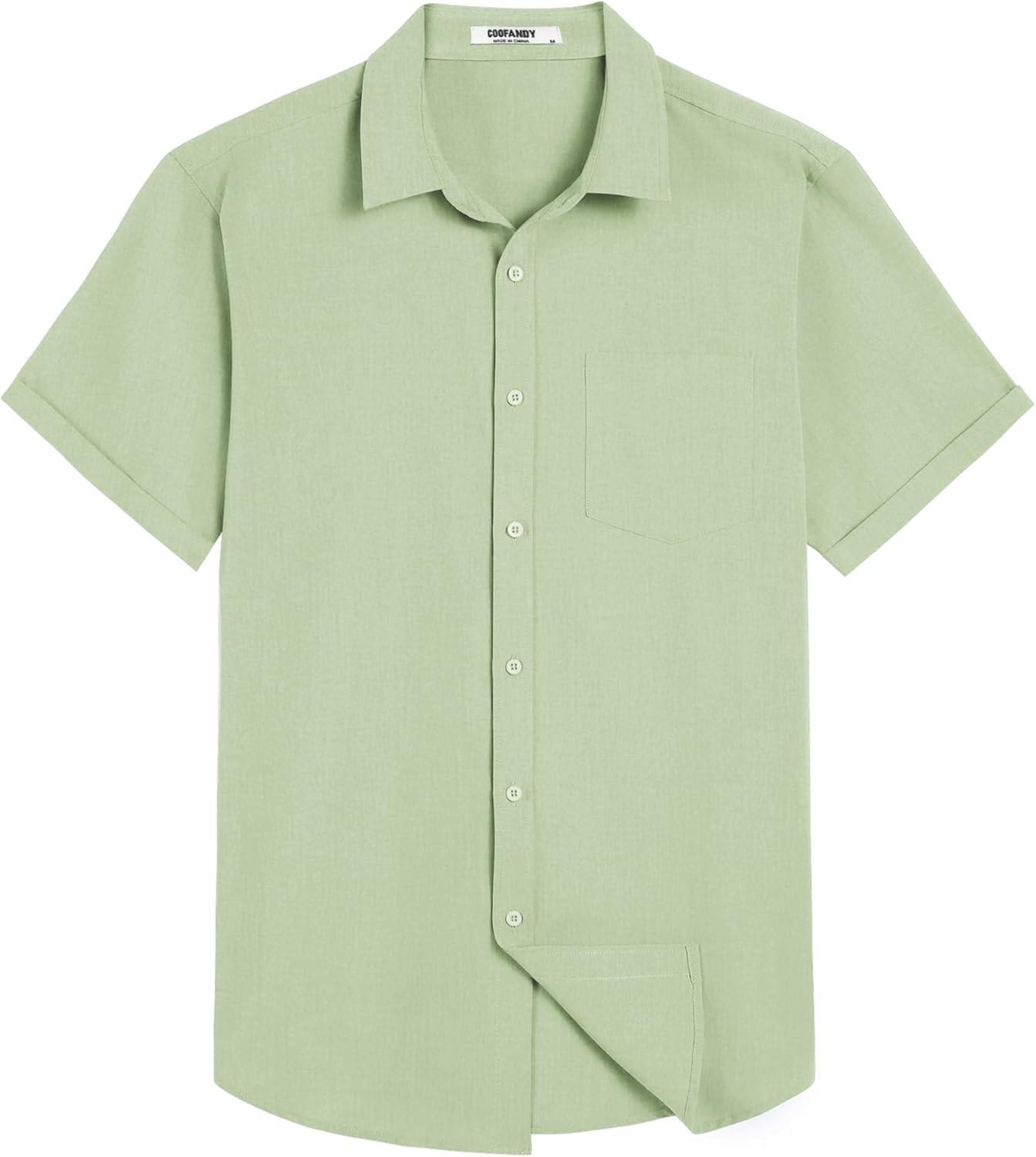 COOFANDY Men’s Linen Shirts Short Sleeve Casual Shirts Summer Beach Button Down Shirts with Pocket(Light Green)