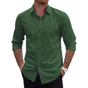 COOFANDY Mens Wrinkle Free Dress Shirts Long Sleeve Untucked Shirts Casual Button Down Shirts(Dark Army Green)