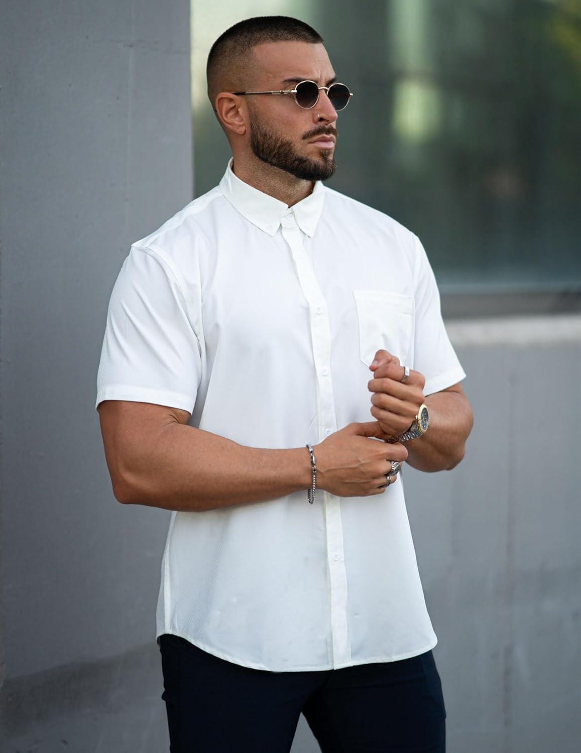 COOFANDY Men’s Dress Shirt Short Sleeve Button Down Shirts with Pocket(01- White)