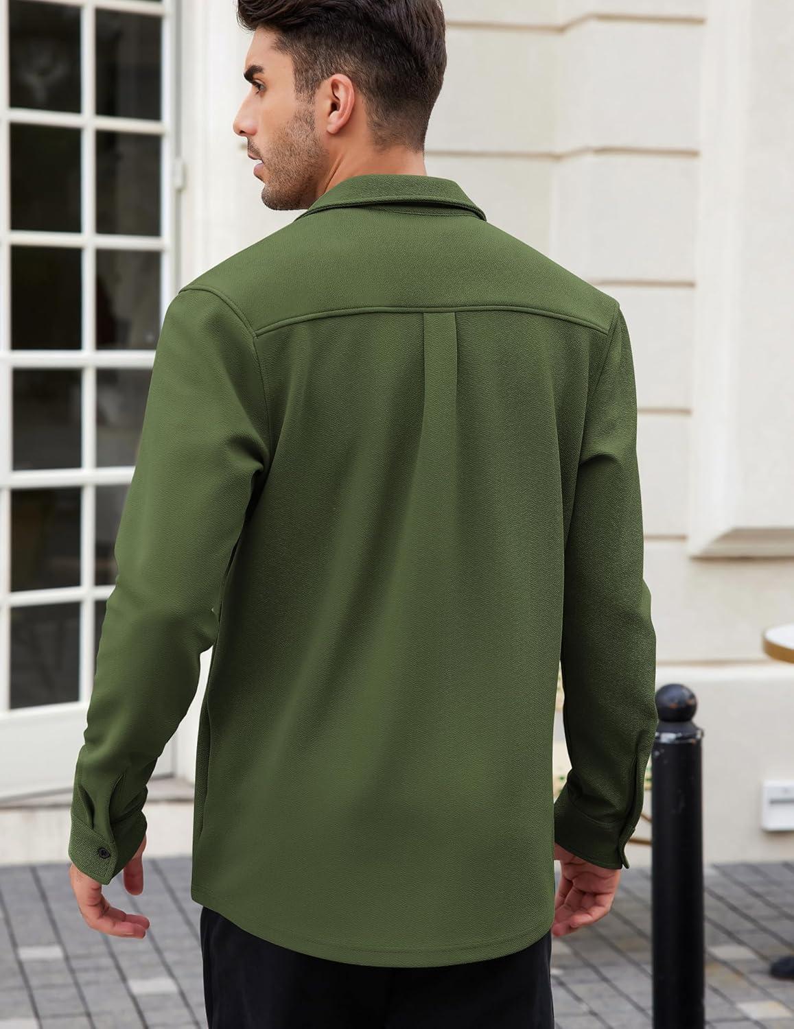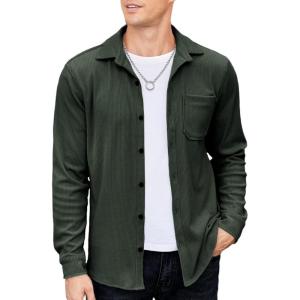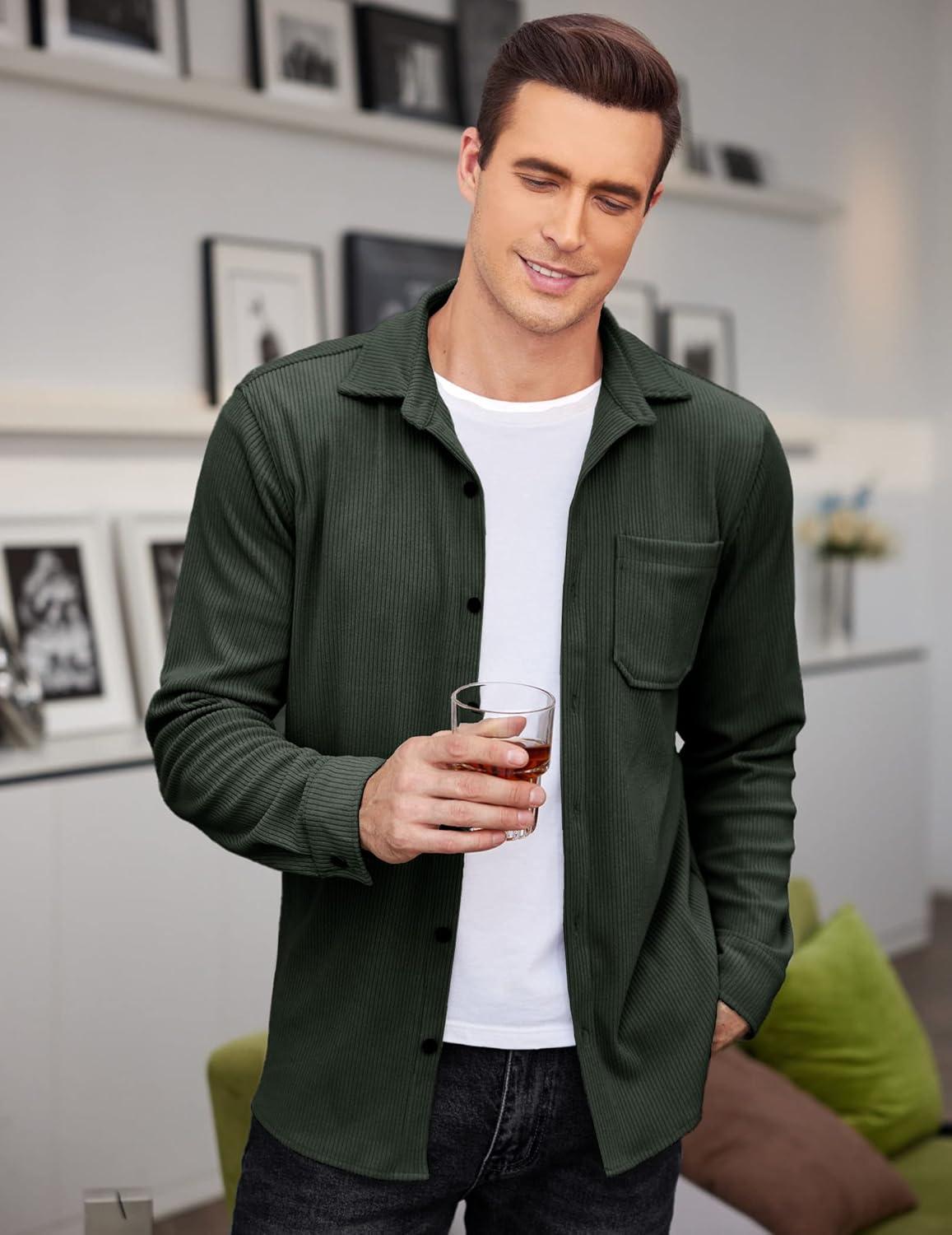 COOFANDY Men’s Corduroy Shirt Casual Shacket Long Sleeve Button Down Lightweight Jacket(Army Green)