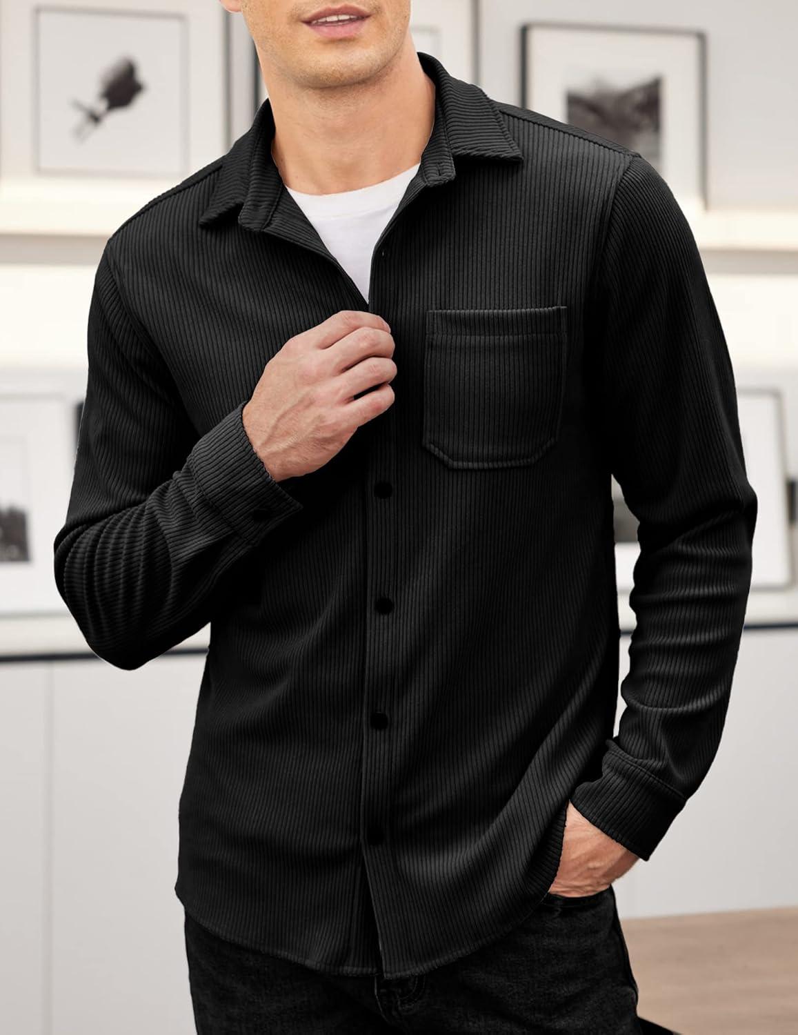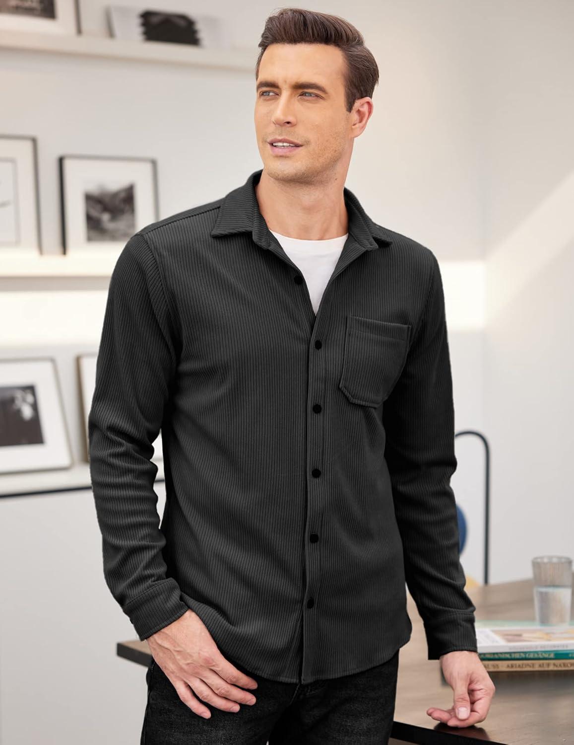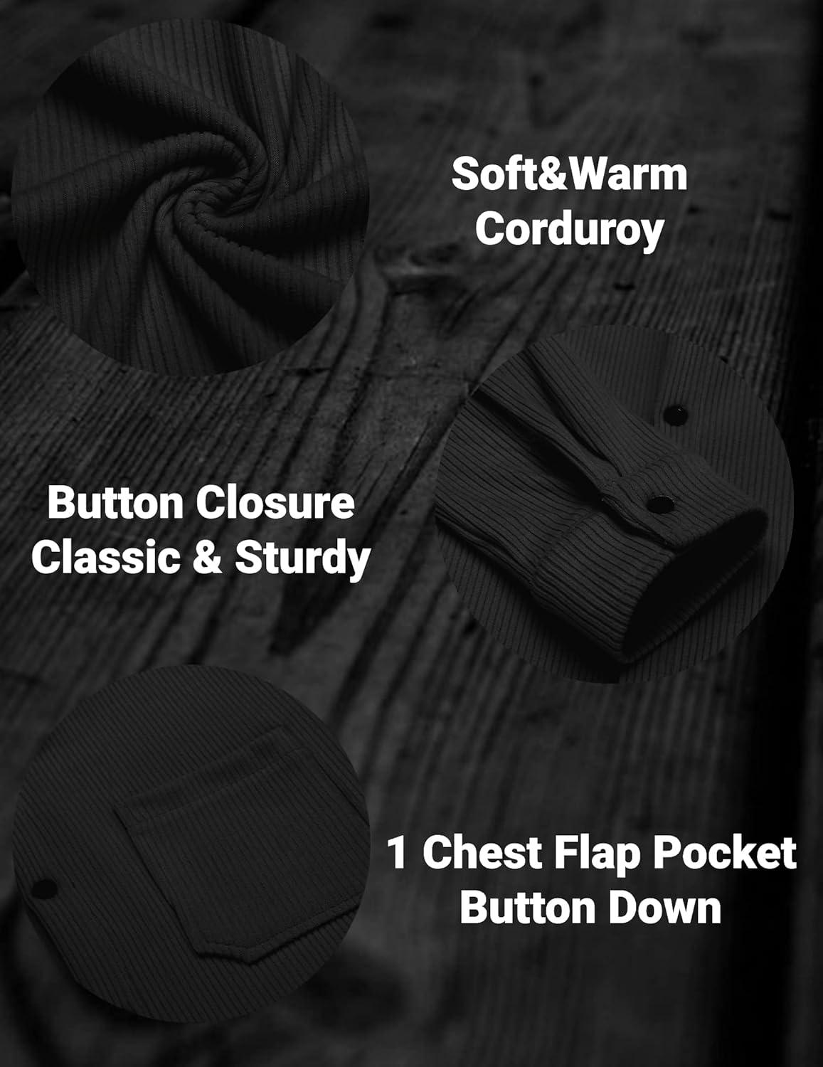 COOFANDY Men’s Corduroy Shirt Casual Shacket Long Sleeve Button Down Lightweight Jacket(Black)