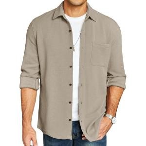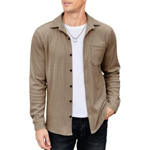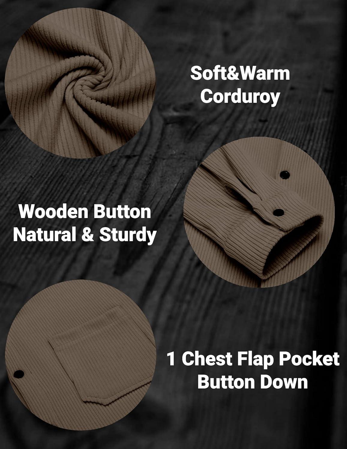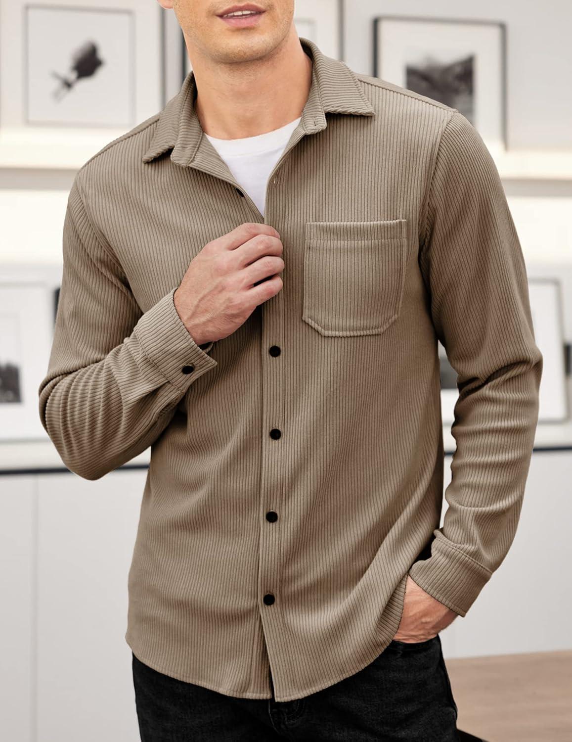 COOFANDY Men’s Corduroy Shirt Casual Shacket Long Sleeve Button Down Lightweight Jacket(Khaki)