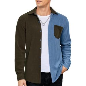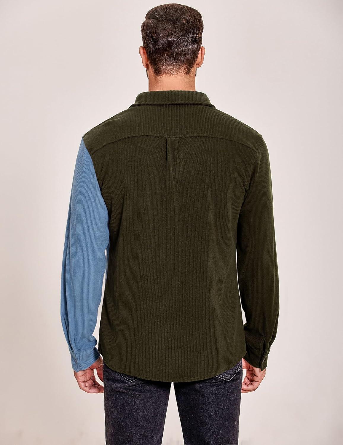 COOFANDY Men’s Corduroy Shirt Casual Shacket Long Sleeve Button Down Lightweight Jacket(Color Block – Green)