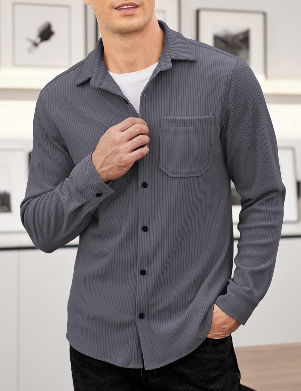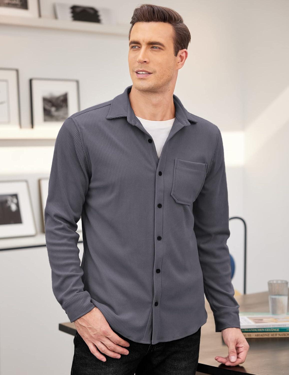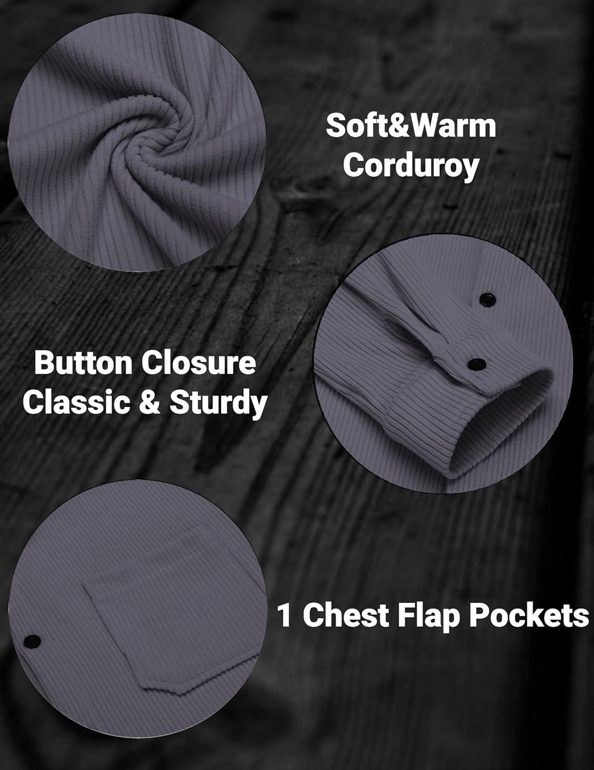 COOFANDY Men’s Corduroy Shirt Casual Shacket Long Sleeve Button Down Lightweight Jacket(Grey)