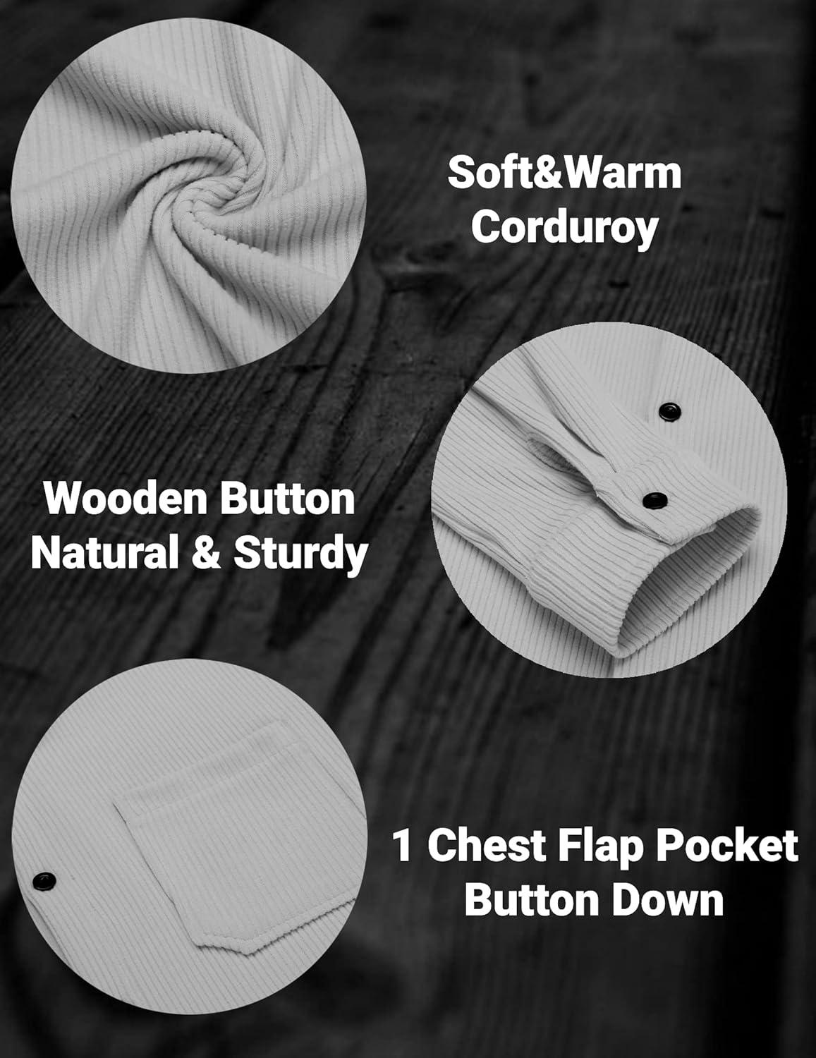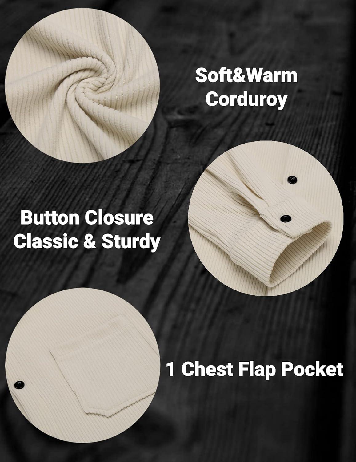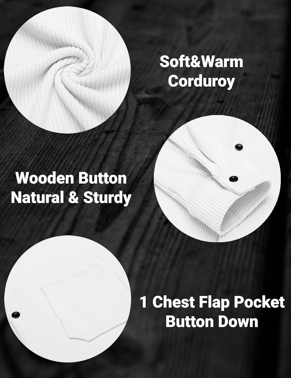COOFANDY Men’s Corduroy Shirt Casual Shacket Long Sleeve Button Down Lightweight Jacket(White)