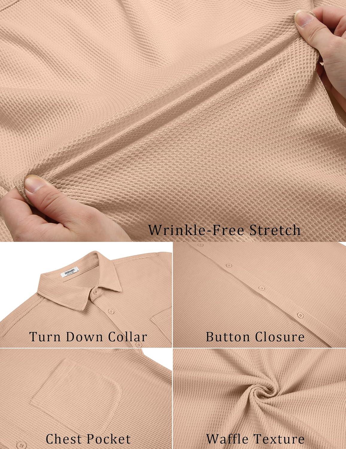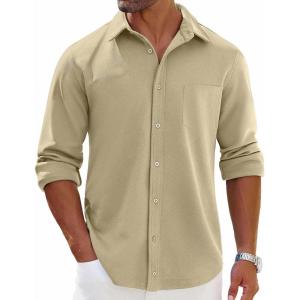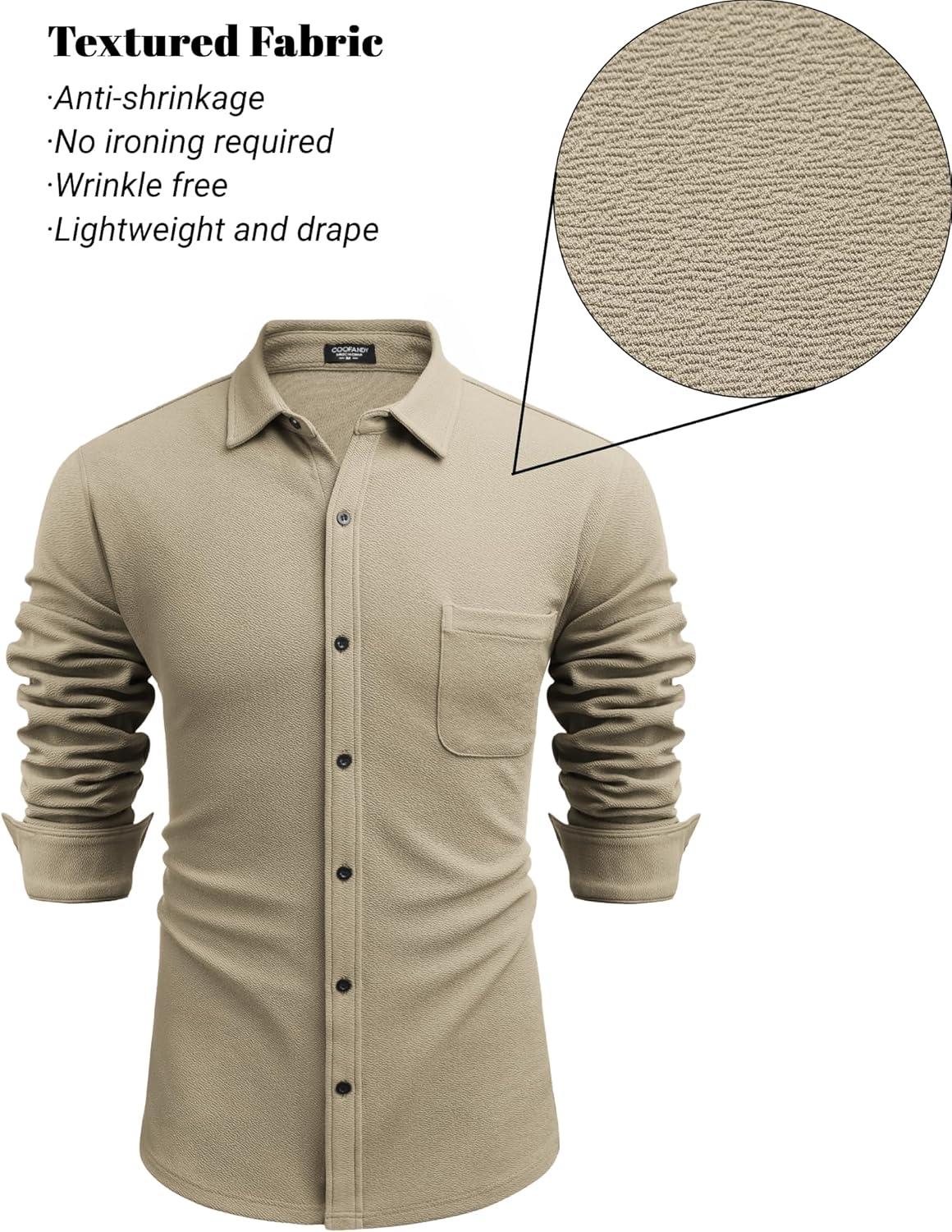 COOFANDY Athletic Fit Dress Shirts for Men Ribbed Knit Textured Button Down Shirts(Light Khaki)
