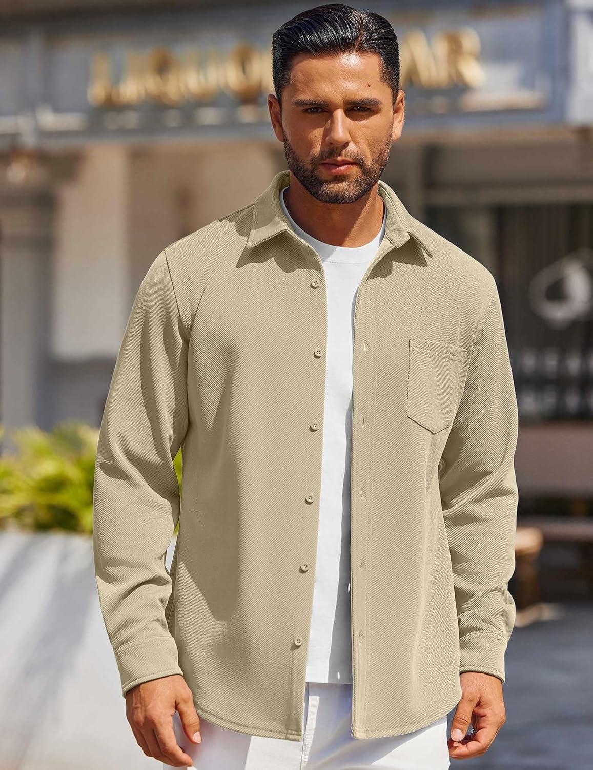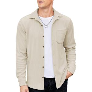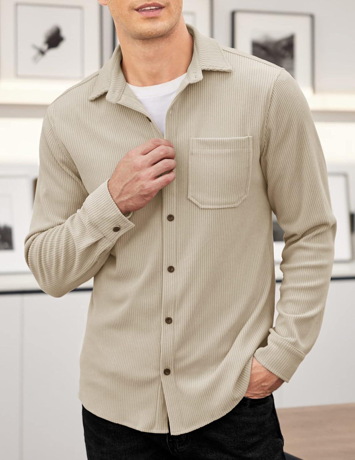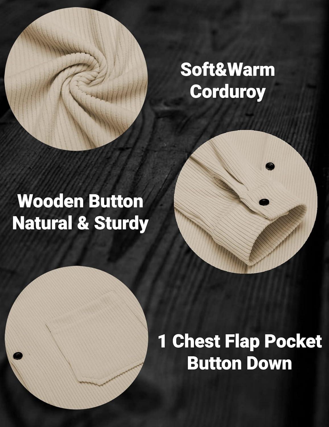 COOFANDY Men’s Corduroy Shirt Casual Shacket Long Sleeve Button Down Lightweight Jacket(Light Khaki)