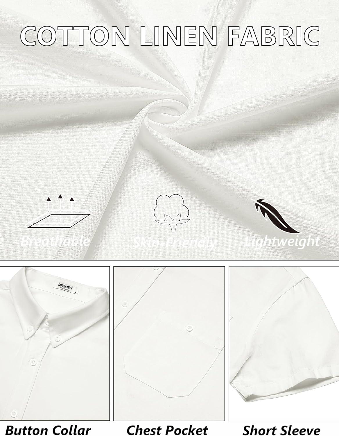 COOFANDY Men’s Cotton Linen Shirts Short Sleeve Casual Shirts Summer Button Down Shirt Linen Beach Vacation Shirt(A-white)