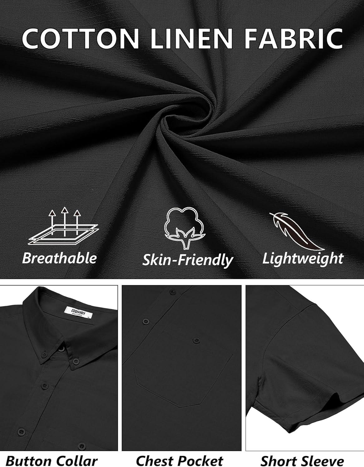 COOFANDY Men’s Cotton Linen Shirts Short Sleeve Casual Shirts Summer Button Down Shirt Linen Beach Vacation Shirt(Black)