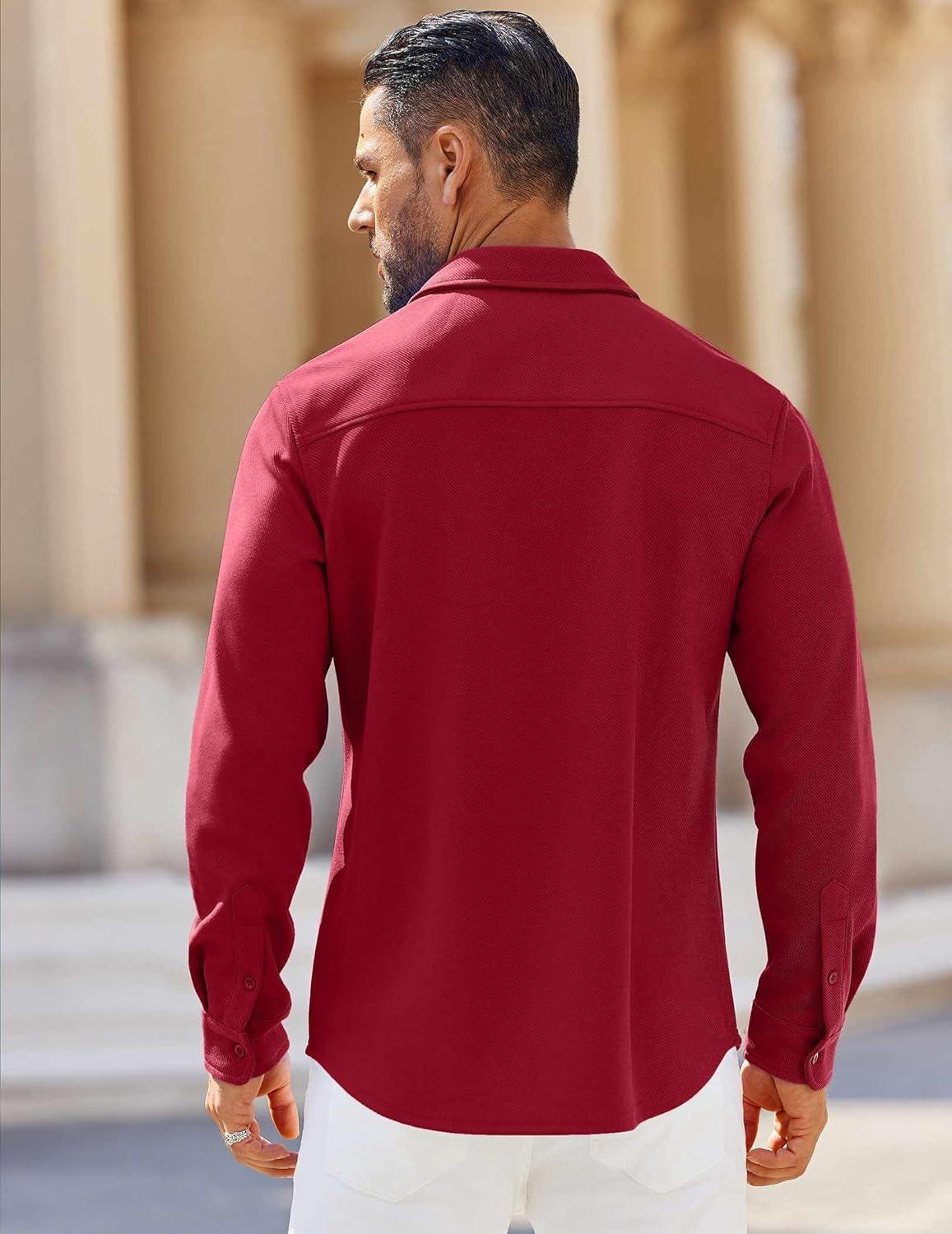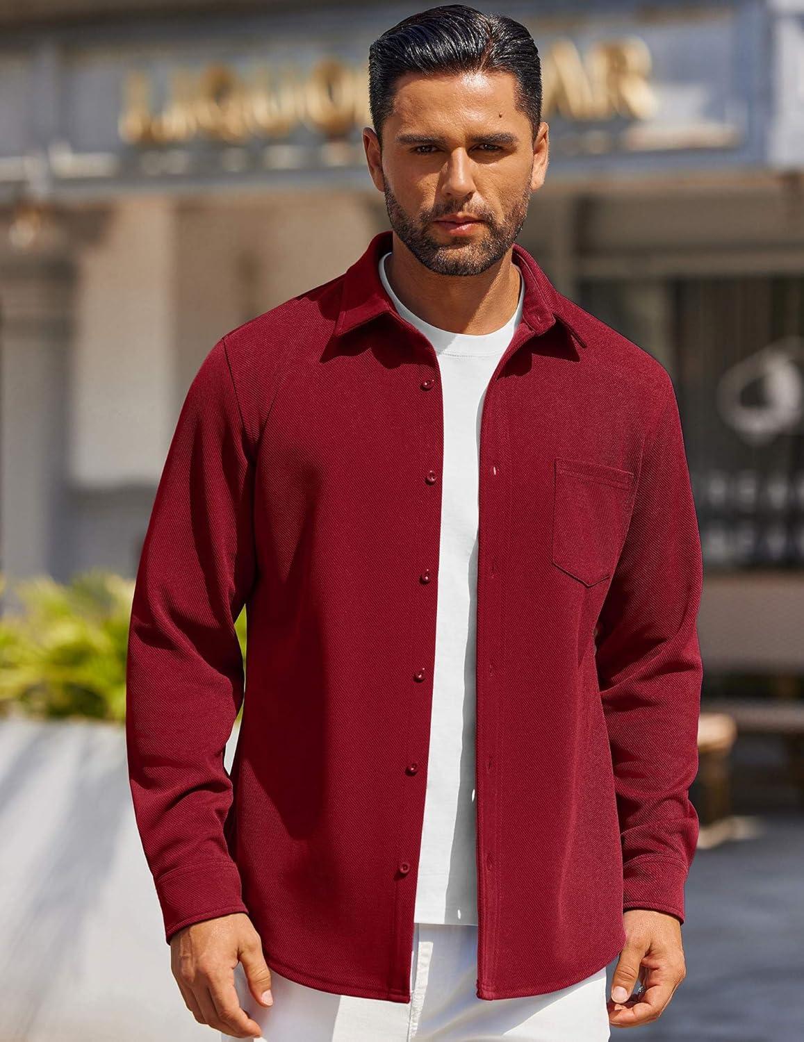 COOFANDY Athletic Fit Dress Shirts for Men Ribbed Knit Textured Button Down Shirts(Wine)