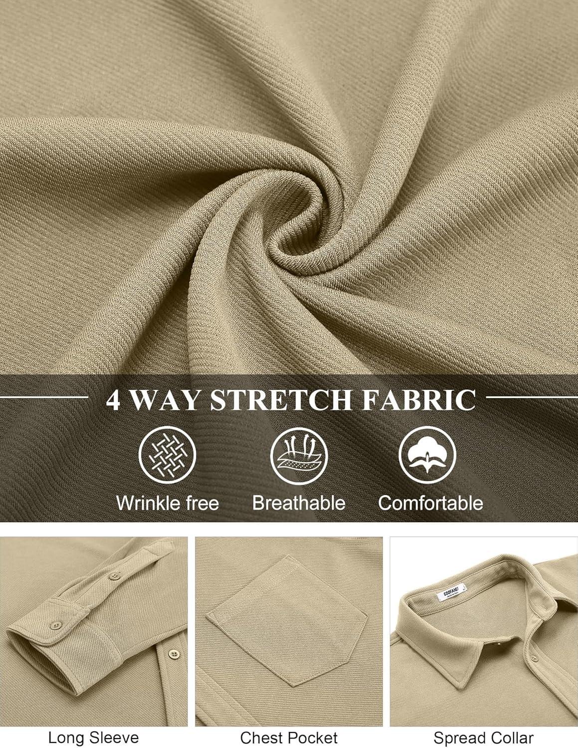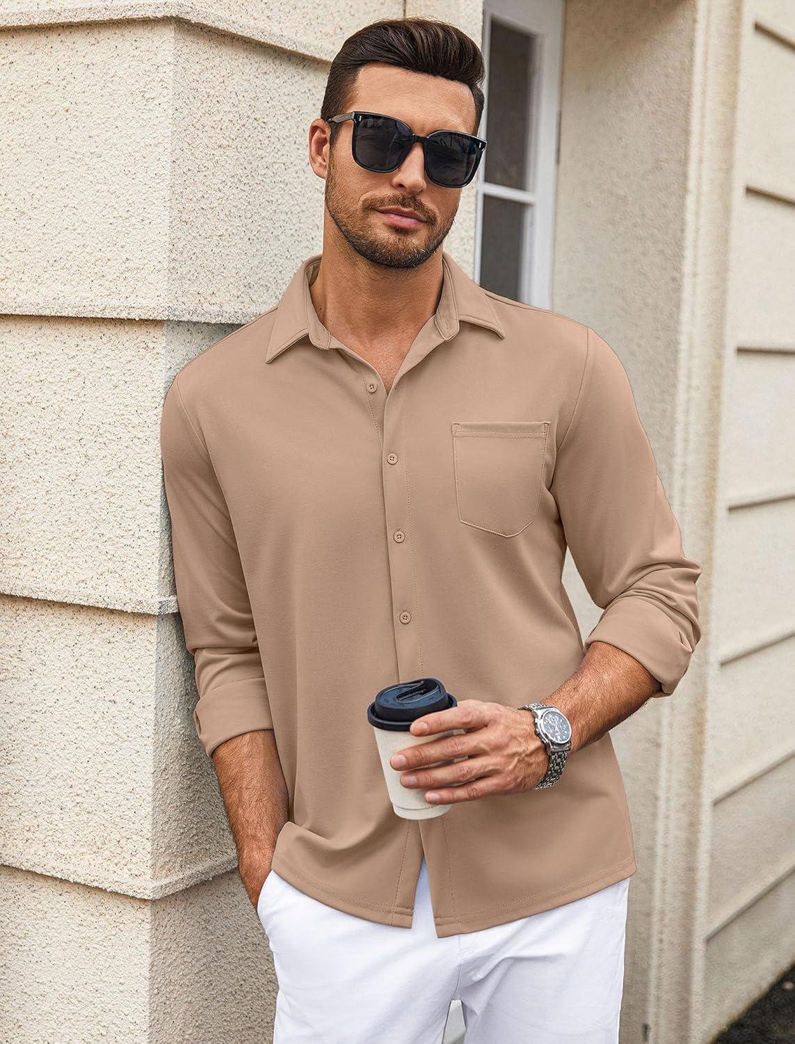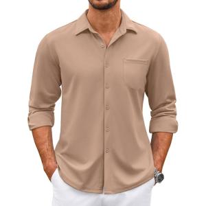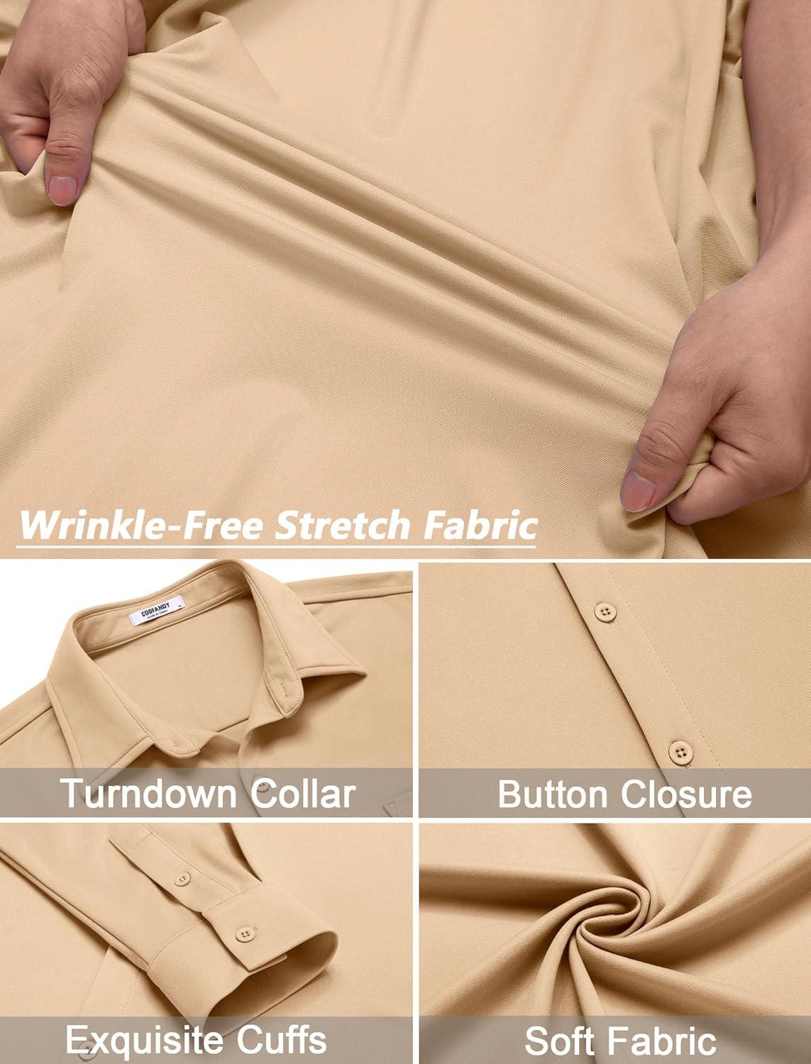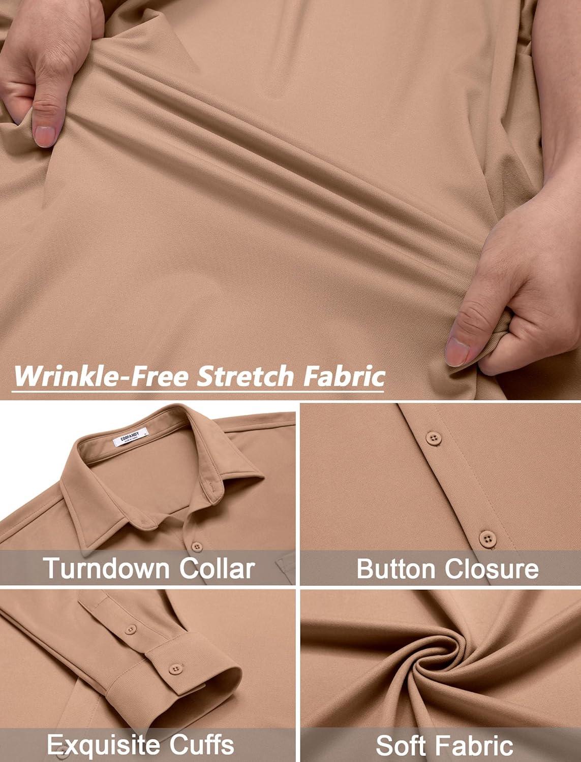 COOFANDY Mens Wrinkle Free Dress Shirts Long Sleeve Untucked Shirts Casual Button Down Shirts(Khaki)