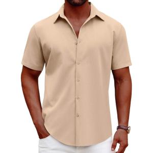 COOFANDY Mens Casual Button Down Shirts Lightweight Short Sleeve Shirts(Khaki)