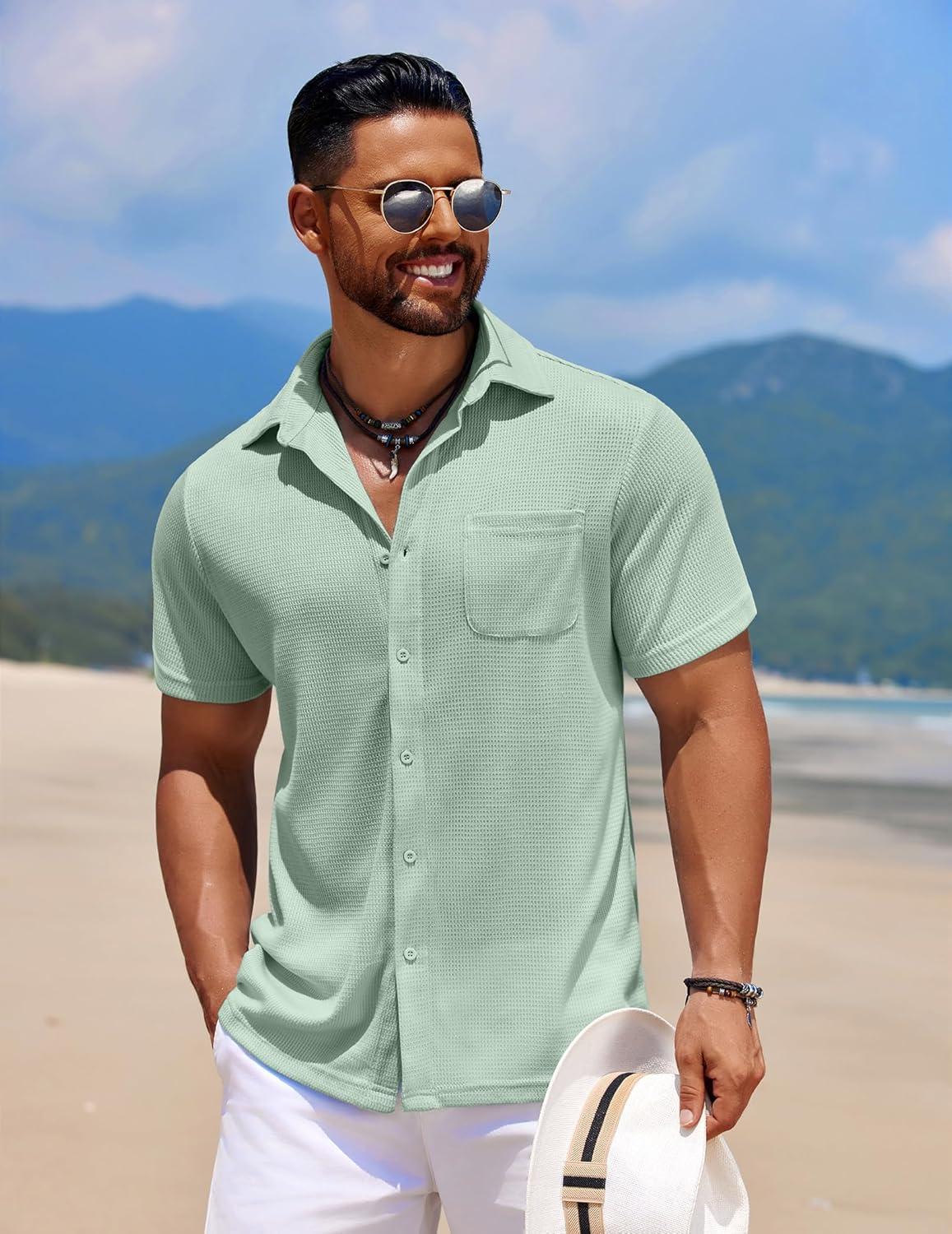 COOFANDY Mens 2025 Fashion Textured Shirts Short Sleeve Summer Beach Shirt Casual Button Down Shirts(Light Green)