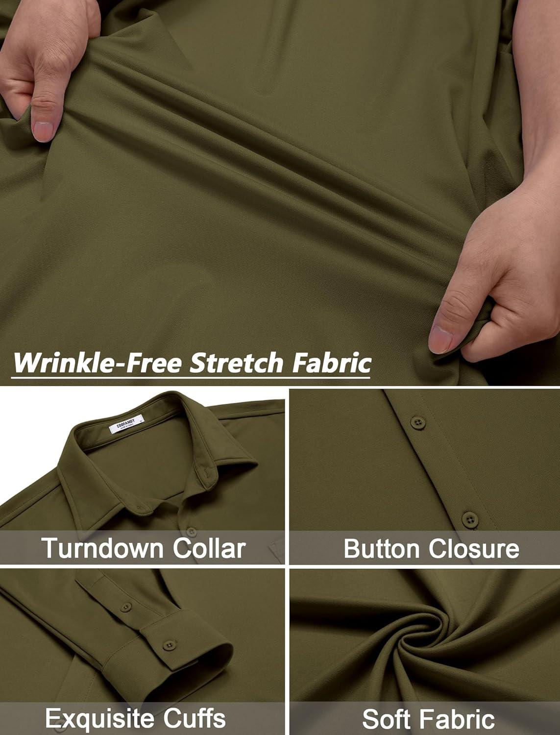 COOFANDY Mens Wrinkle Free Dress Shirts Long Sleeve Untucked Shirts Casual Button Down Shirts(Army Green)