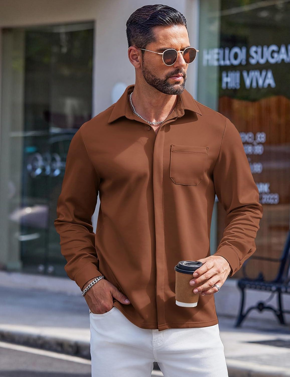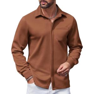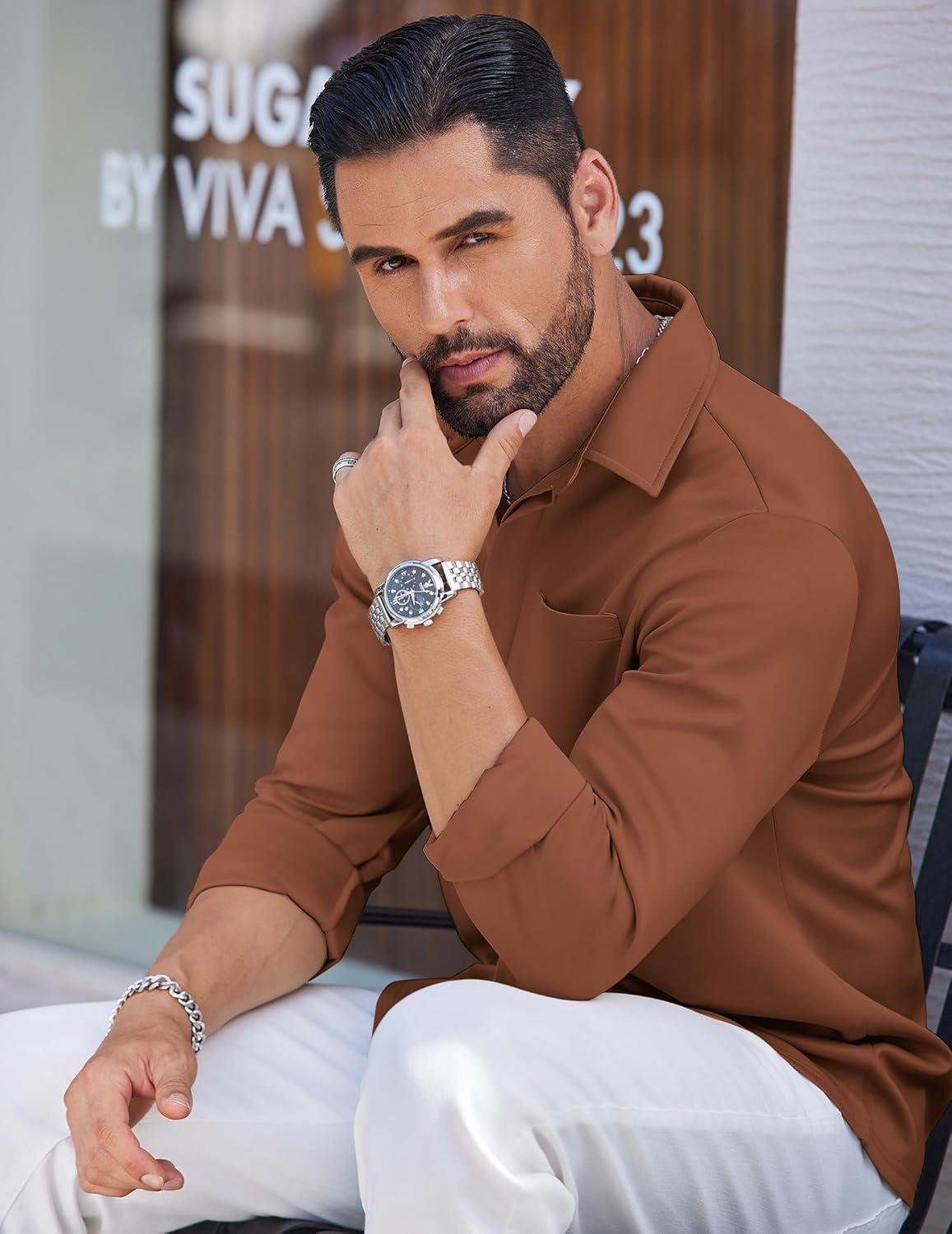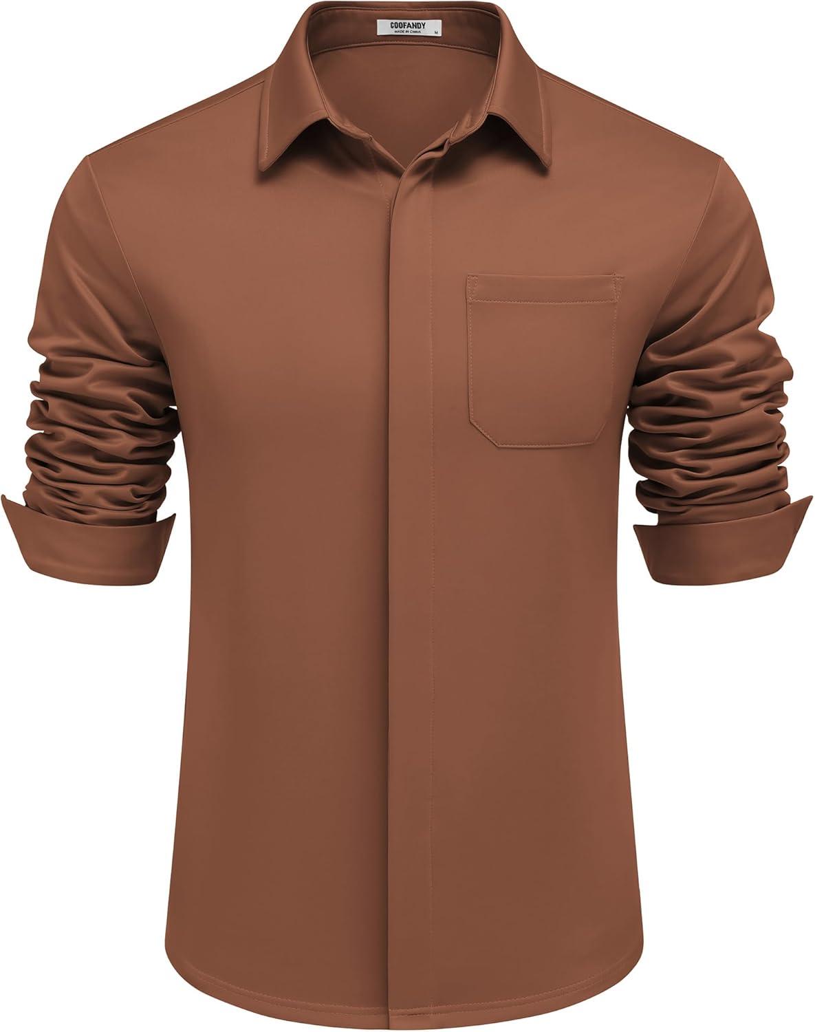 COOFANDY Mens Wrinkle Free Dress Shirts Long Sleeve Untucked Shirts Casual Button Down Shirts(Brown)